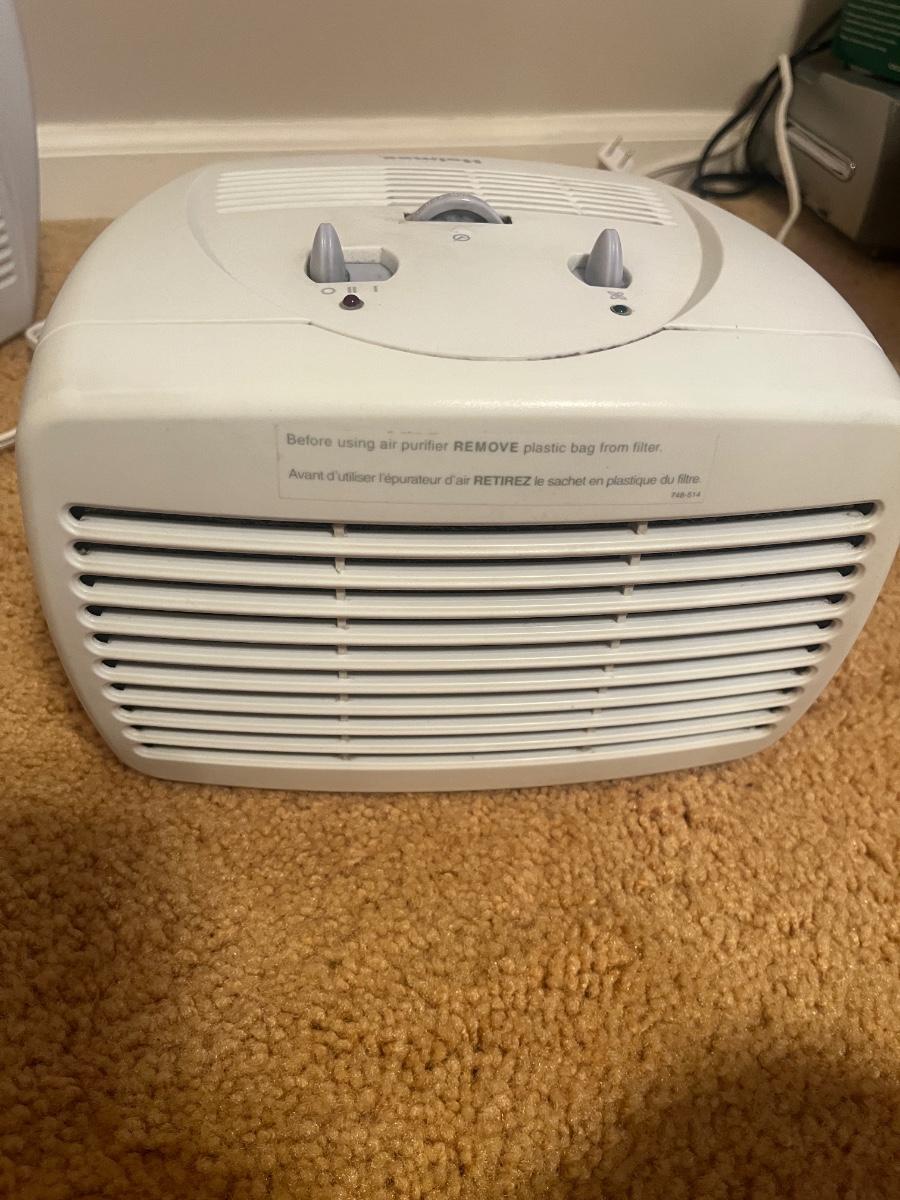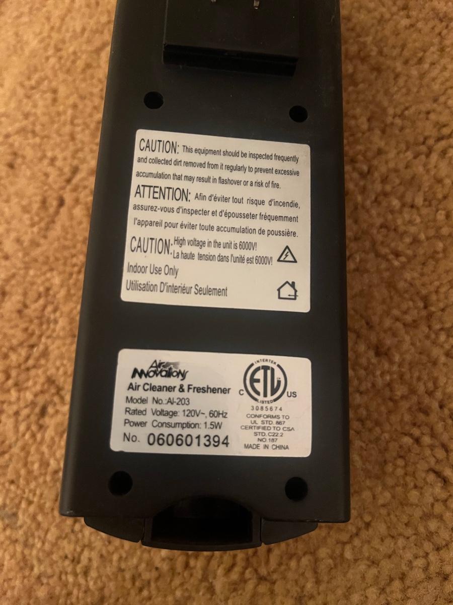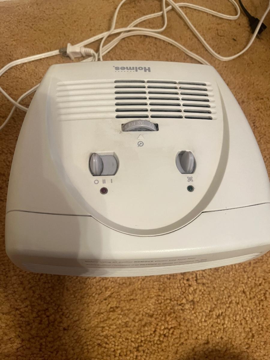 Lot includes four Holmes air purifiers and three Air Innovations ionic air cleaners. All items powered on when plugged in. Holmes air purifiers measure 9” x 9” x 6”H. Items are dirty, see pictures.