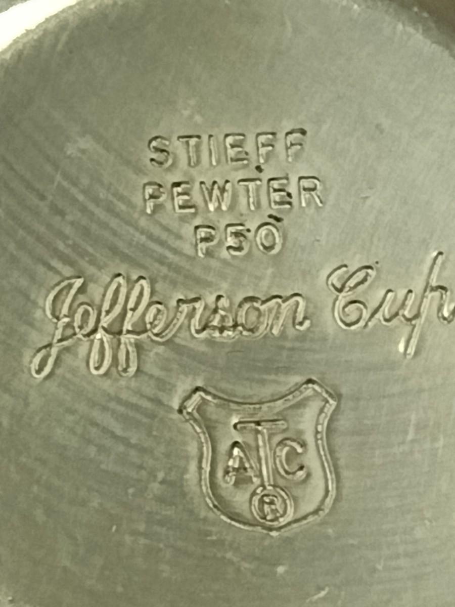 Four Jefferson Cups. Two made by Steiff, two made by Daalderop.