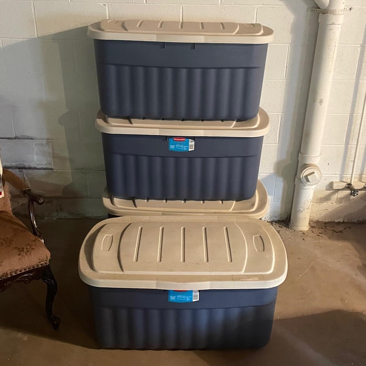 Four Rubbermaid Roughtote Jumbo Storage Boxes (B-RG)