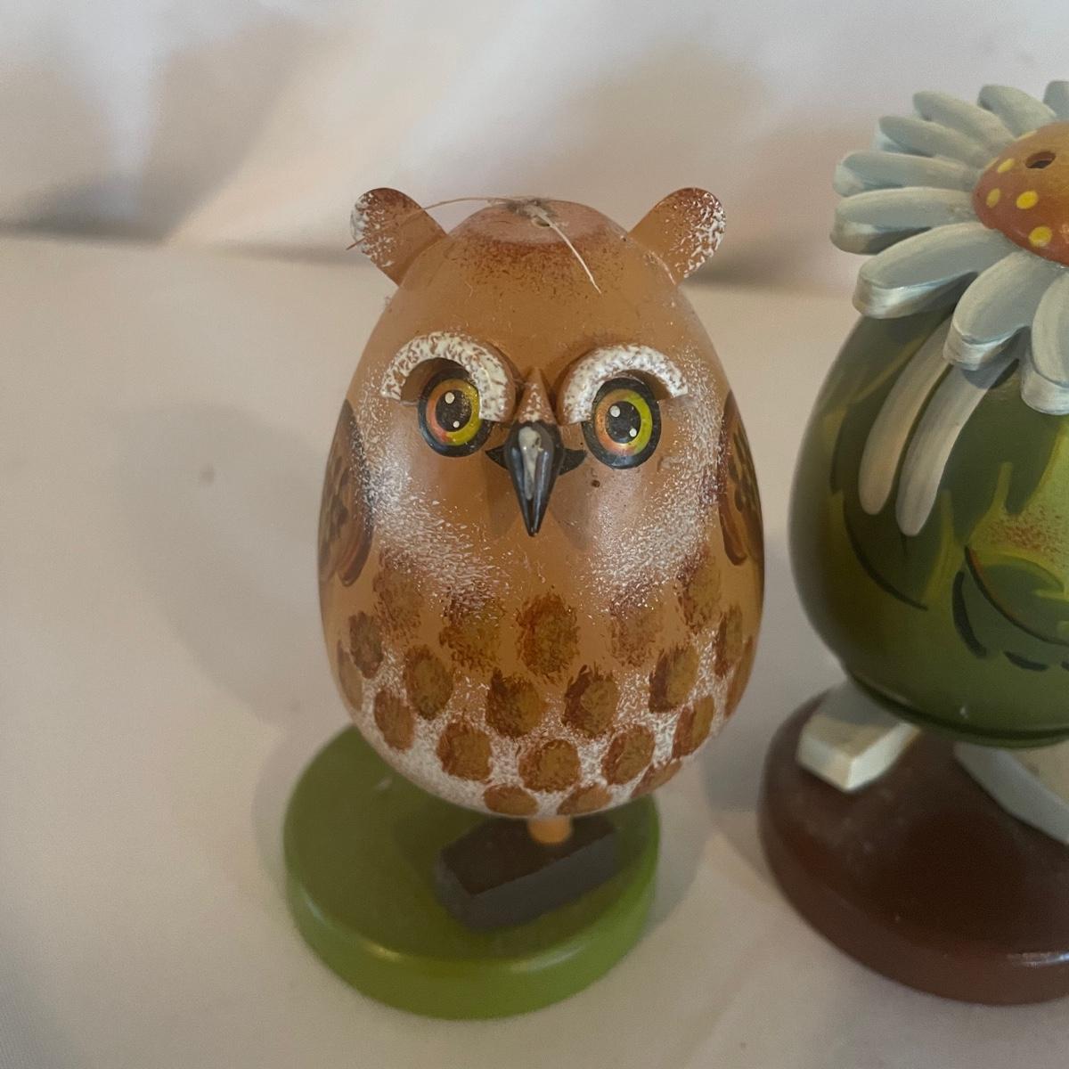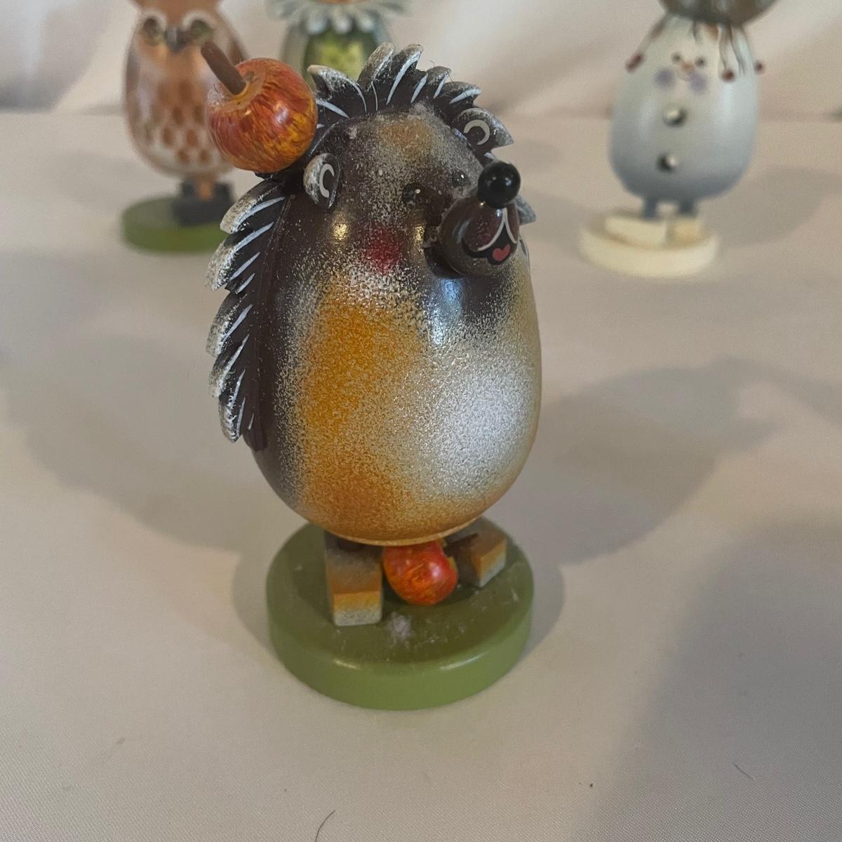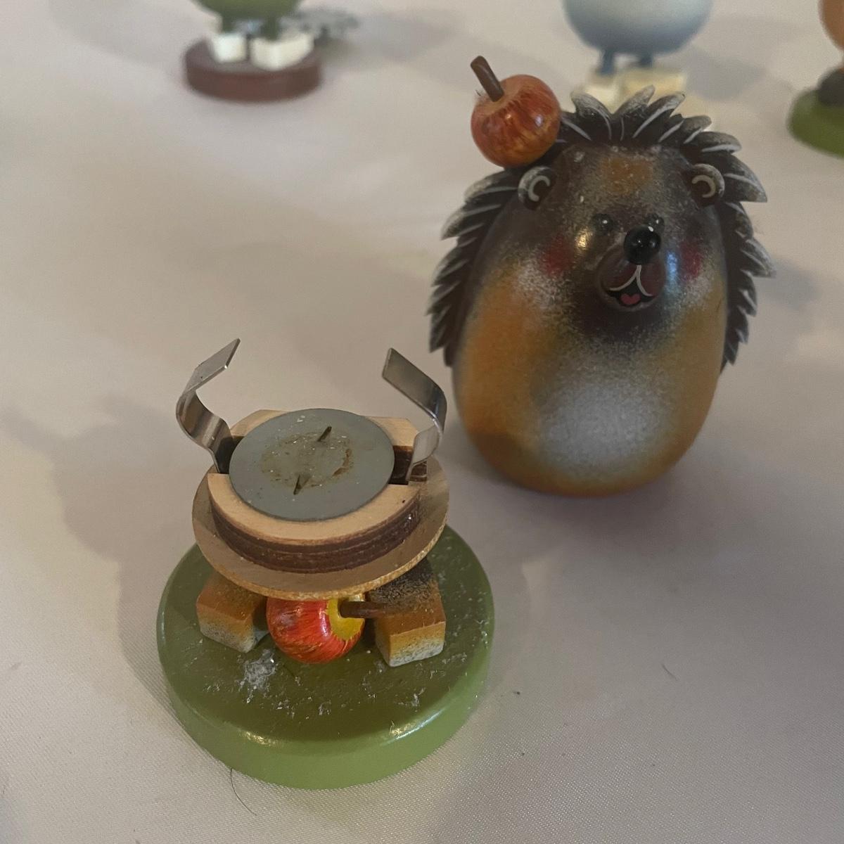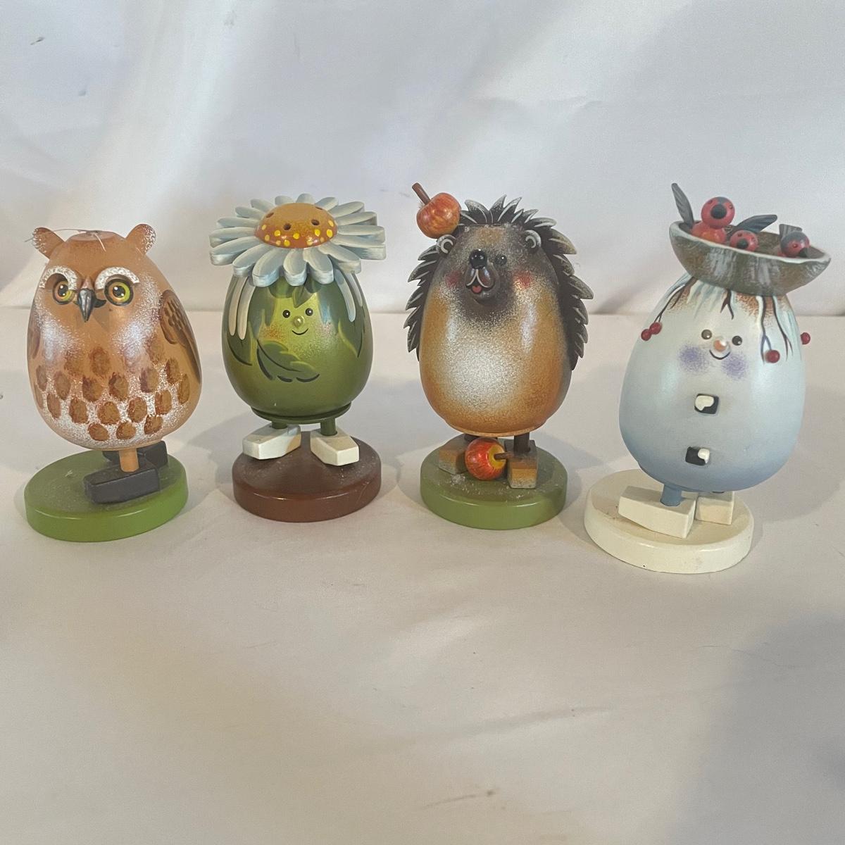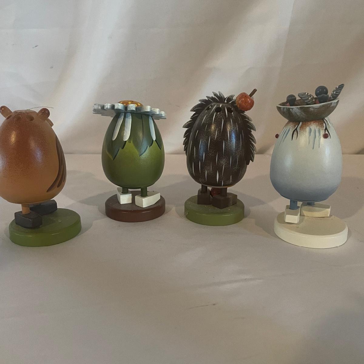 These four adorable wood figurines by Kathe Wohlfahrt are incense burners. They are in excellent condition and measure approximately 4” tall with 2” diameter bases.