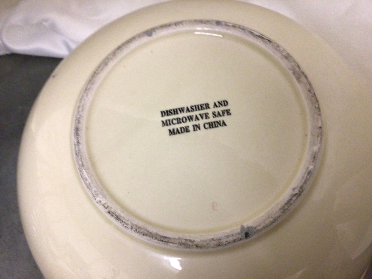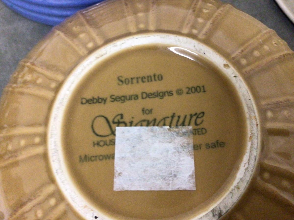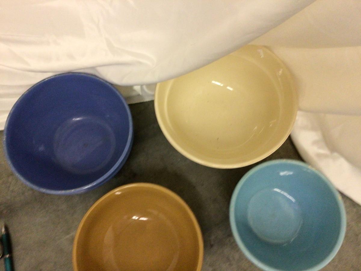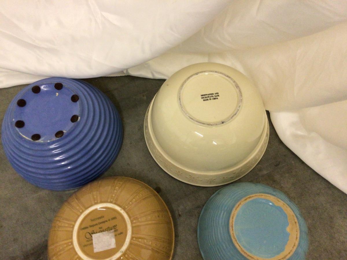A variety of makers, four large pottery serving bowls. You get a Sorrento, USA, Oven Ware, new made in China.