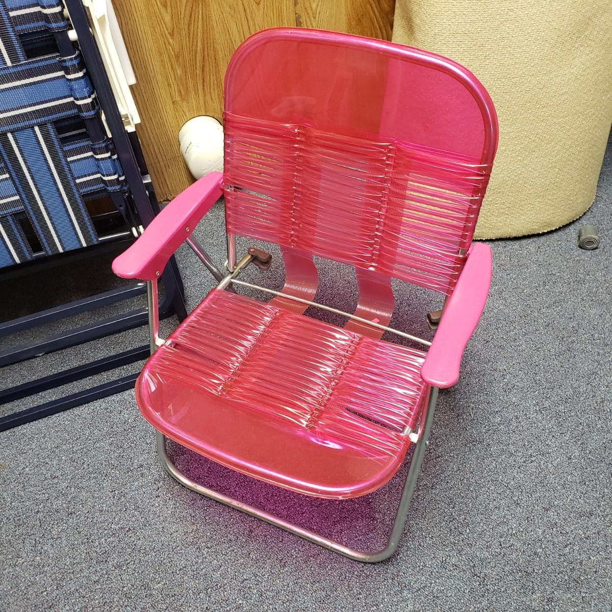 These four matching lawn chairs appear to be only very gently used. The chairs measure 16" x 23" x 31"H. The seat height is 17". The child's chair also appears to be barely used.