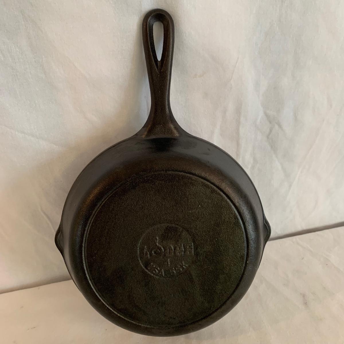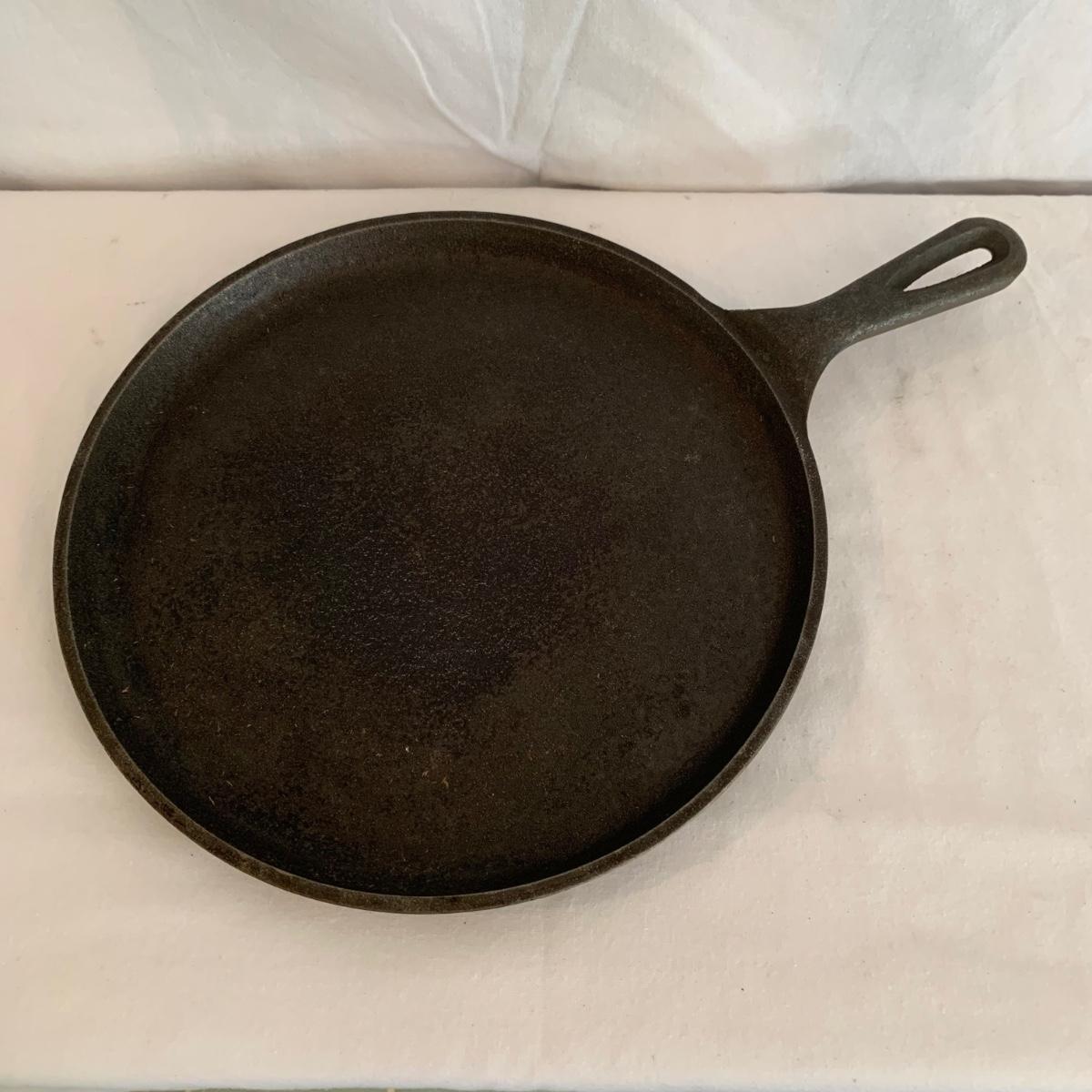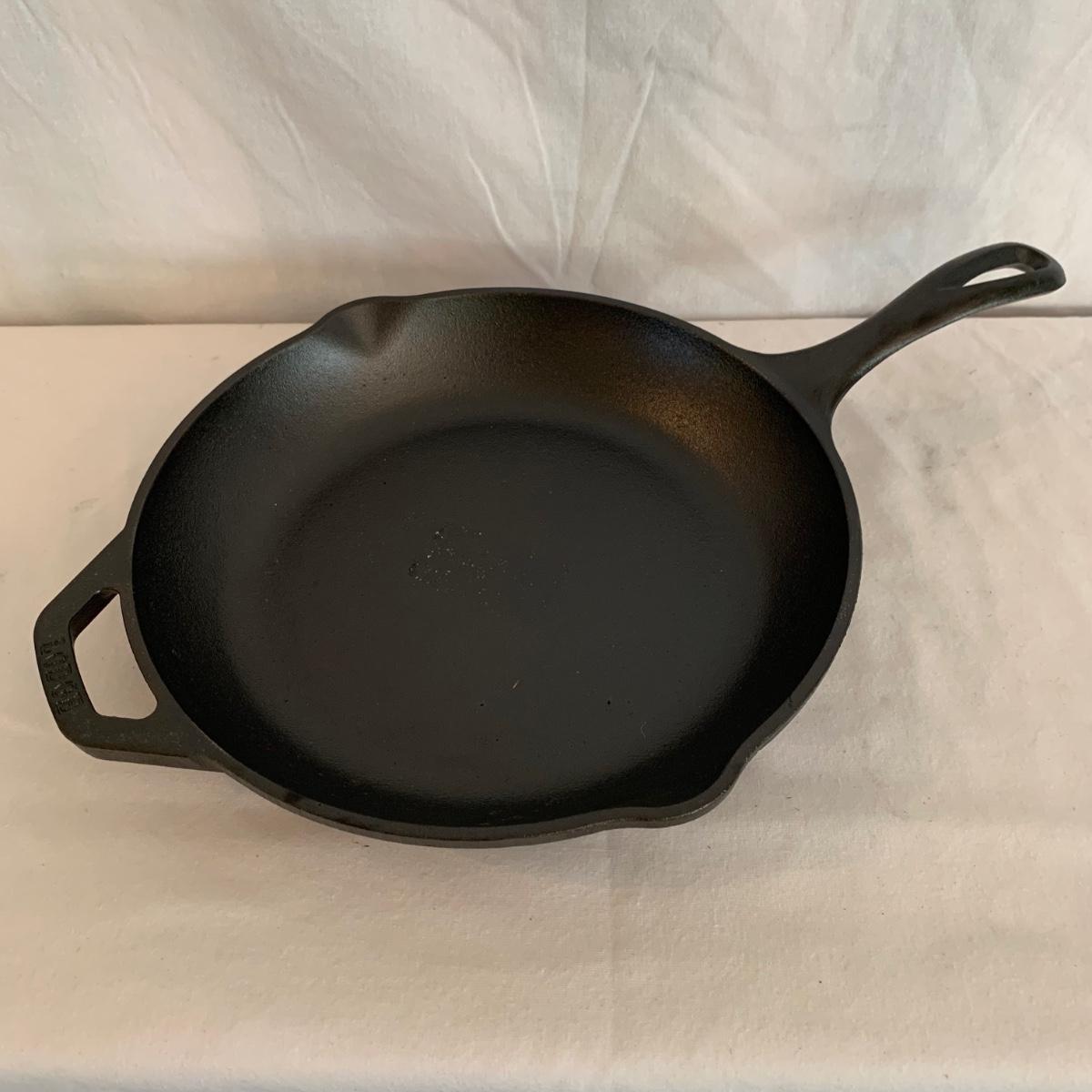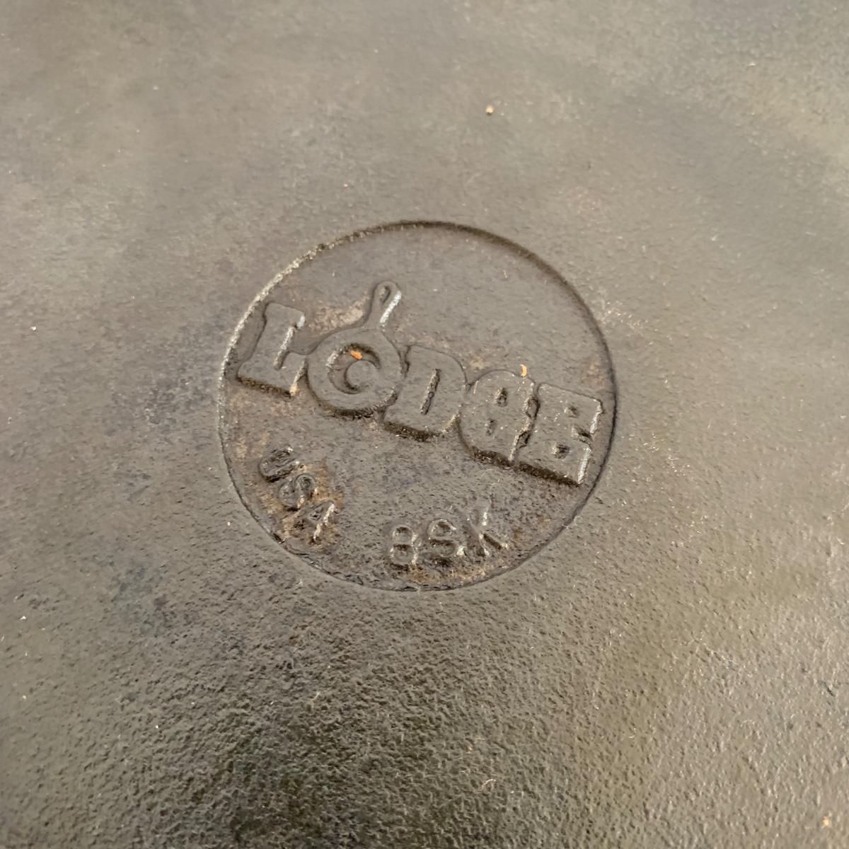 Four Lodge cast iron skillets. Two are about 10”D, one is 8”D, and the last is a 10”D round flat skillet. One of the larger skillet appears to be unused, the rest appear to be used. Two new with tags Lodge silicone hot handle holders are included as well.
