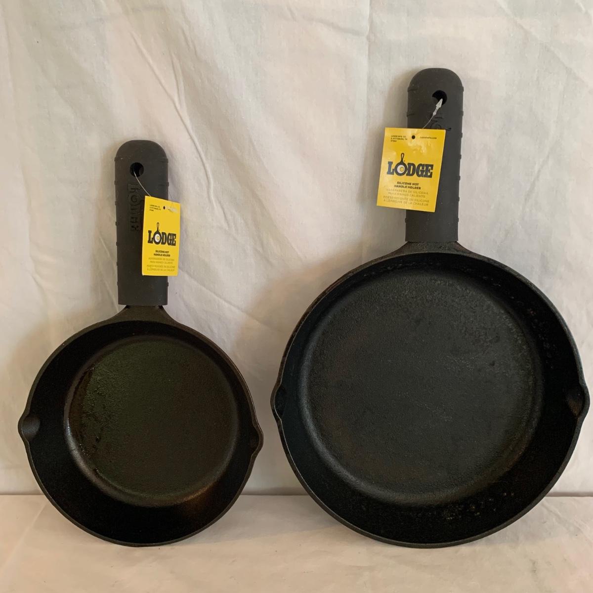 Four Lodge Cast Iron Skillets & New Silicone Handle Holders (K-HS)