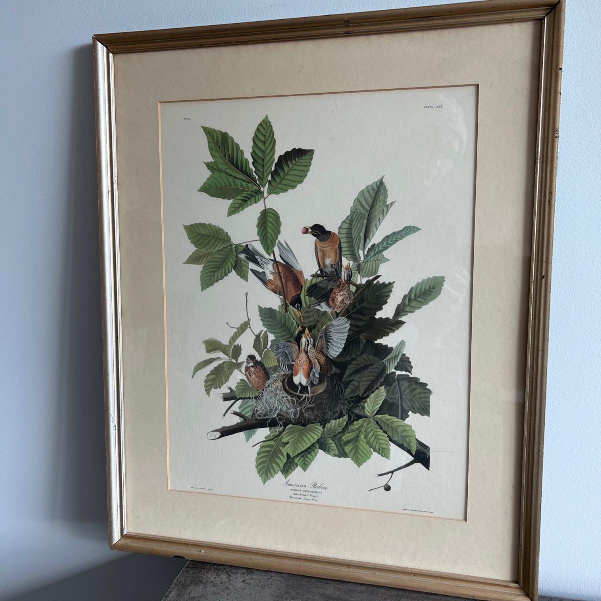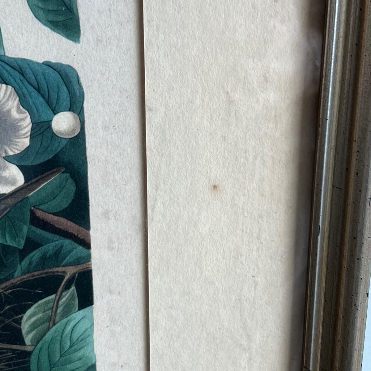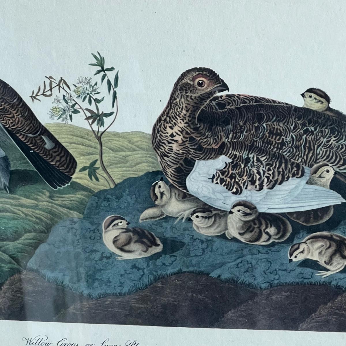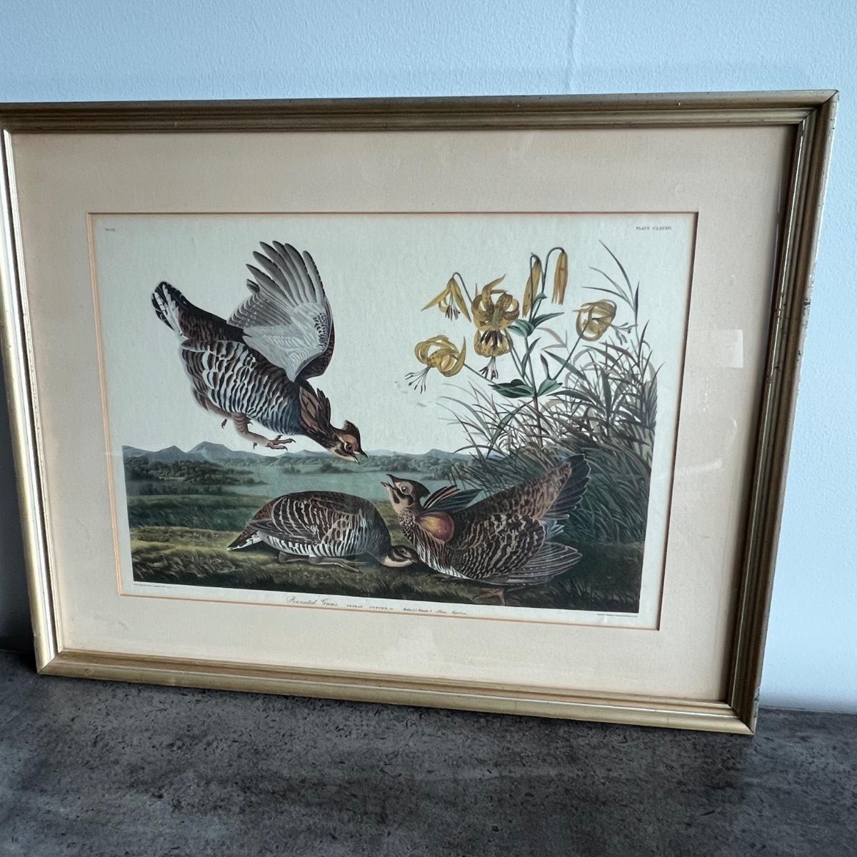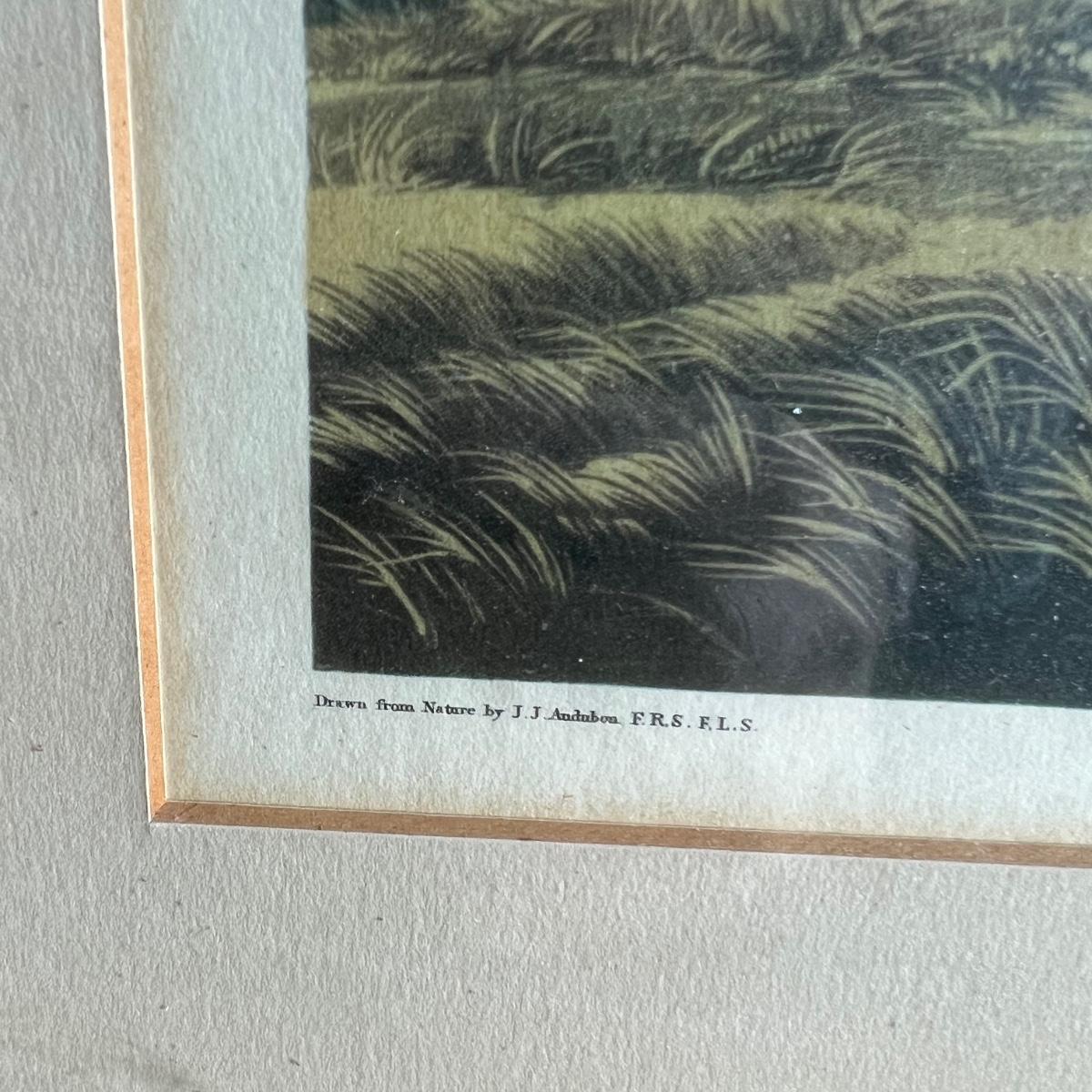These 4 Audubon prints come under glass and in matching gilt and green frames that have some very minor signs of age with a few dings shown in images. They are all slightly different in size with the Autumn Robins frame being the largest at 21” x 25.5” and smallest being Willow Gross“🦆 at 17.5” x 24.5”. Each print is titled and has a plate number, see images. Note that there are some light moisture marks on some prints and matting also shown in images.