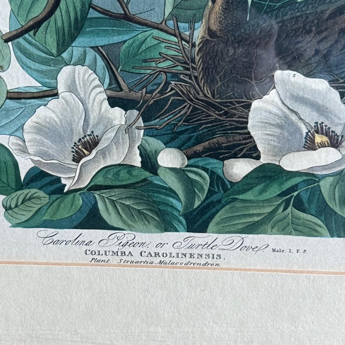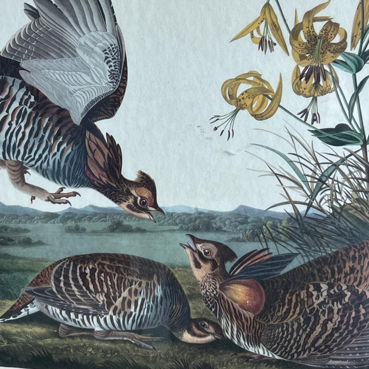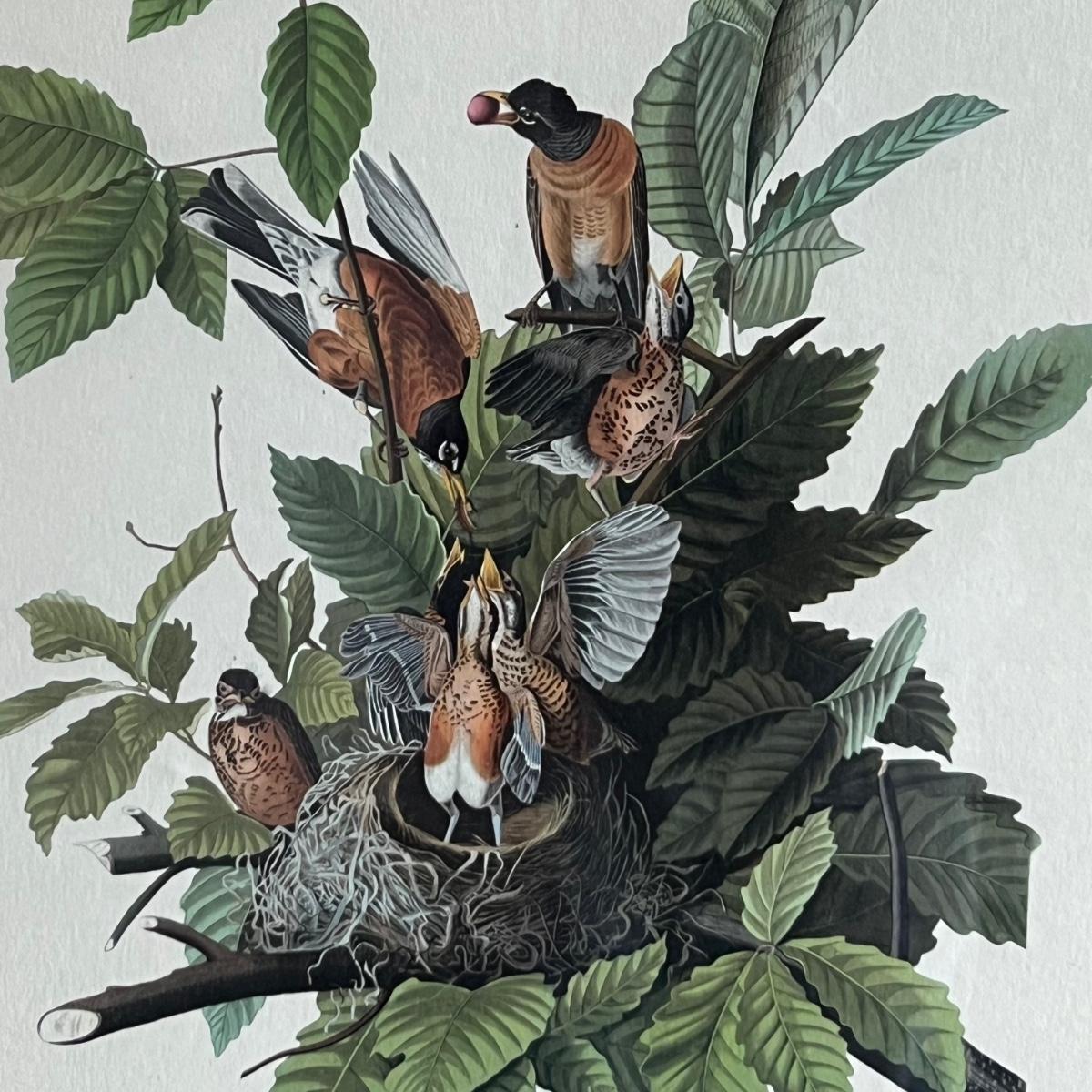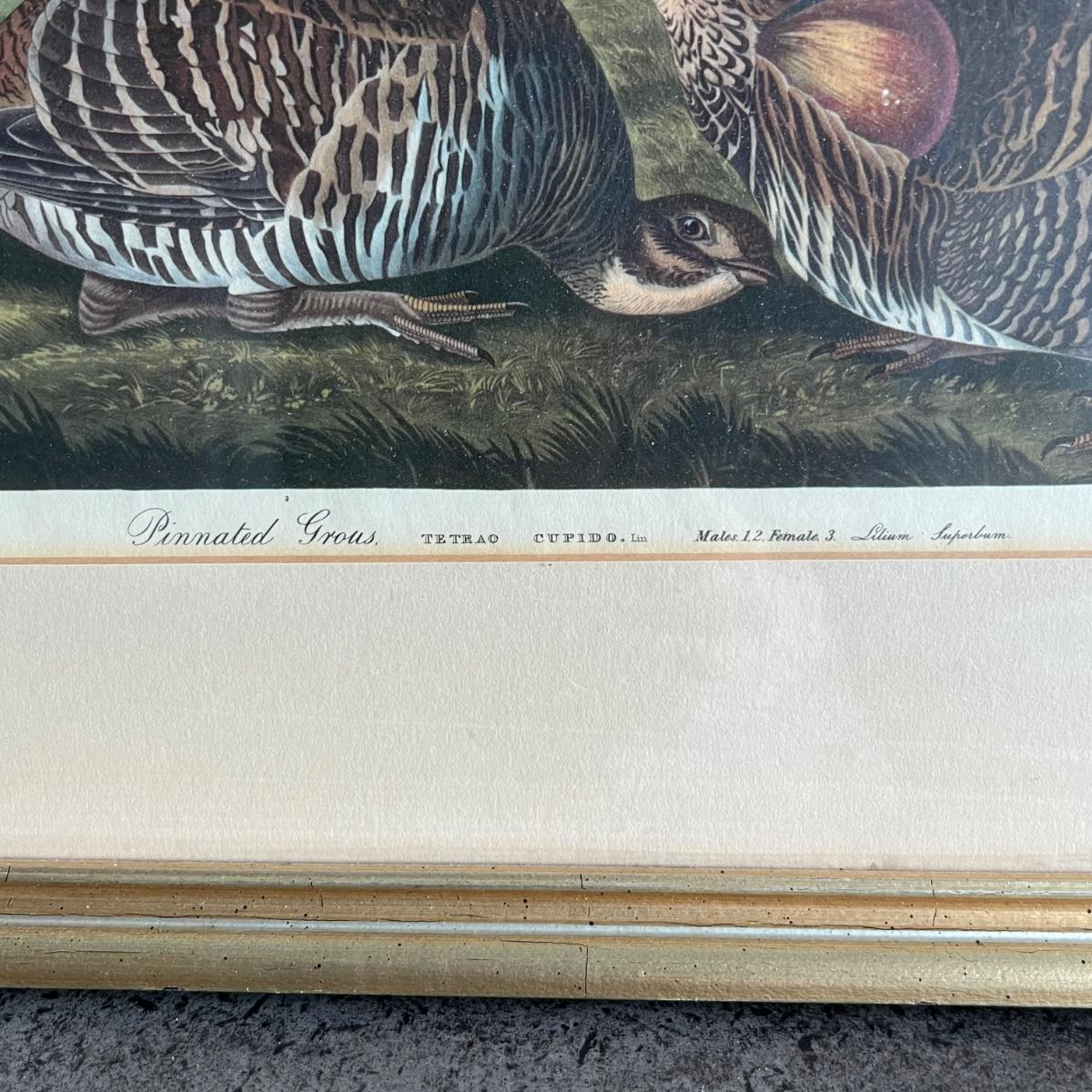 These 4 Audubon prints come under glass and in matching gilt and green frames that have some very minor signs of age with a few dings shown in images. They are all slightly different in size with the Autumn Robins frame being the largest at 21” x 25.5” and smallest being Willow Gross“🦆 at 17.5” x 24.5”. Each print is titled and has a plate number, see images. Note that there are some light moisture marks on some prints and matting also shown in images.
