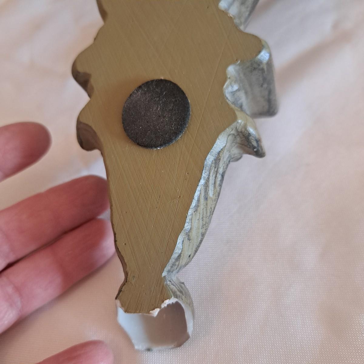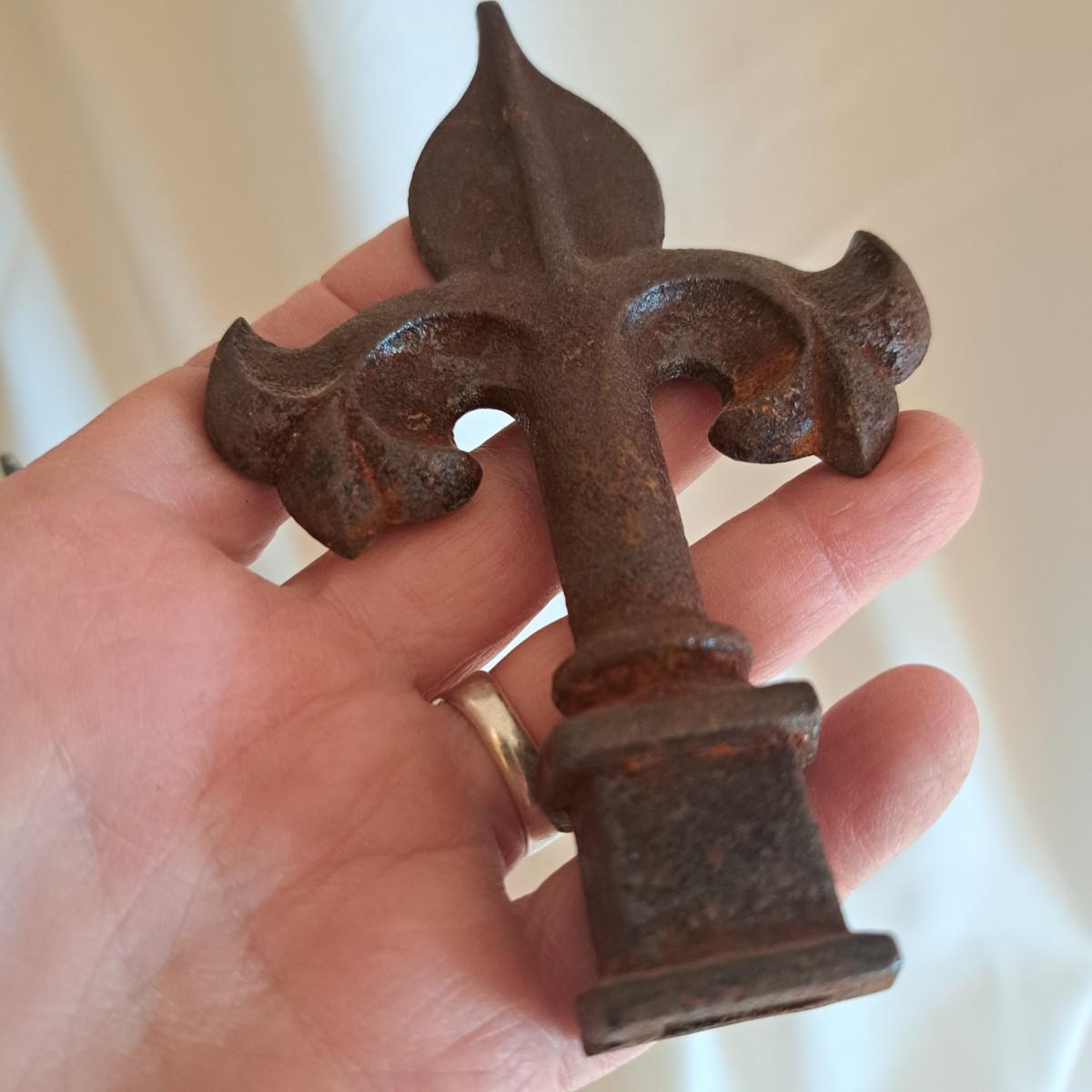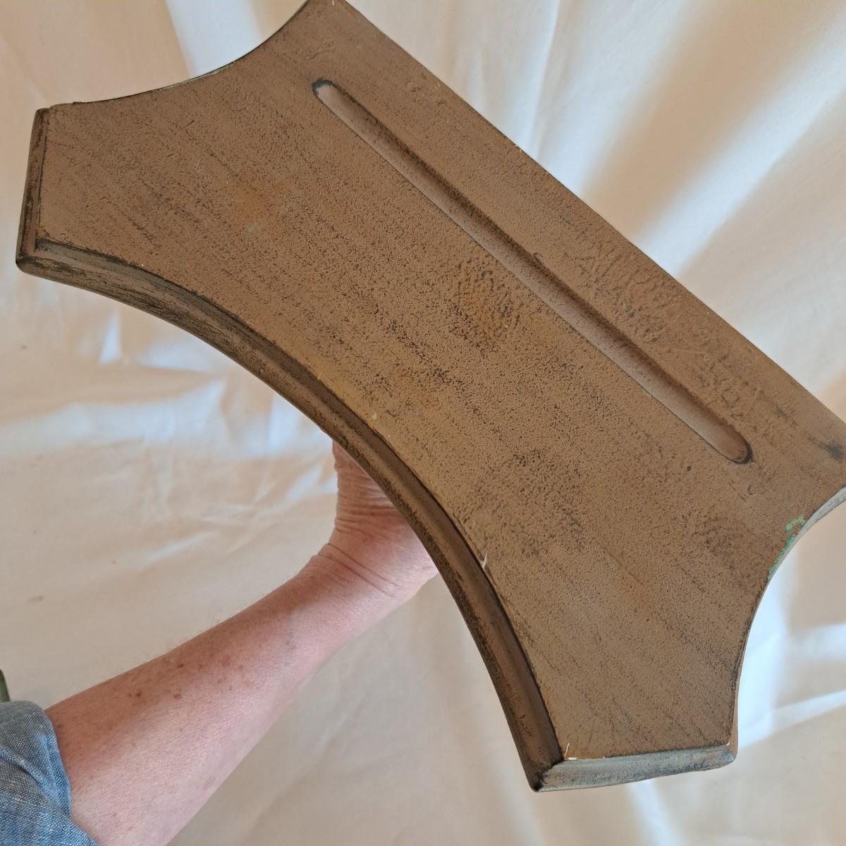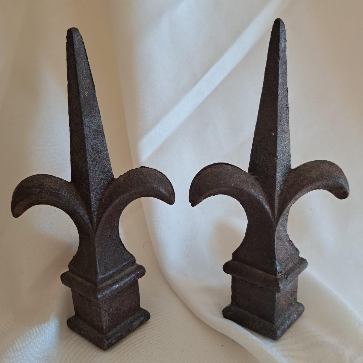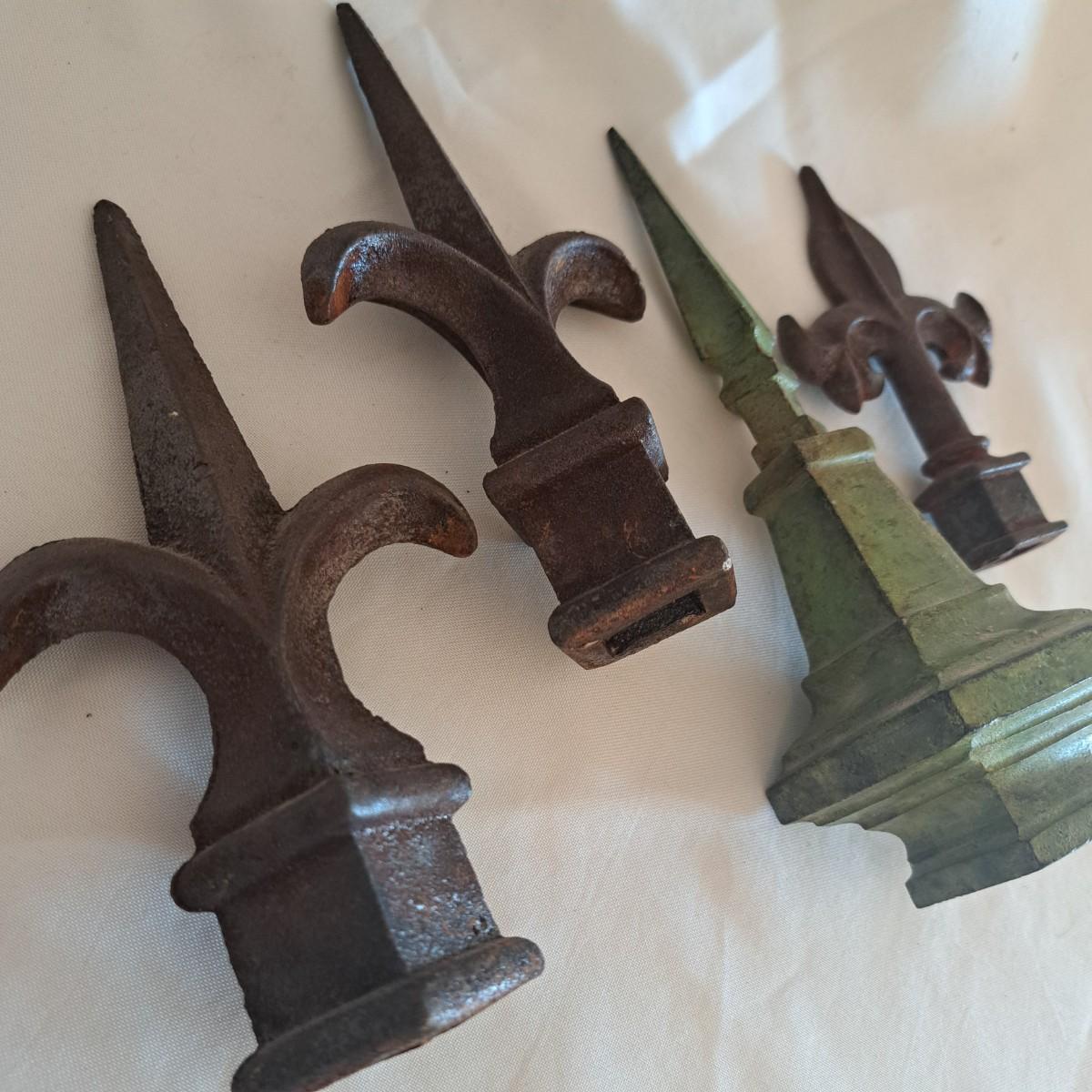 The four metal cast iron finals range from 5"H to 8"H, the largest having a verdegris finish. The ornate composite corbel wall shelf is 12" x 6" x 14"H and has a groove at top for holding a plate, artwork, etc. Also of note, the backside of knob at bottom of the corbel is cracked as shown though the damage cannot be seen when hanging on wall as shown. Shipping available. Shipping can be costly. We suggest contacting our preferred local shipping provider, Postage Express, with dimensions and getting an estimate before bidding: (828) 255-9250 or shipping@postageexpressnc.com.