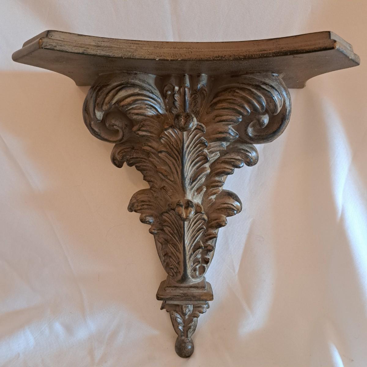 Four Metal Finials & Ornate Corbel Wall Shelf (UL-SD)