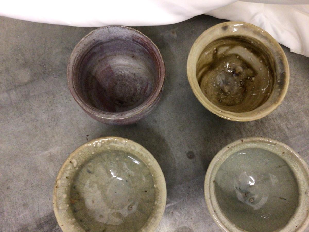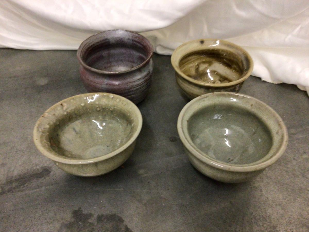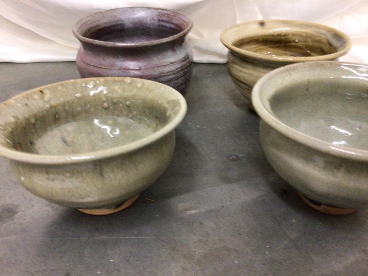 You get four modern pottery bowls, not matching three have gloss glaze one is rough. Great colors and design.