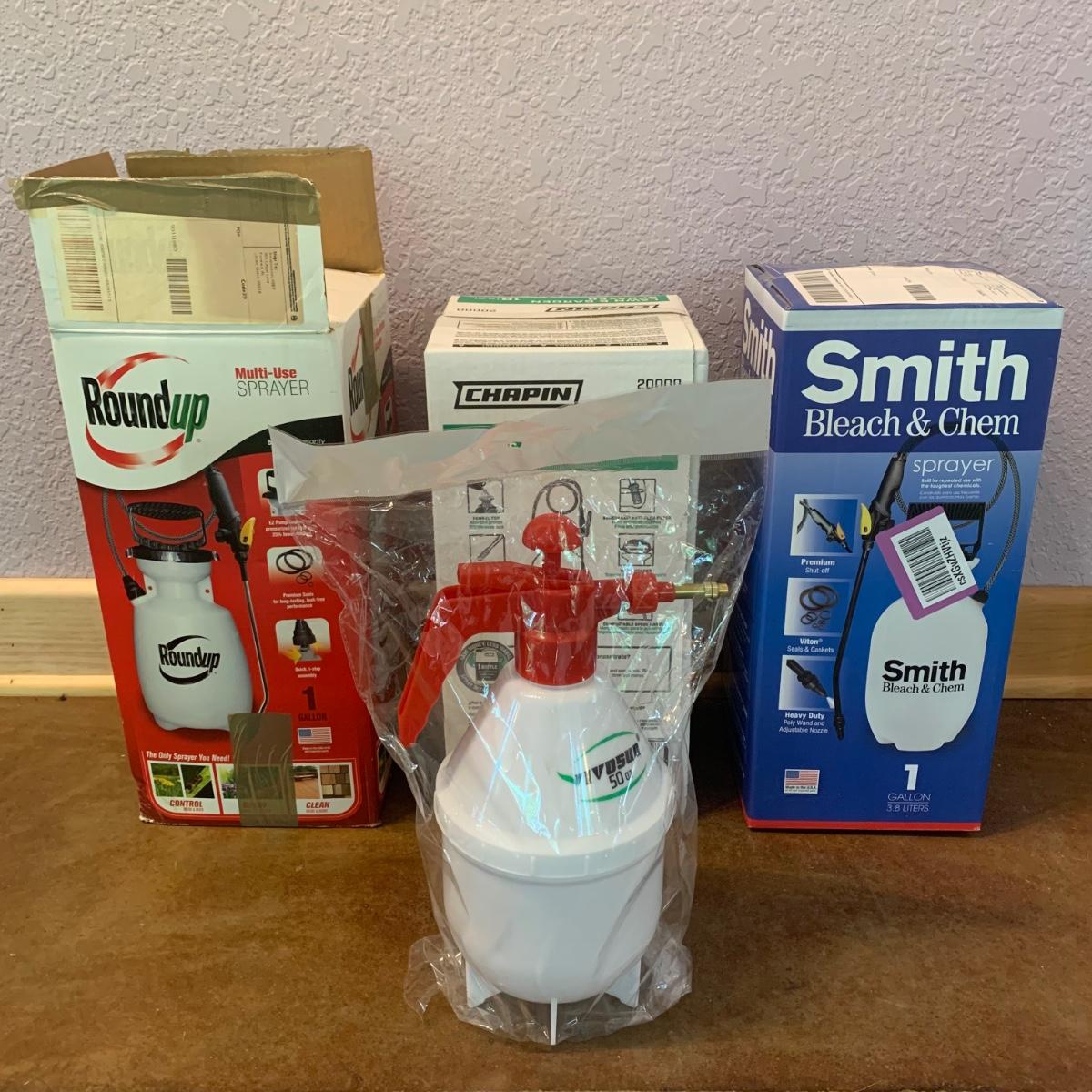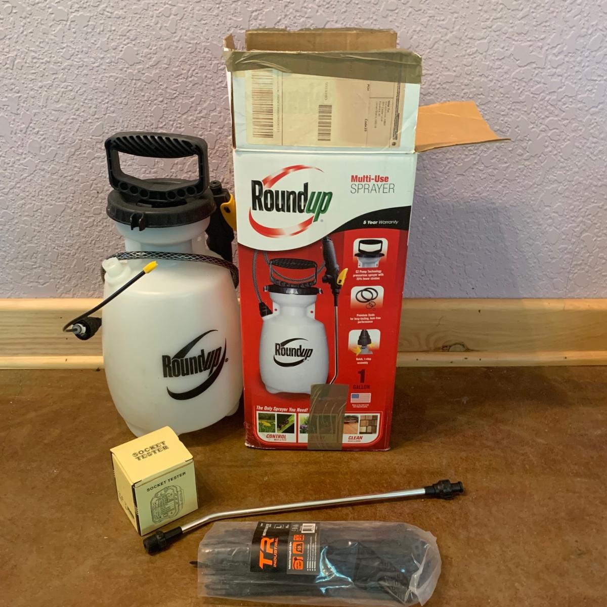 Four multi-use sprayers by Round-up, Smith, Chapin, and Vivosun. Three of the four sprayers are unopened. Round-up sprayer has been opened but appears to be unused. Socket tester and zip ties are included. Boxes measure, 8” x 8” x 15.5”H. Shipping available.