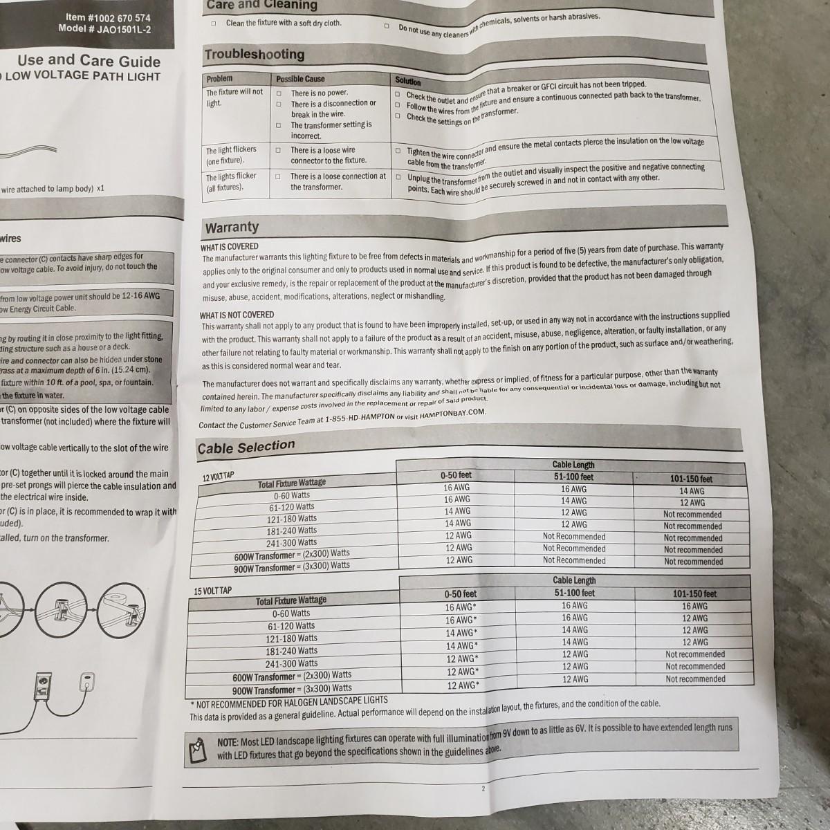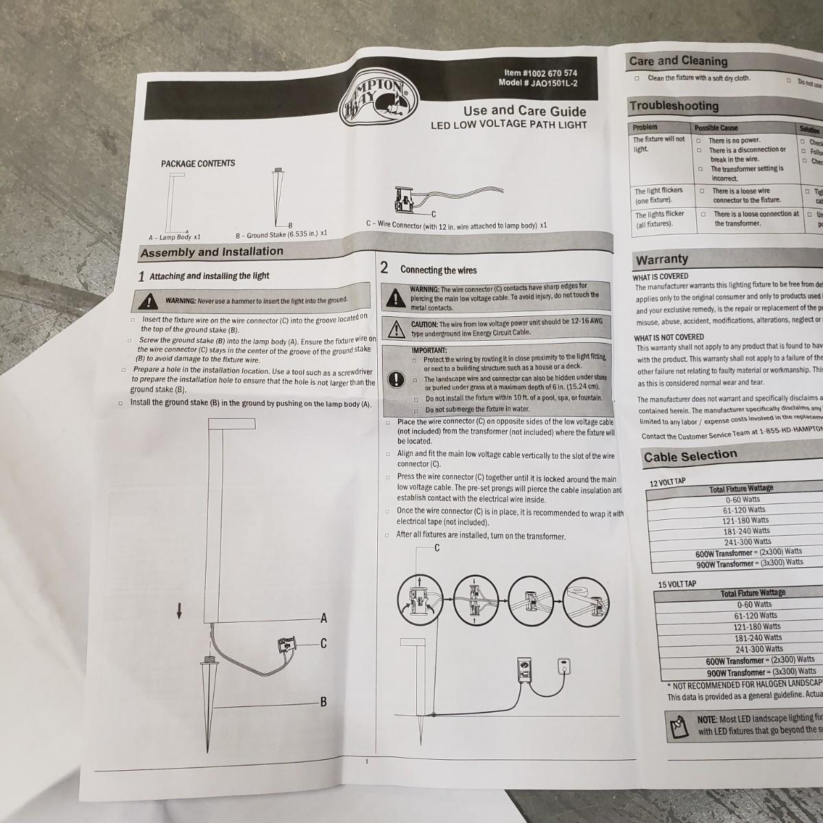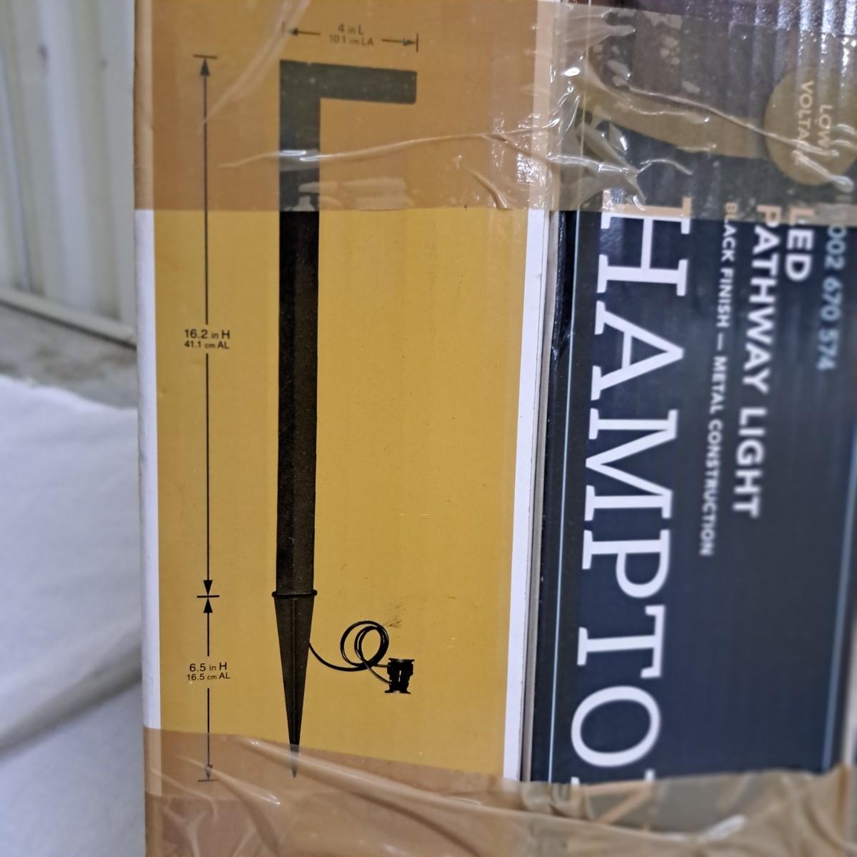 This lot contains four, brand new Hampton Bay LED pathway lights in their boxes. Low voltage with black metal finish. According to the box, each light measures 4" x 2.5" x 22.5"H. All four lights are the same. Local pickup only.
