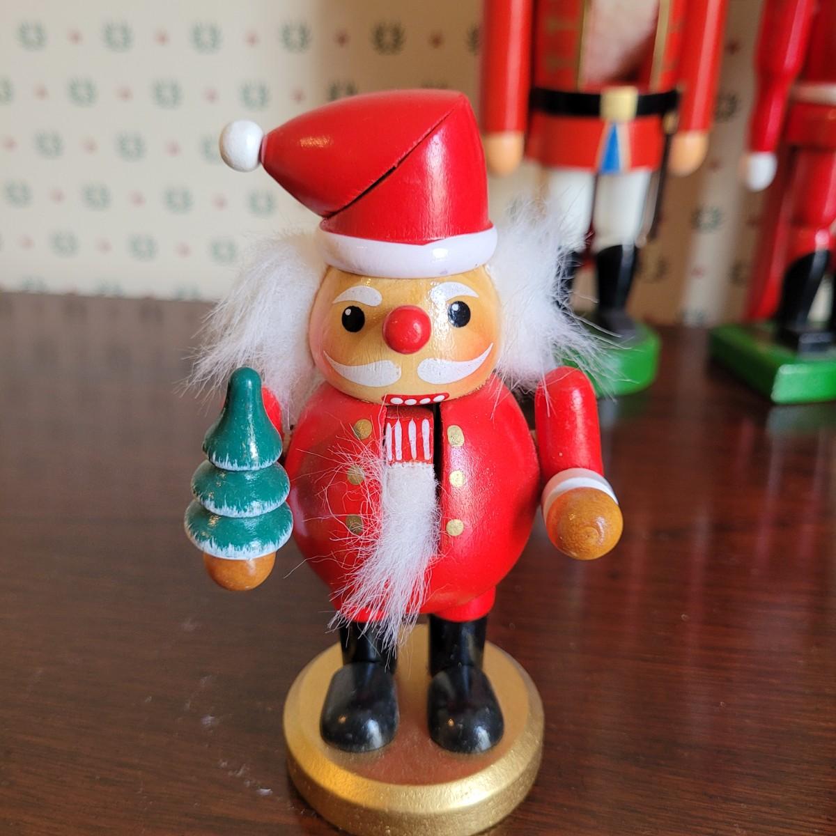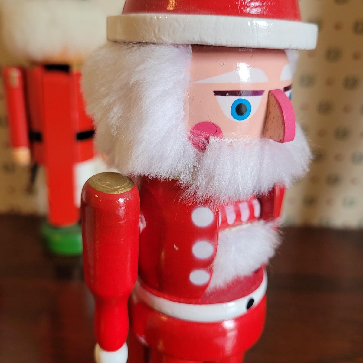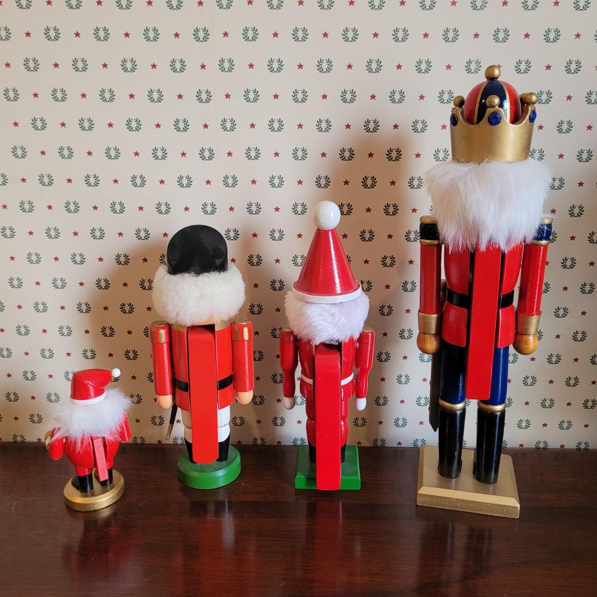 This lot of four nutcrackers includes two cute Santa models. Tallest figure measures approximately 3.5” x 3.5” x 15.5”H. Shipping available.