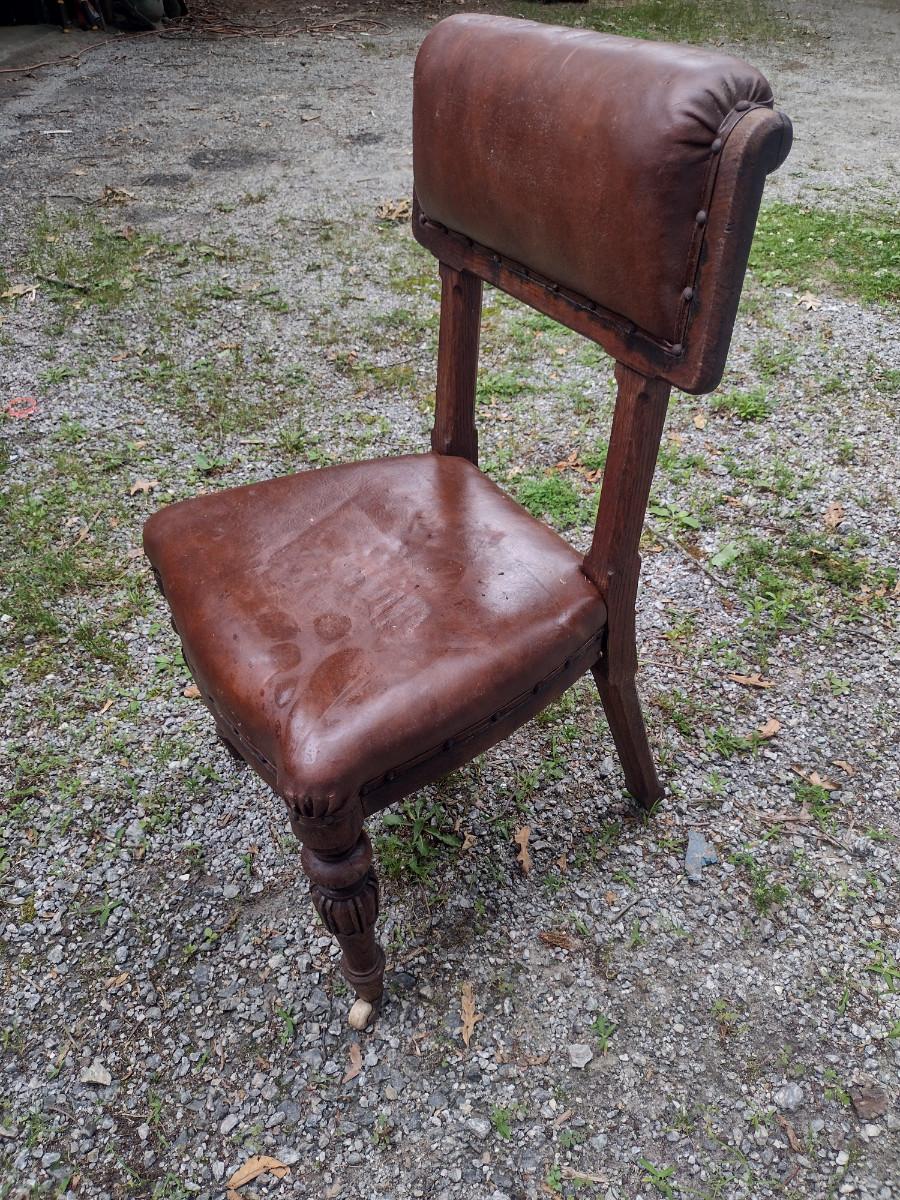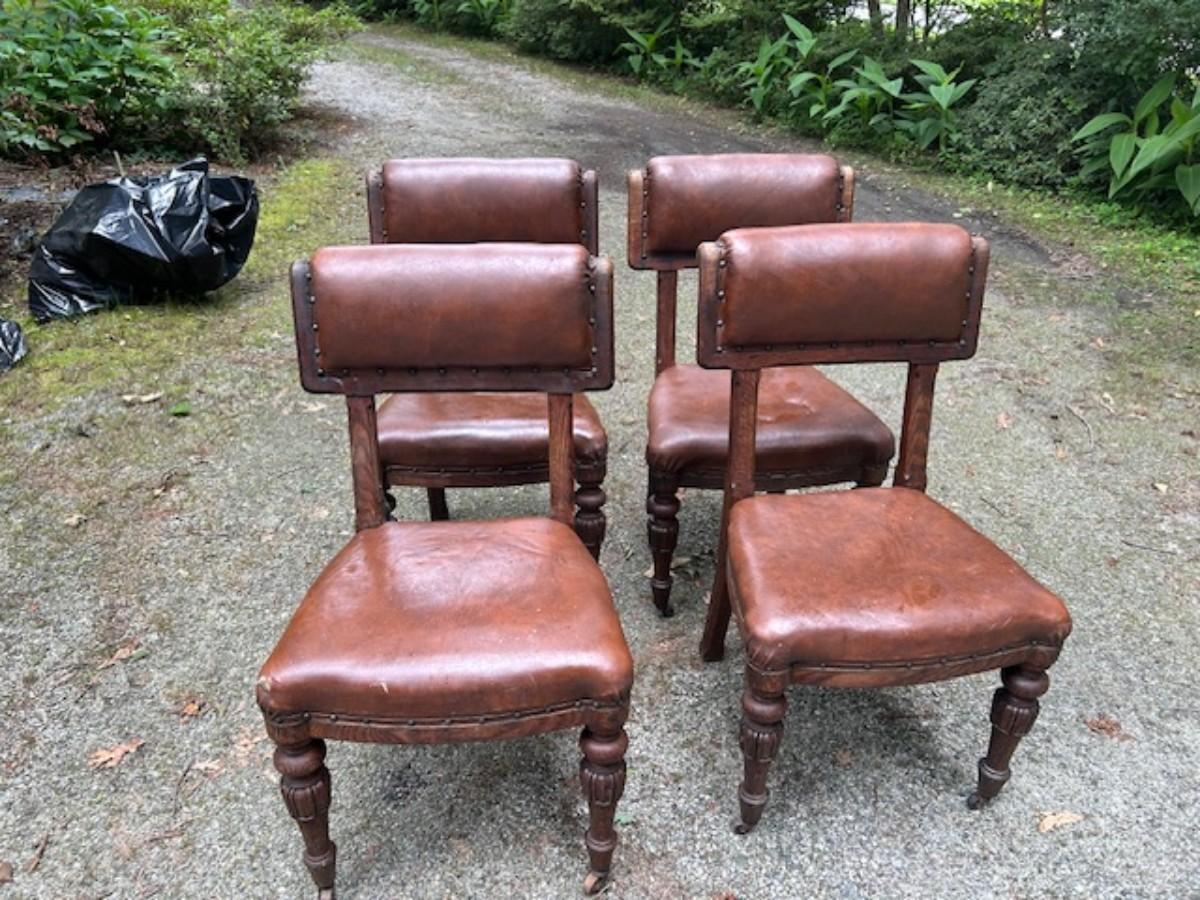 Four Oak Edwardian Style Chairs. Items may be missing some casters.