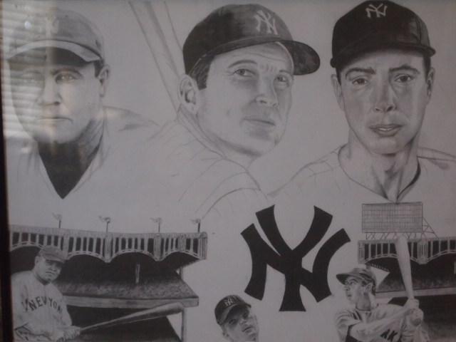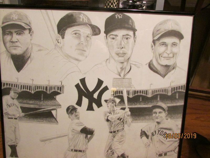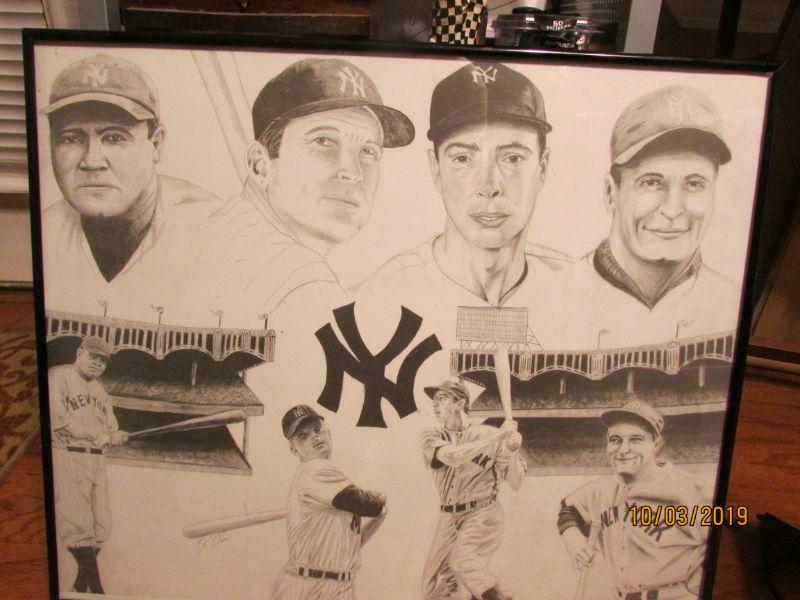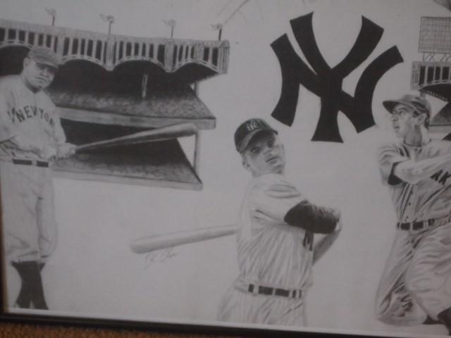 This is a framed Ready to hang Charcoal Drawing of 4 of the Best Yankees to hold a Bat. From The Babe to Pete Rose all have inspired kids of all ages. If you ever watched any of them play then it was an experience you will never forget. As for me The Mick and Pete I was able to see in live action