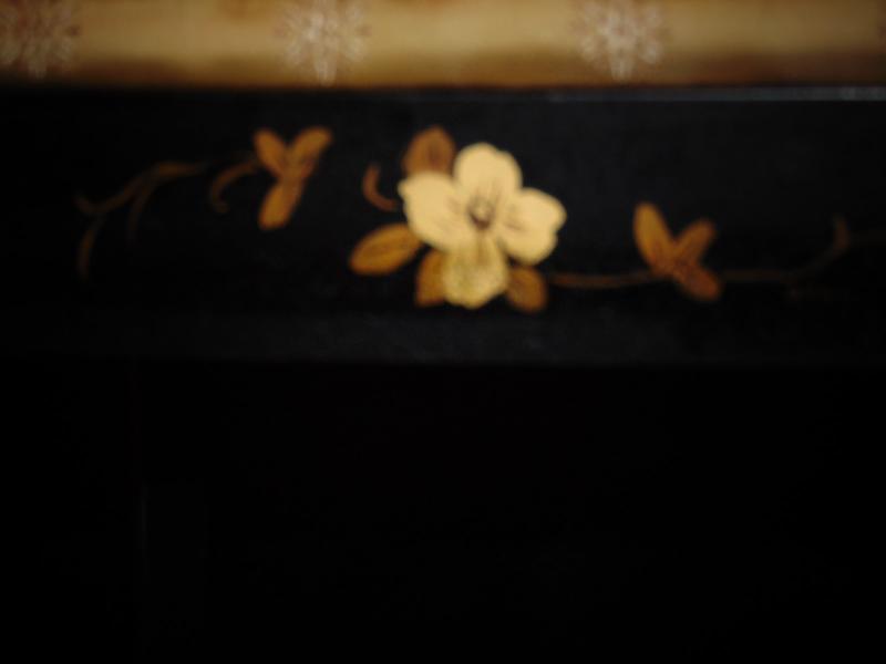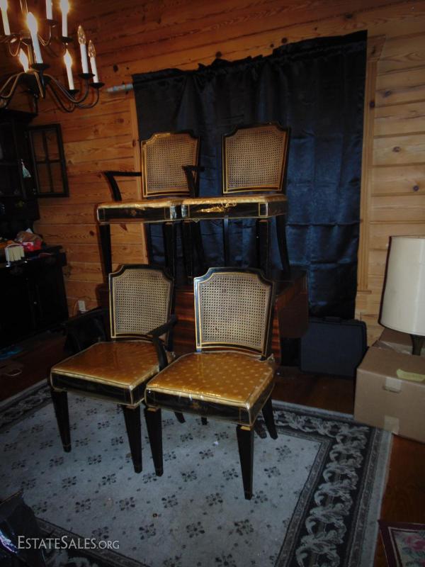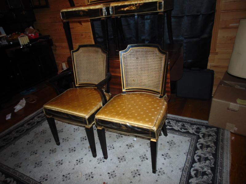 Set of 4 Hand painted Oriental Chairs, 2 have arms others do not have arms they have original cloth on the seats has some spots on cloth you may want to be recovered.