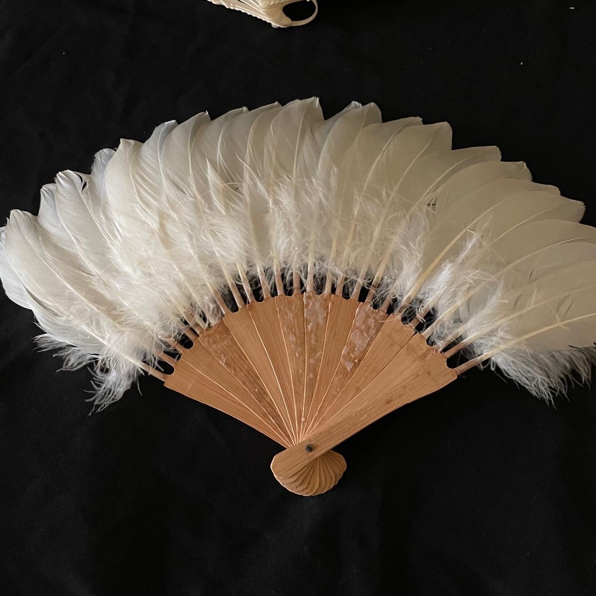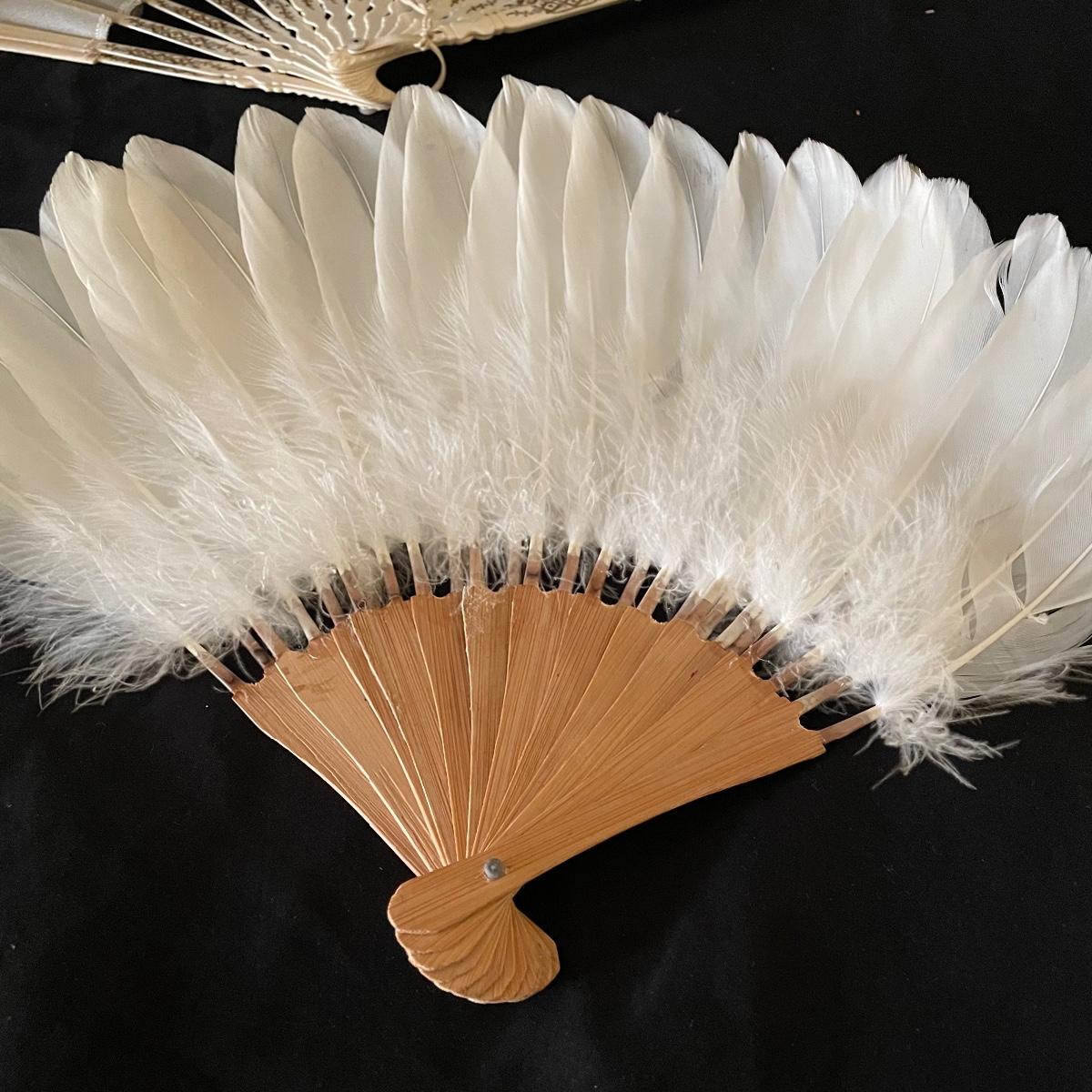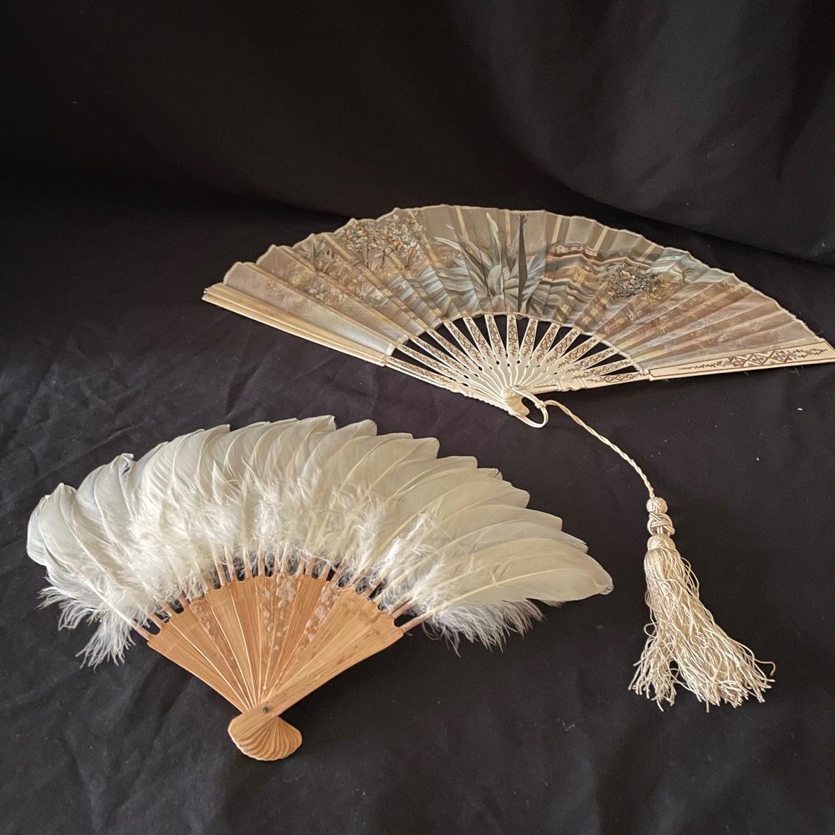 Take a closer look at these four antique handheld fans, they are each so different yet equally gorgeous! The larger fan has a rip shown in images; this fan measures 11” tall x 21” wide. We have thrown in a mix of three antique linens.