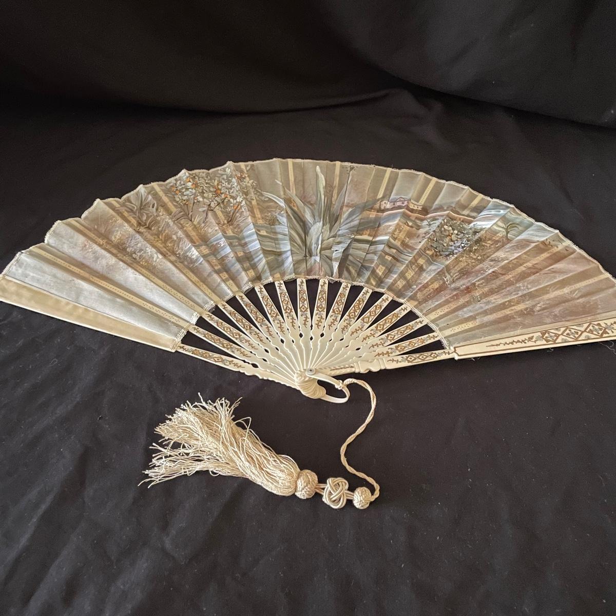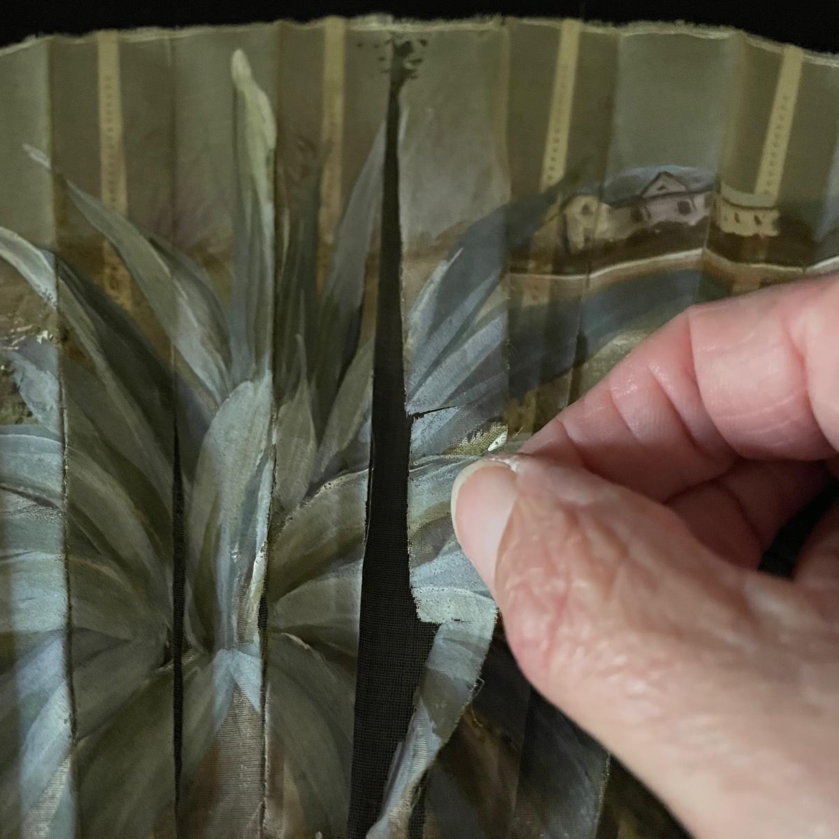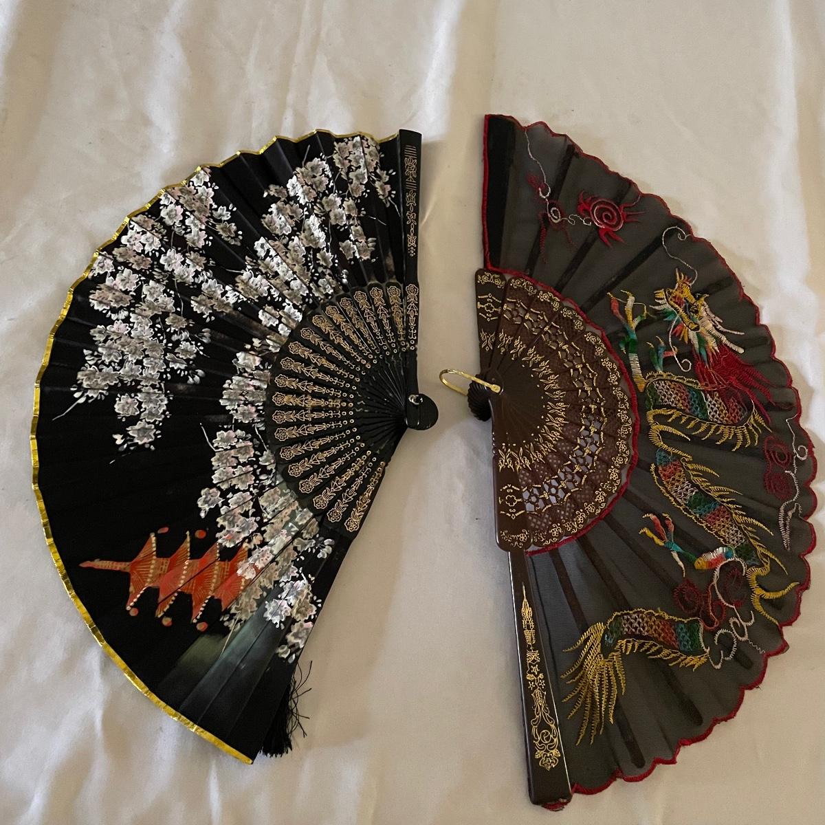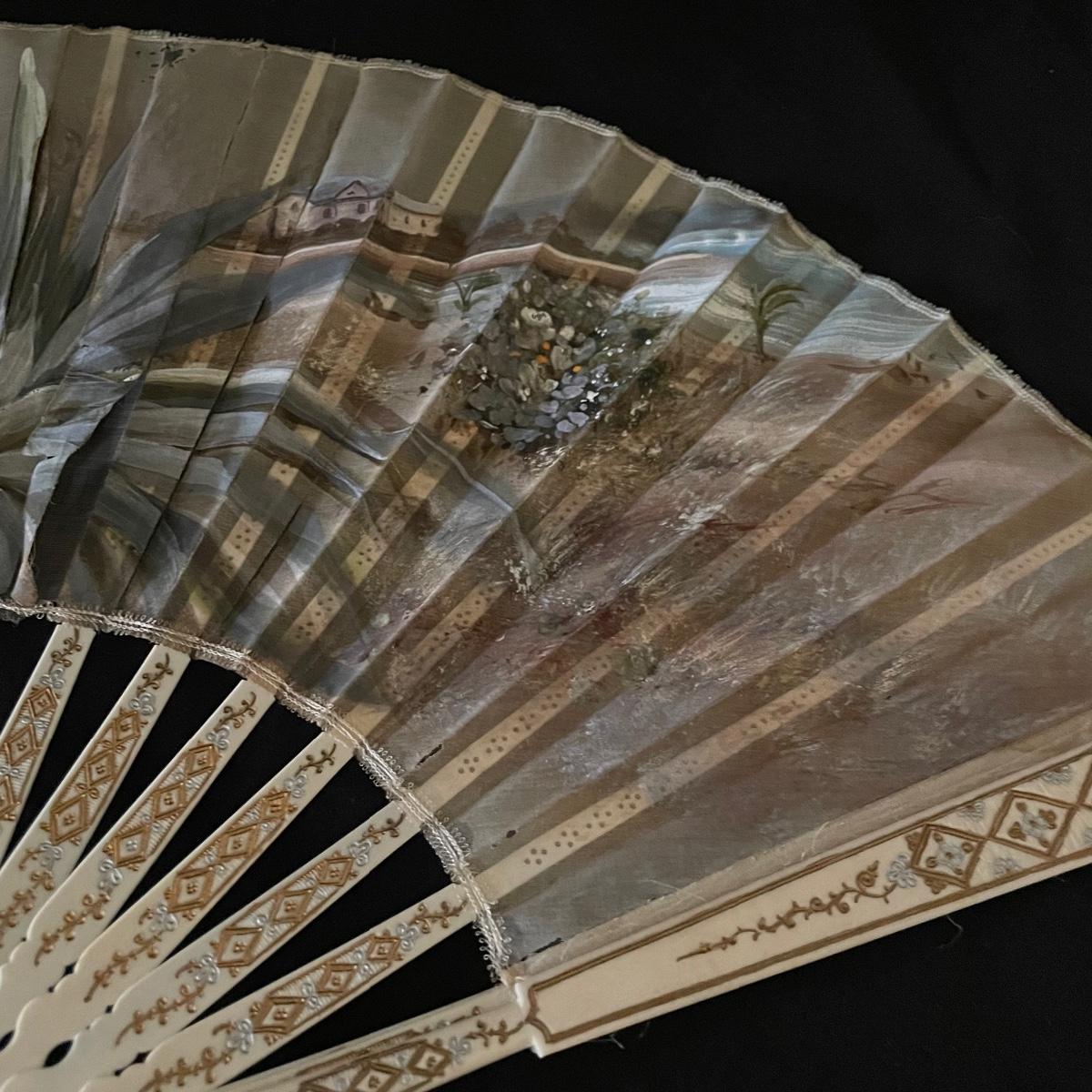 Take a closer look at these four antique handheld fans, they are each so different yet equally gorgeous! The larger fan has a rip shown in images; this fan measures 11” tall x 21” wide. We have thrown in a mix of three antique linens.