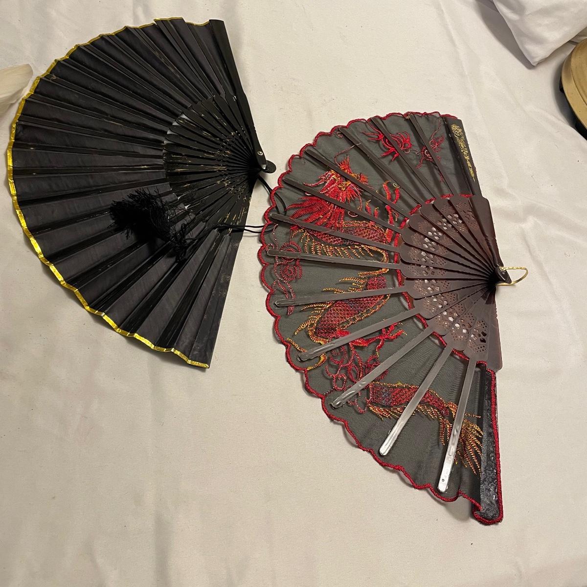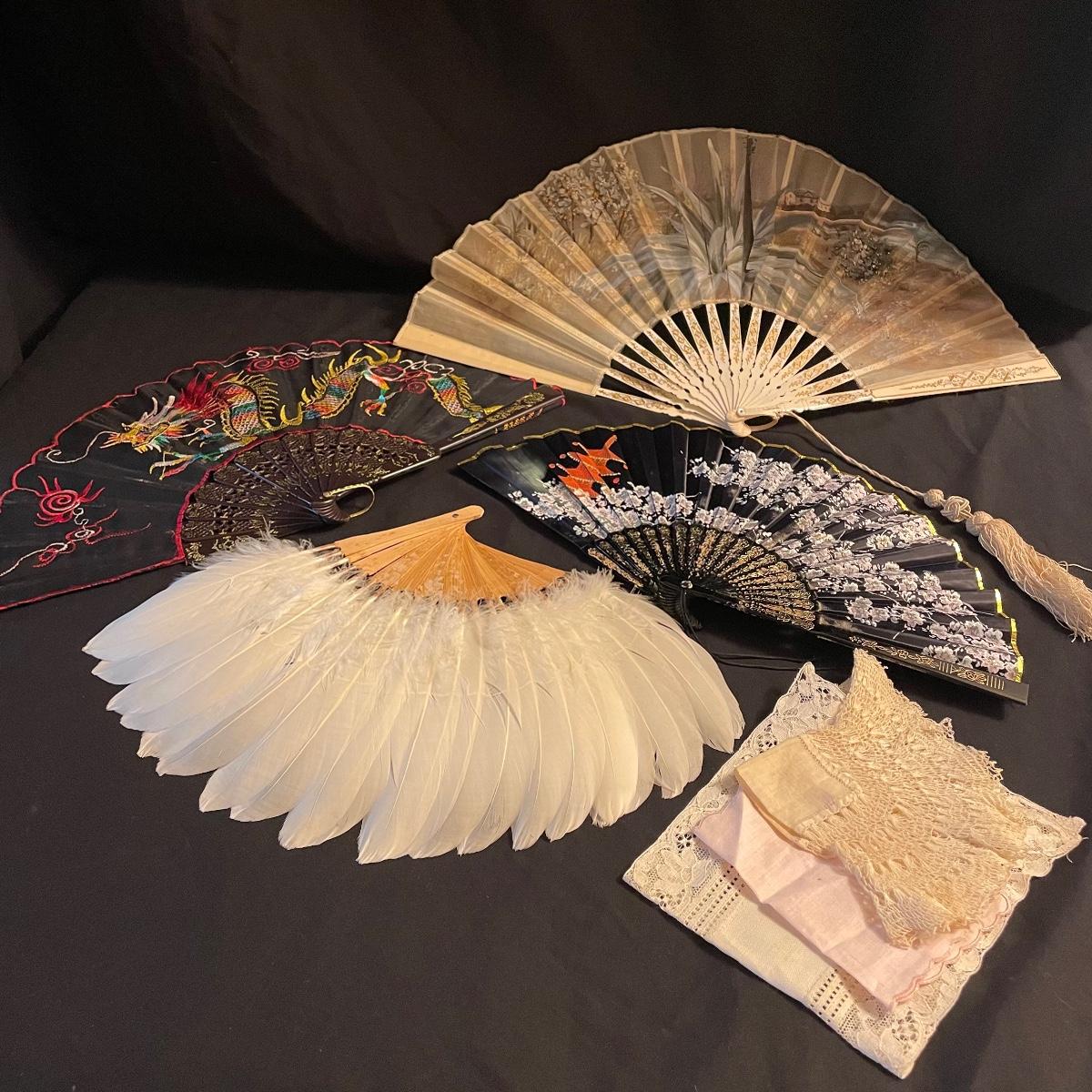Four Ornate Fans & Miscellaneous Linens (LR-RG)