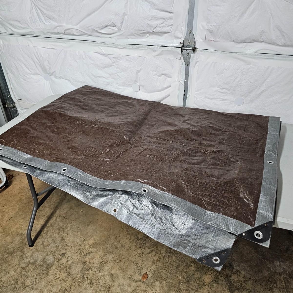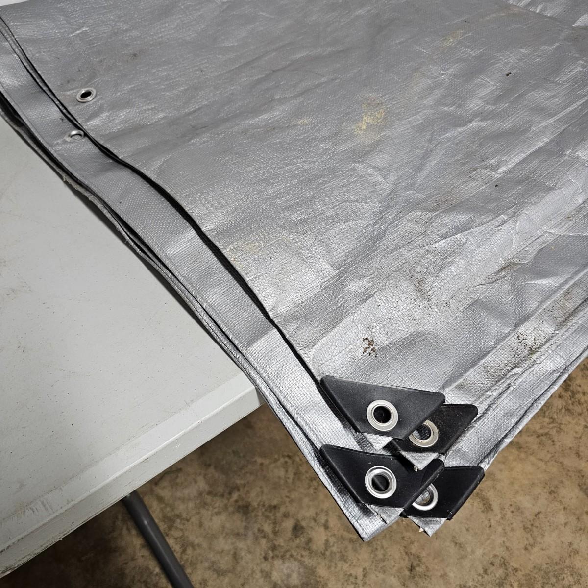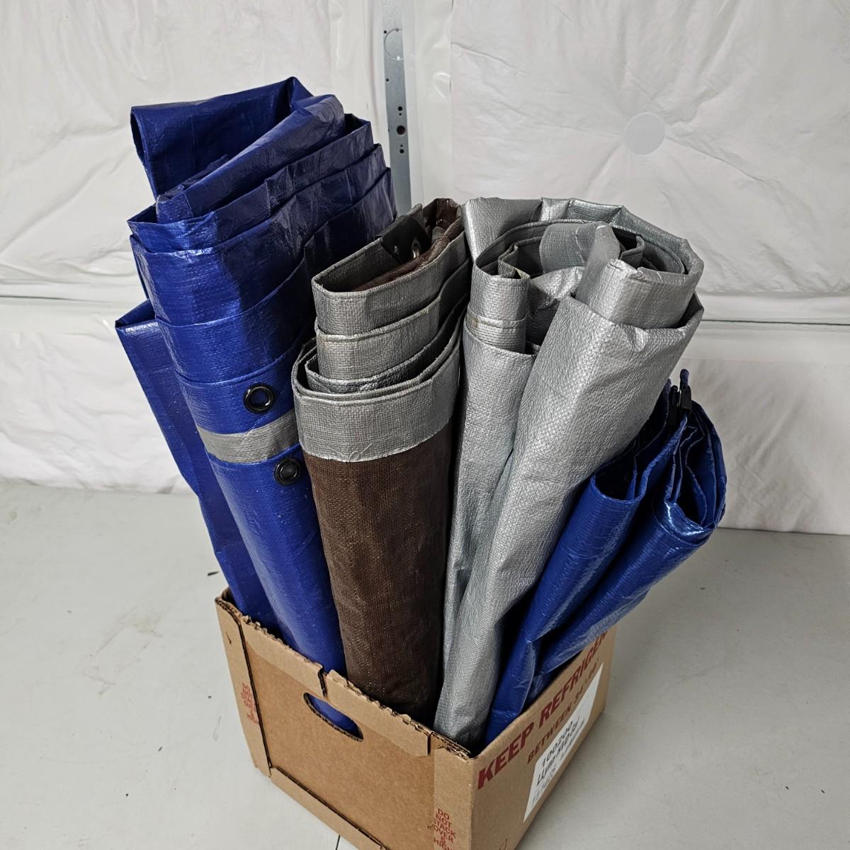 One 6' x 8', two 8" x 10' and one 12' x 24' outdoor tarps. Grommets and reinforced corners on all items. Tarps have some dirt on them but minimal, have not seen much use. See photos for details. Local pickup only.