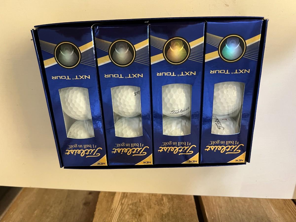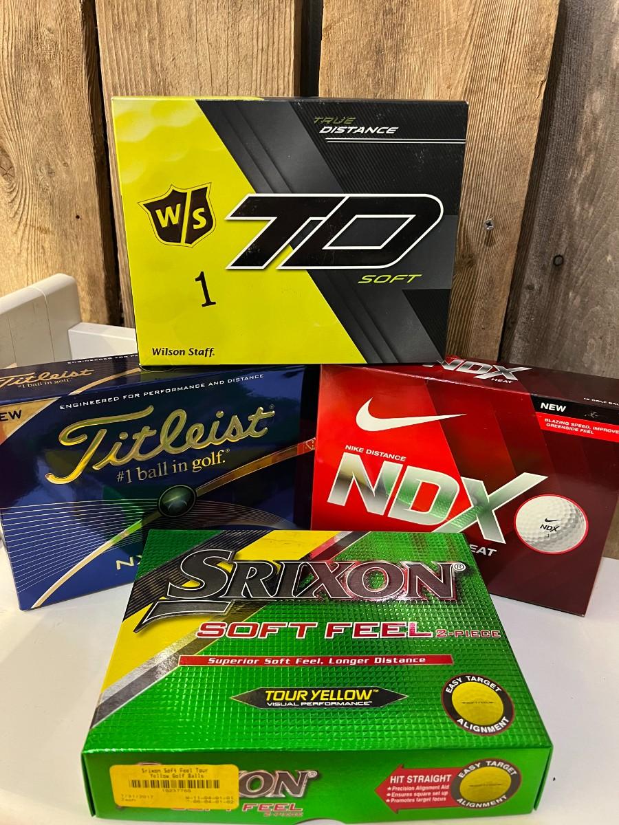 Four packs with 4 boxes containing 3 golf balls in each box. Grand total of 48 brand new golf balls from Ttileist, TD, NDX, Srixon (yellow). Never used.