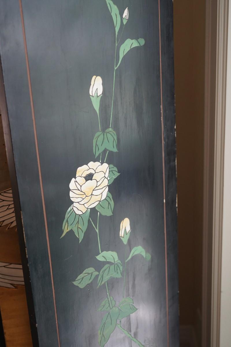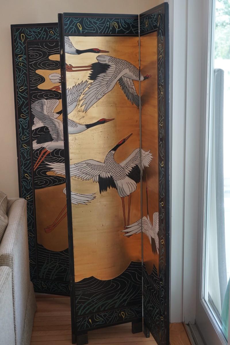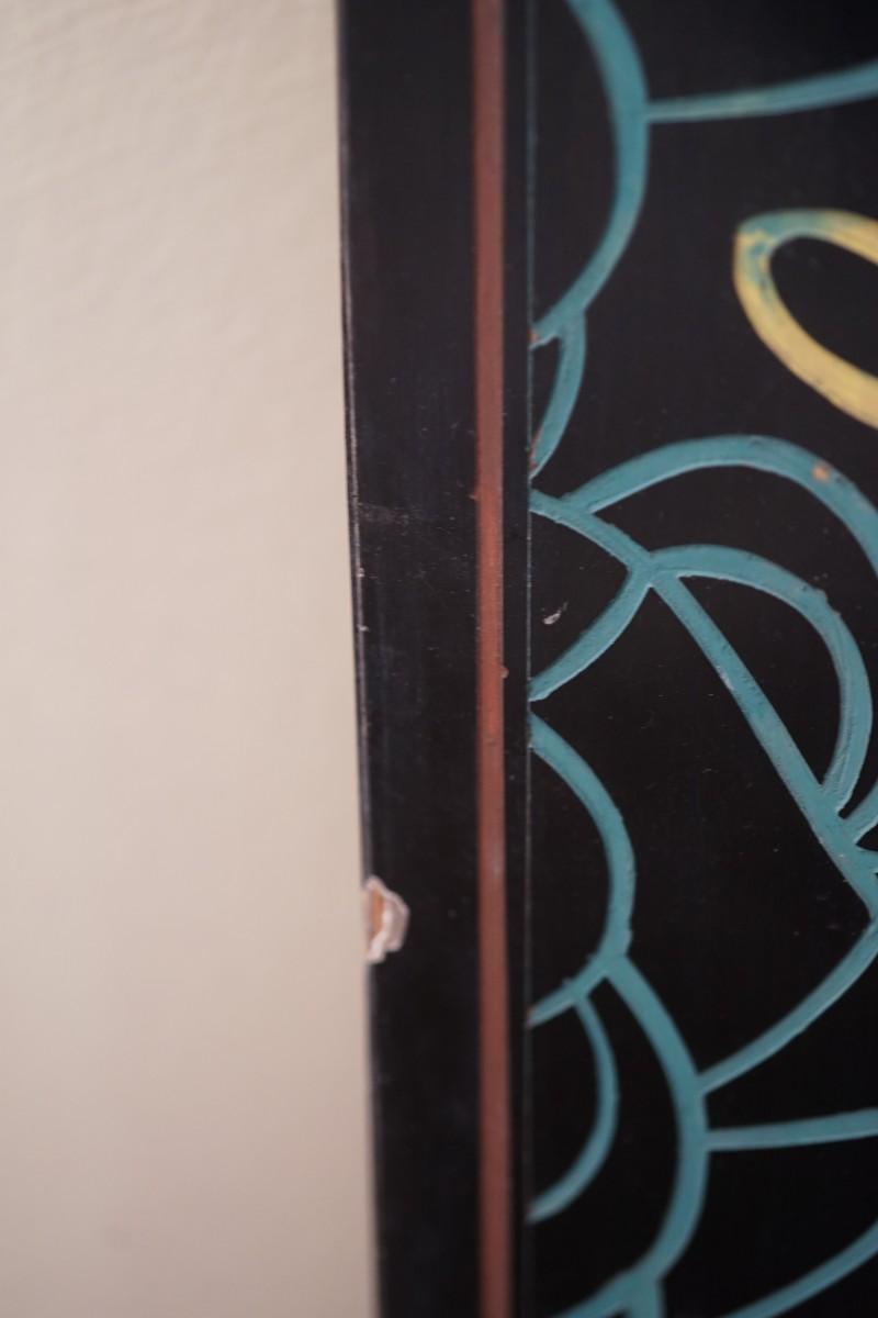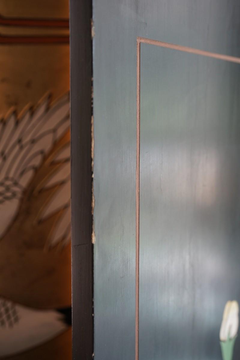 the trim and back has finish of lacquer paint and incised carving of foliage