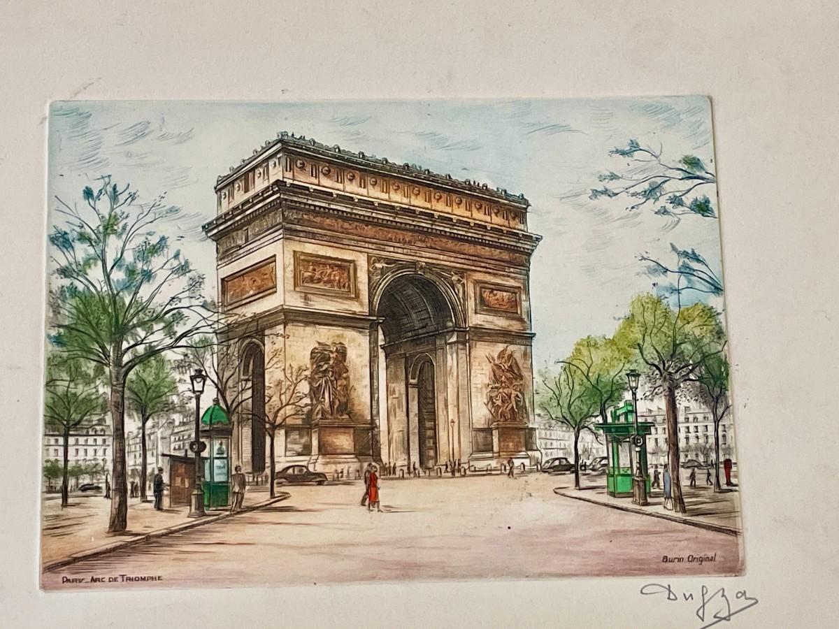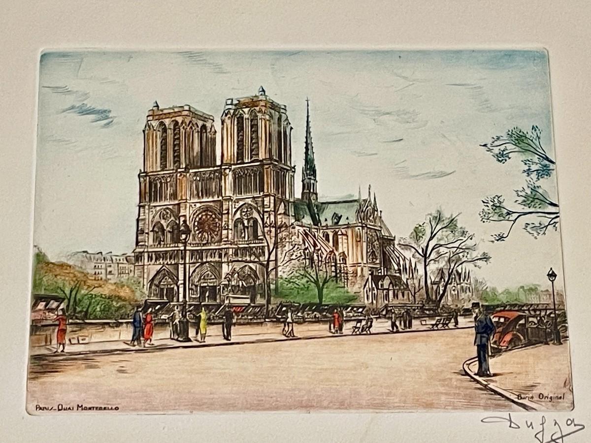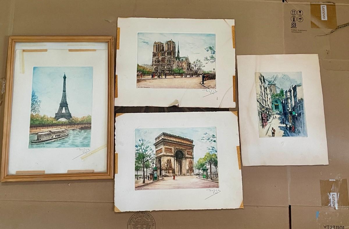 Three are signed by Dufza, one is stamped from the Louvre Museum.