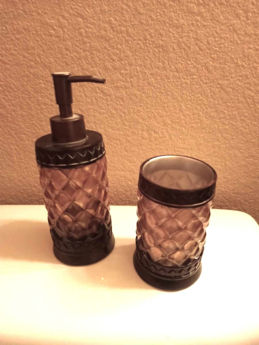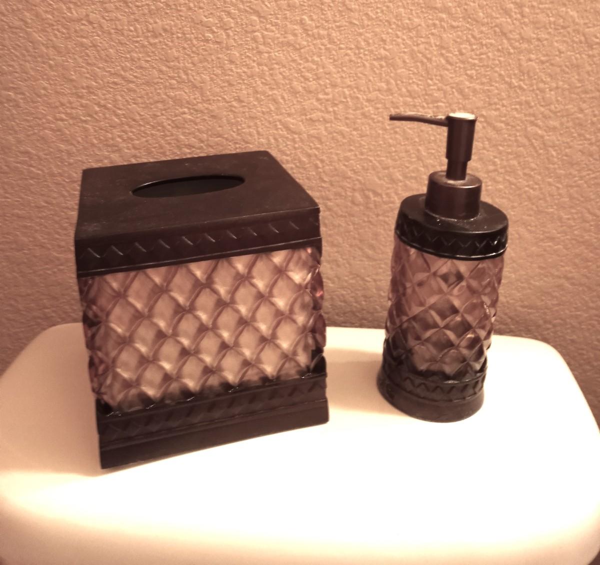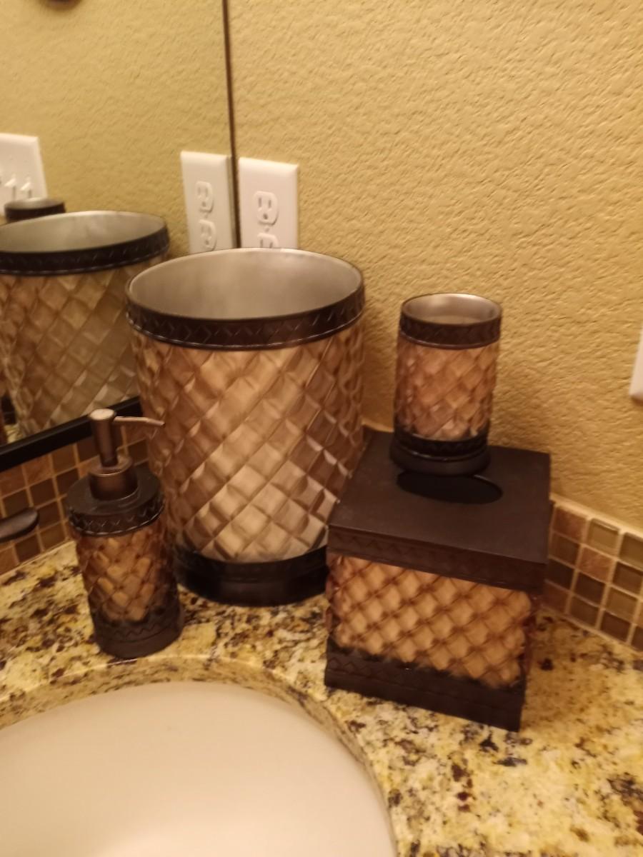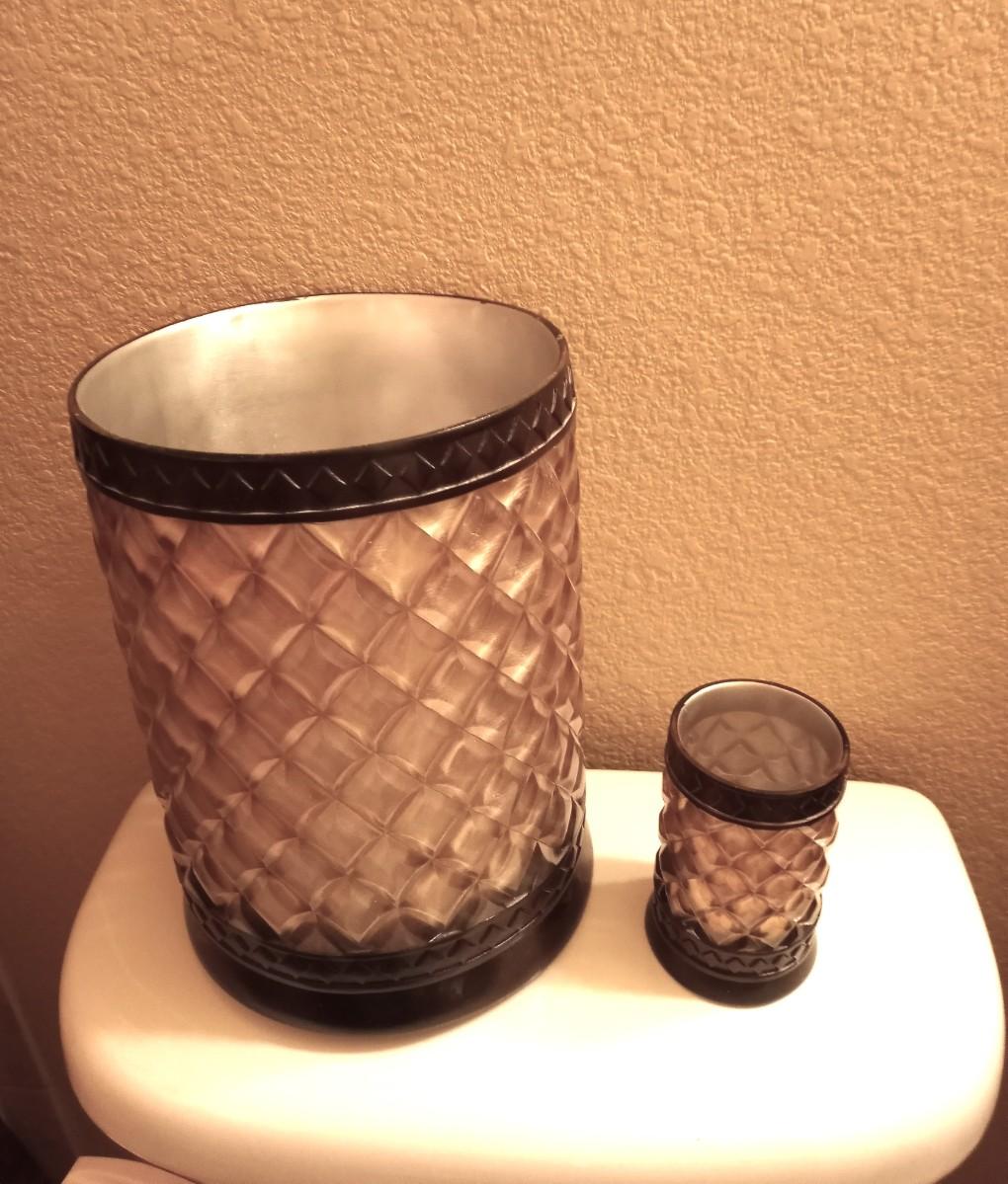 SOAP DISPENSER-TISSUE HOLDER-CUP AND TRASHCAN 10" TALL