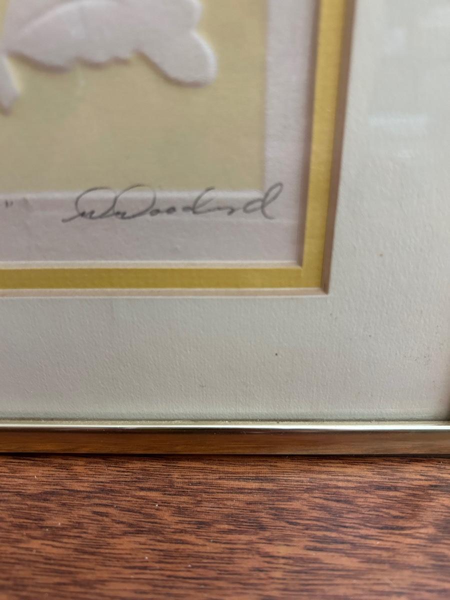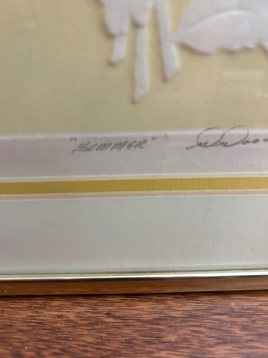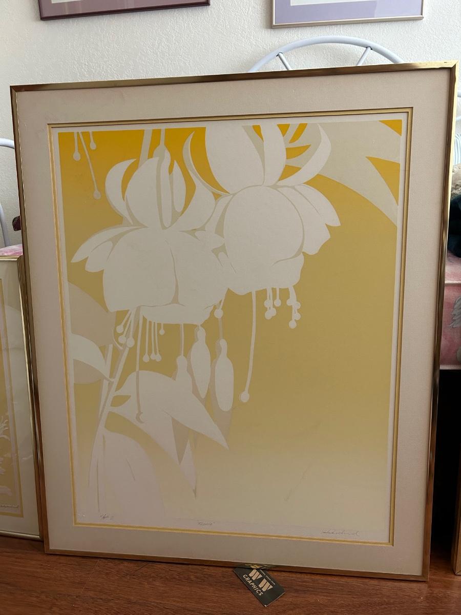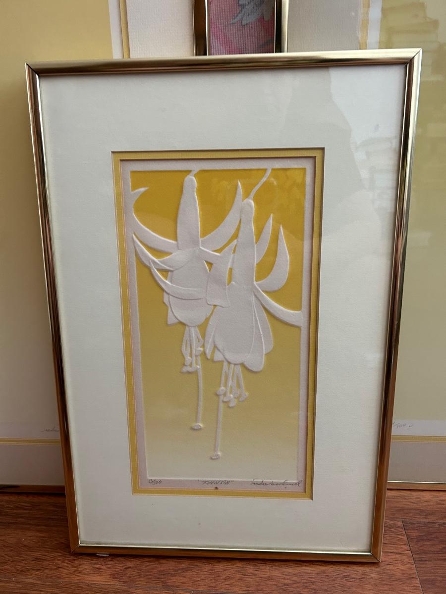 Four Piece Floral Silhouette Serigraph Embossed Framed Art Warren Woodward Yellow & White Numbered Signed
