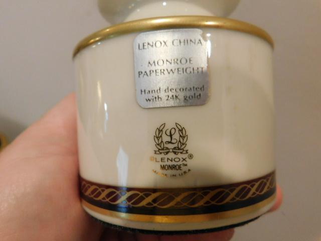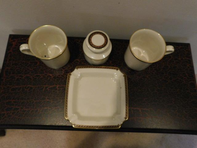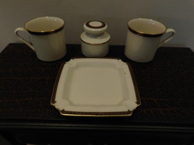 Four Piece Lenox Office Desk Decorated in 24KT Gold Set Includes Paper Weight and Ashtray
