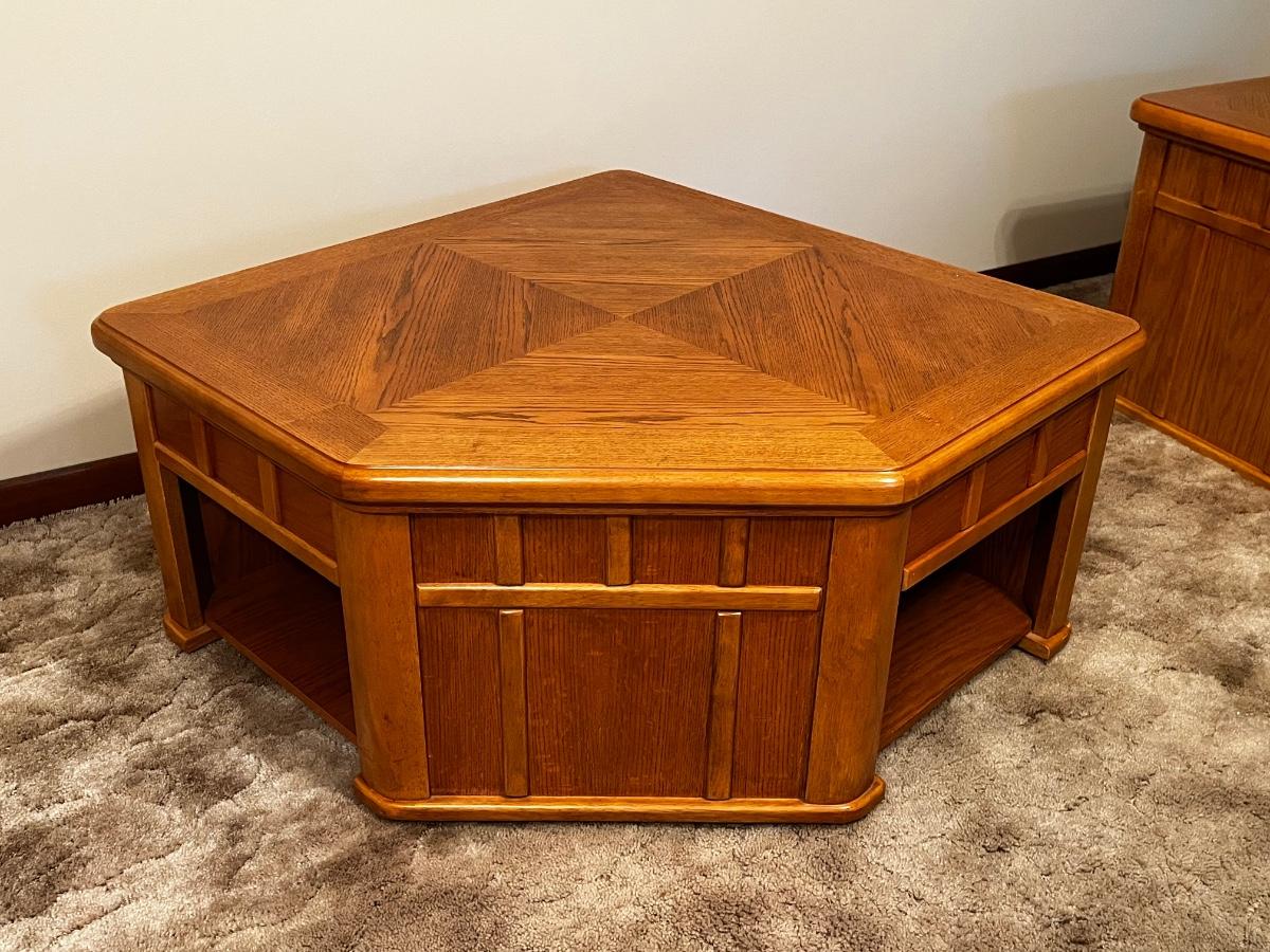 Four (4) Piece ~ Wooden Living Room Inlaid Table Suite