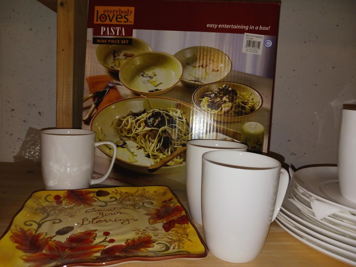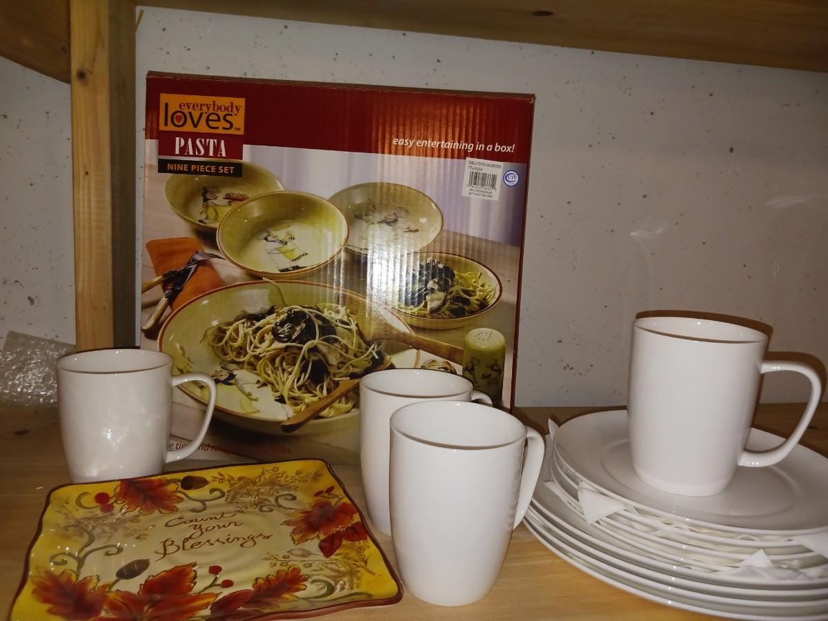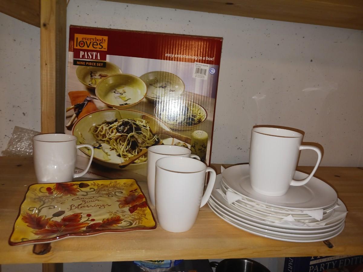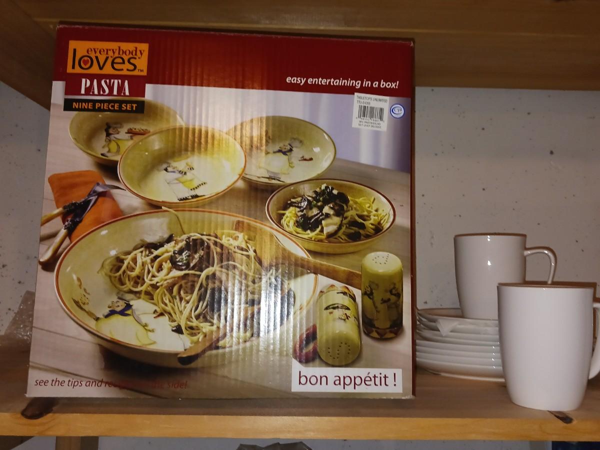 FOUR PLACE SETTING OF DINNERWARE PLUS PASTA SERVING BOWL W/4 SINGLE BOWLS