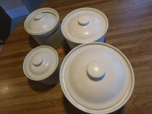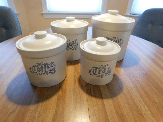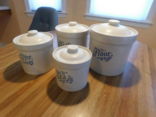 Four Piece Stoneware Canister Set may have a chip or two around lids or edges