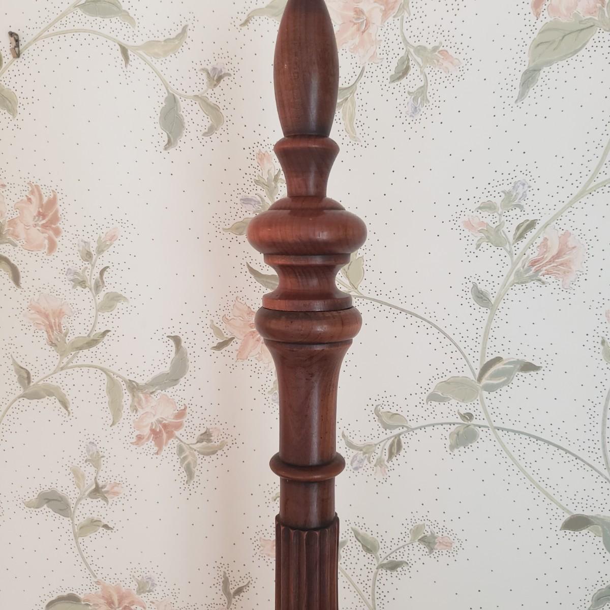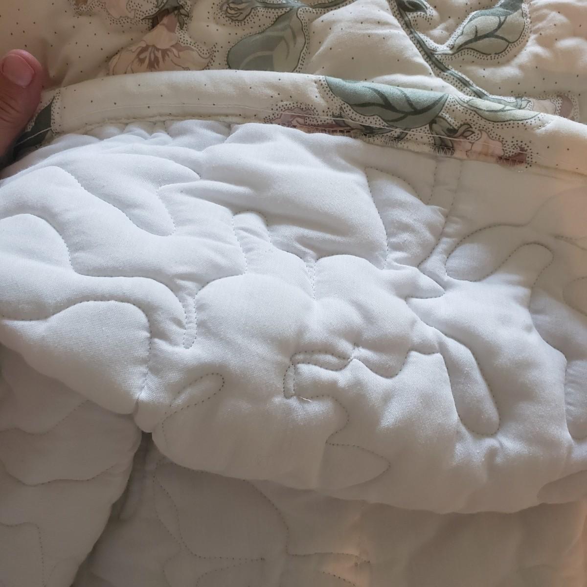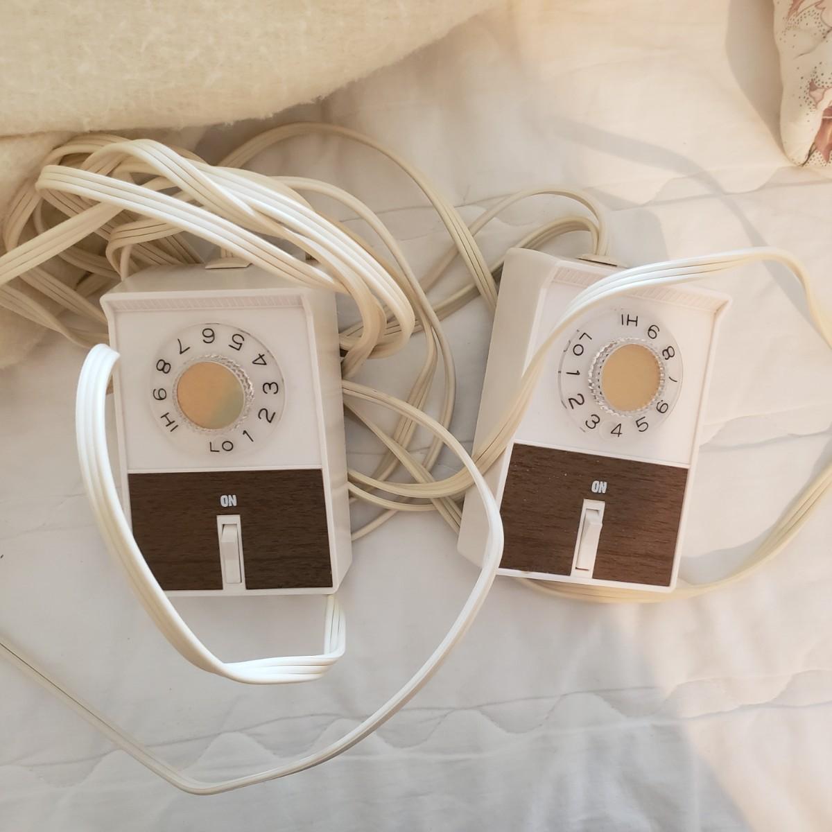 This four poster double size bed measures 57" x 77" x 67"H. The height is each of the four posts. The bed comes with a bed skirt and matching double comforter. The comforter is a cotton blend and quilted. The electric blanket is a cream color and comes with two cords and is a double size. Both cords power on when plugged in. The bed rails are slotted to get apart, see picture although it may be hard to see the slats.