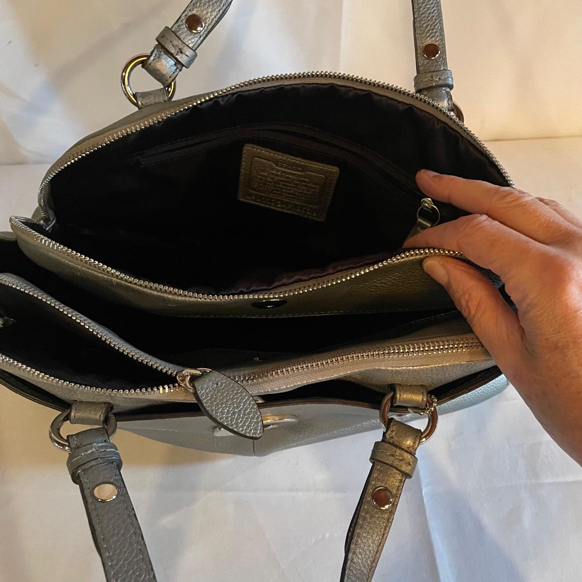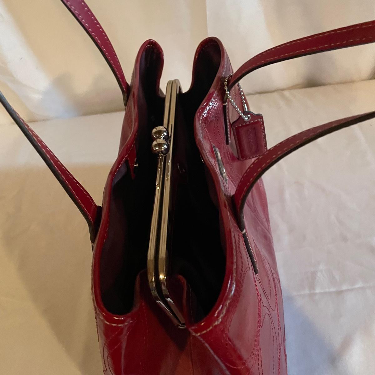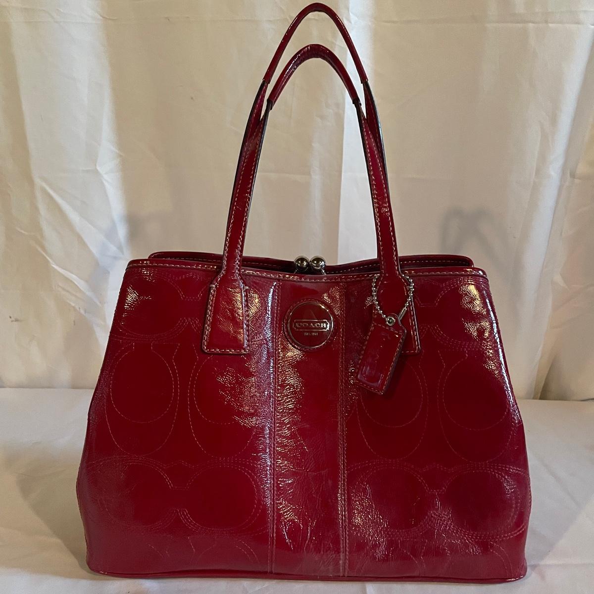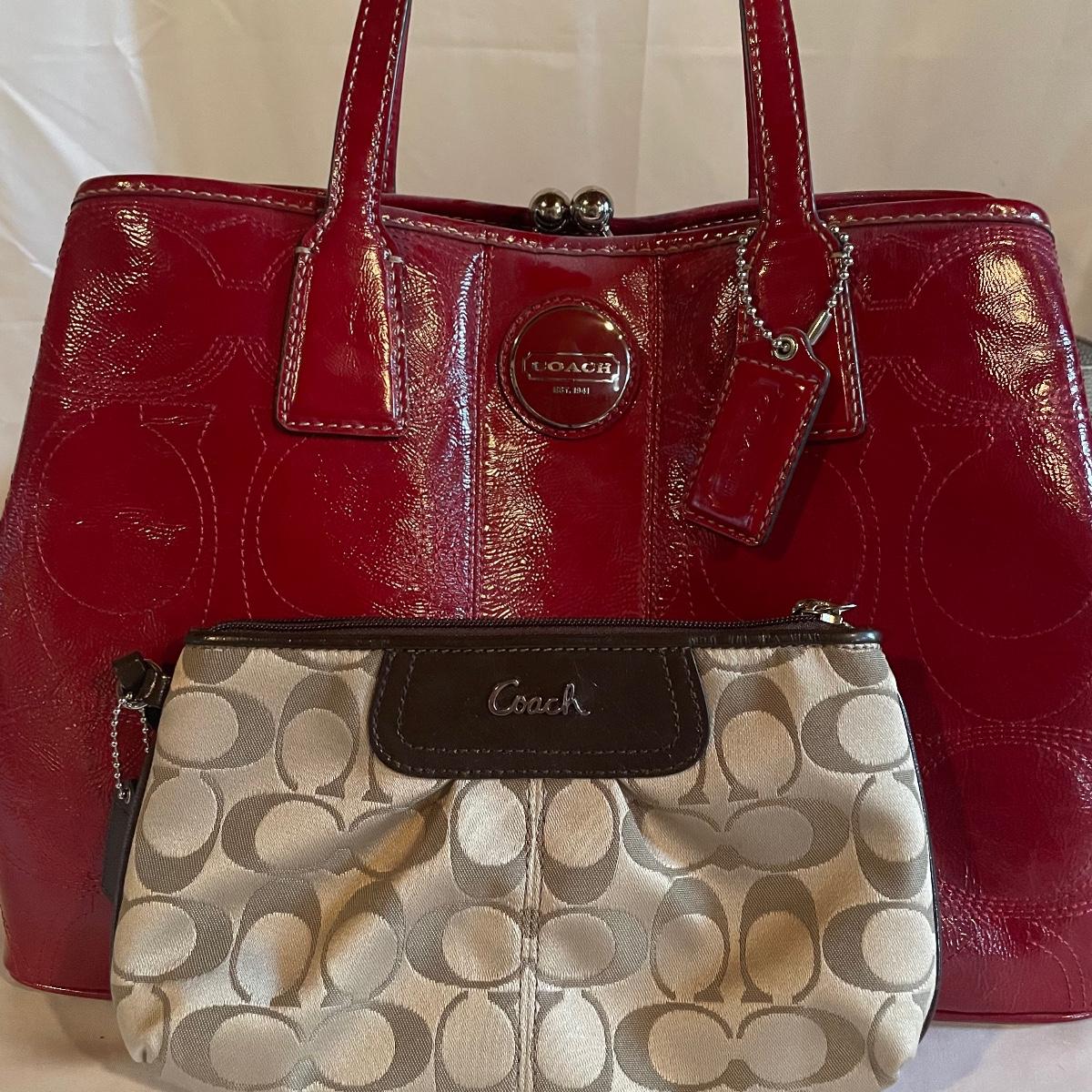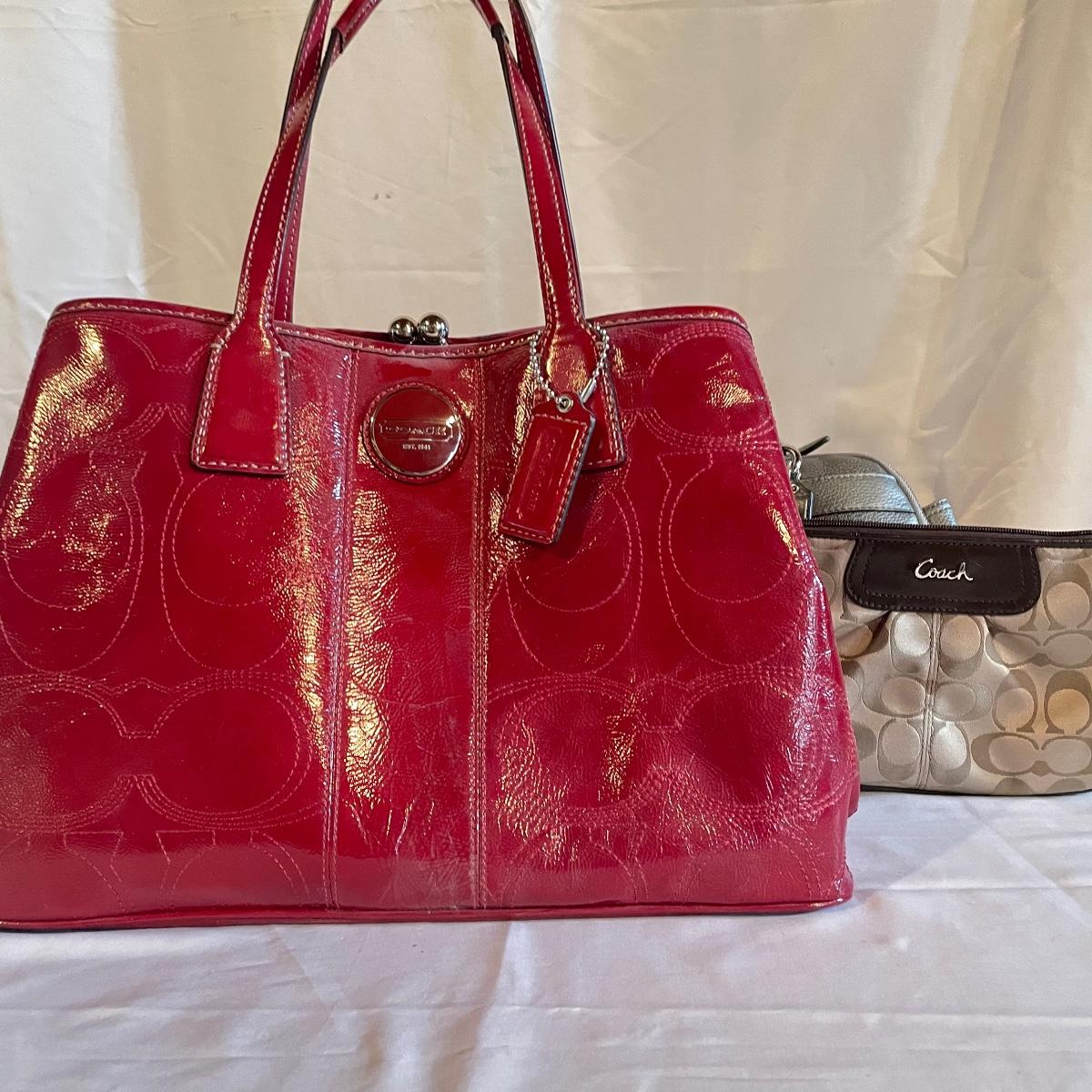 Wow! Four Coach purses that are in excellent condition. They certainly have been lovingly cared for or possibly not even or rarely used? The red tote bag is the largest, measuring approximately 14” wide x 6.5” deep x 10” tall. The small tan clutch being the smallest at 9” wide x .5” deep x 5” tall.