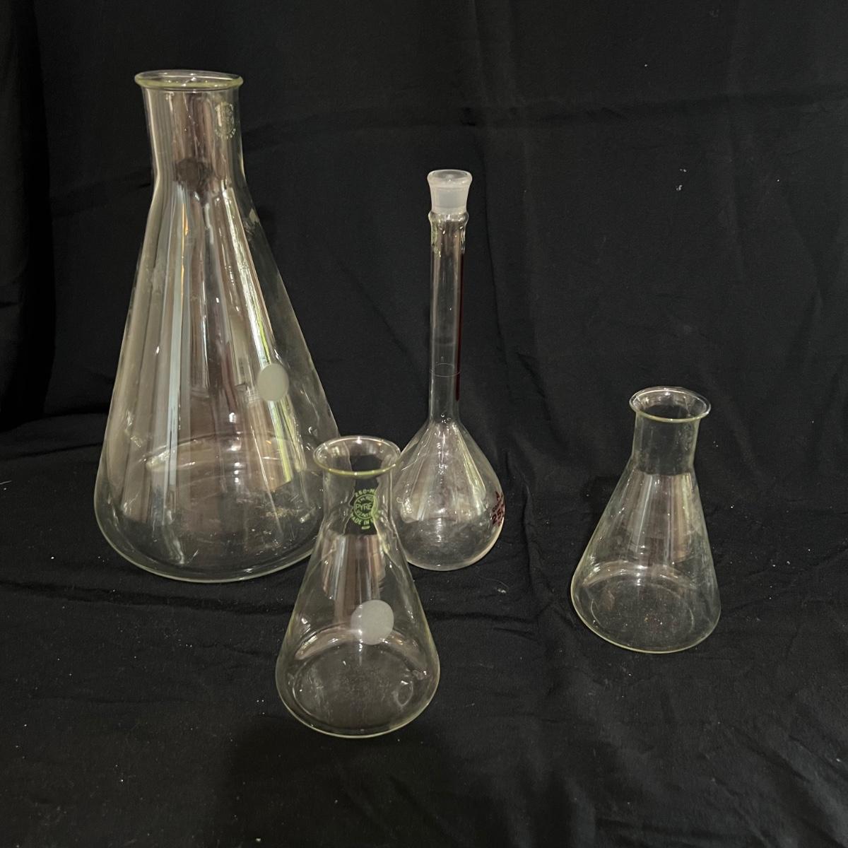 Two 250 ml Pyrex beakers and one long neck 250 ml beaker. One large 2000 ml beaker.