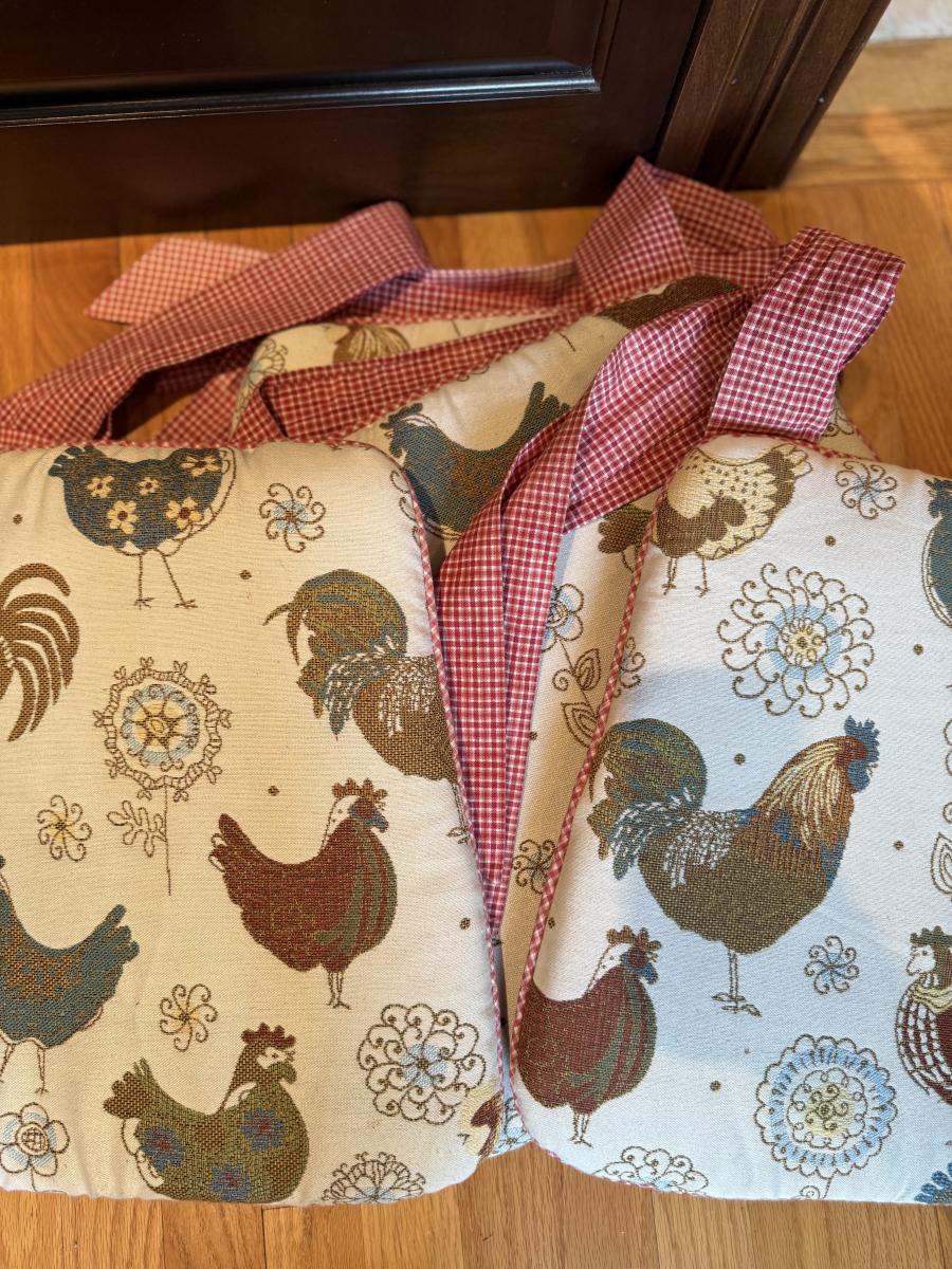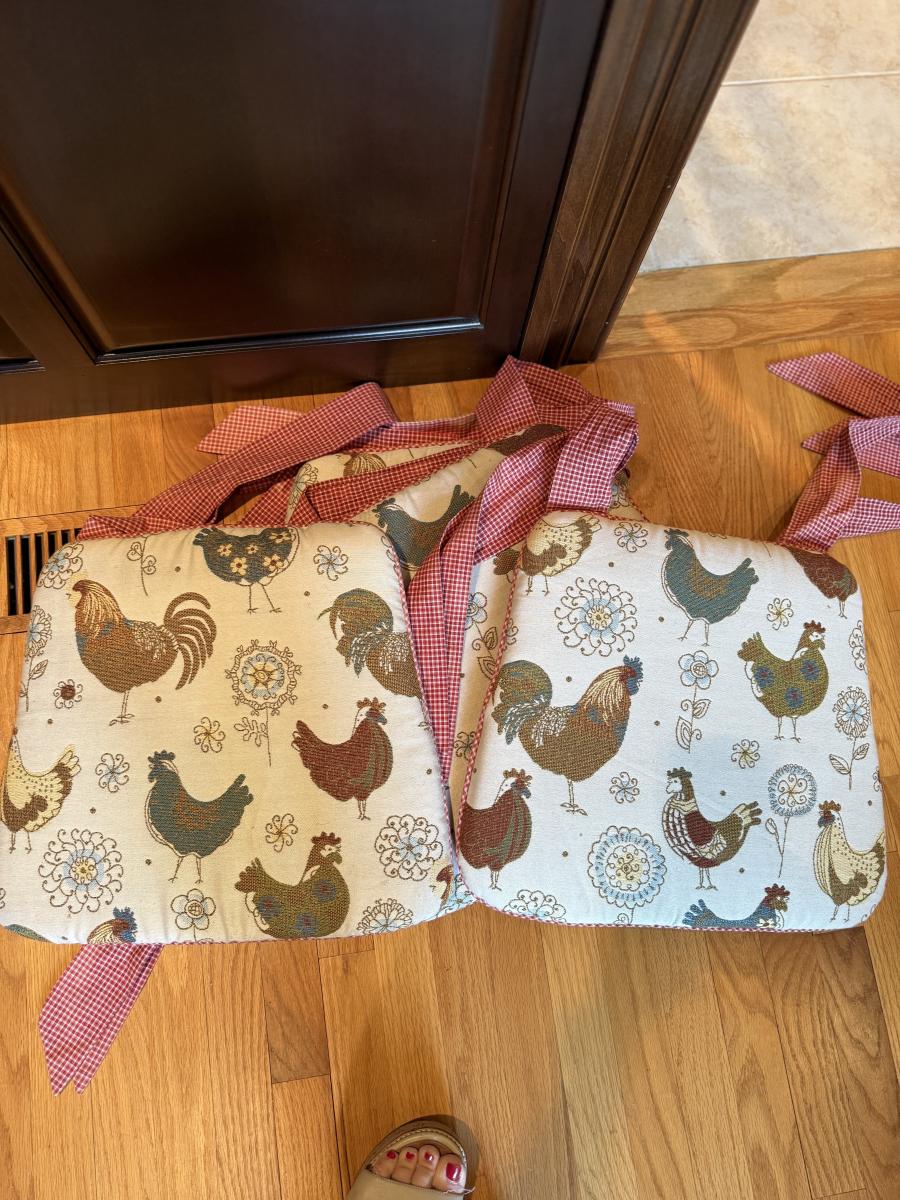 Four rooster seat cushions