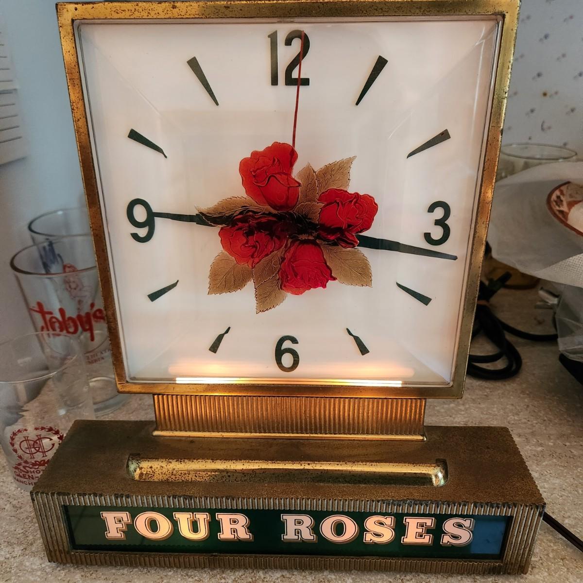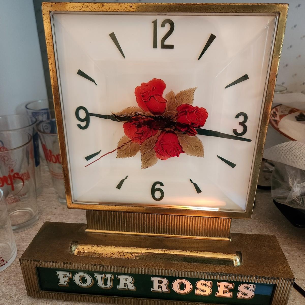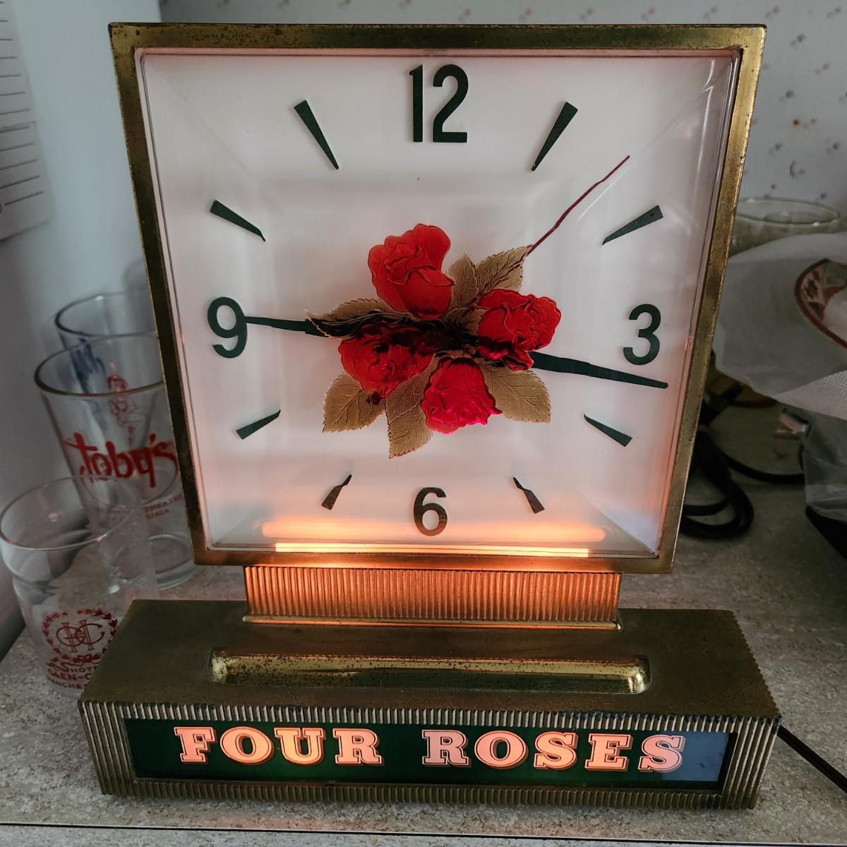Vintage Four Roses Whiskey Bar Clock tested Working 12x13H Barware