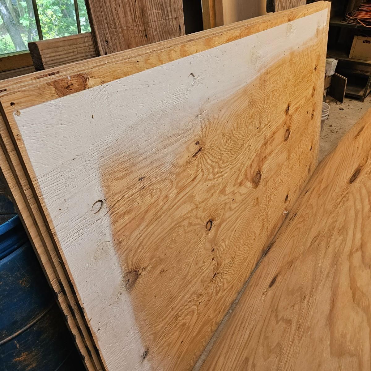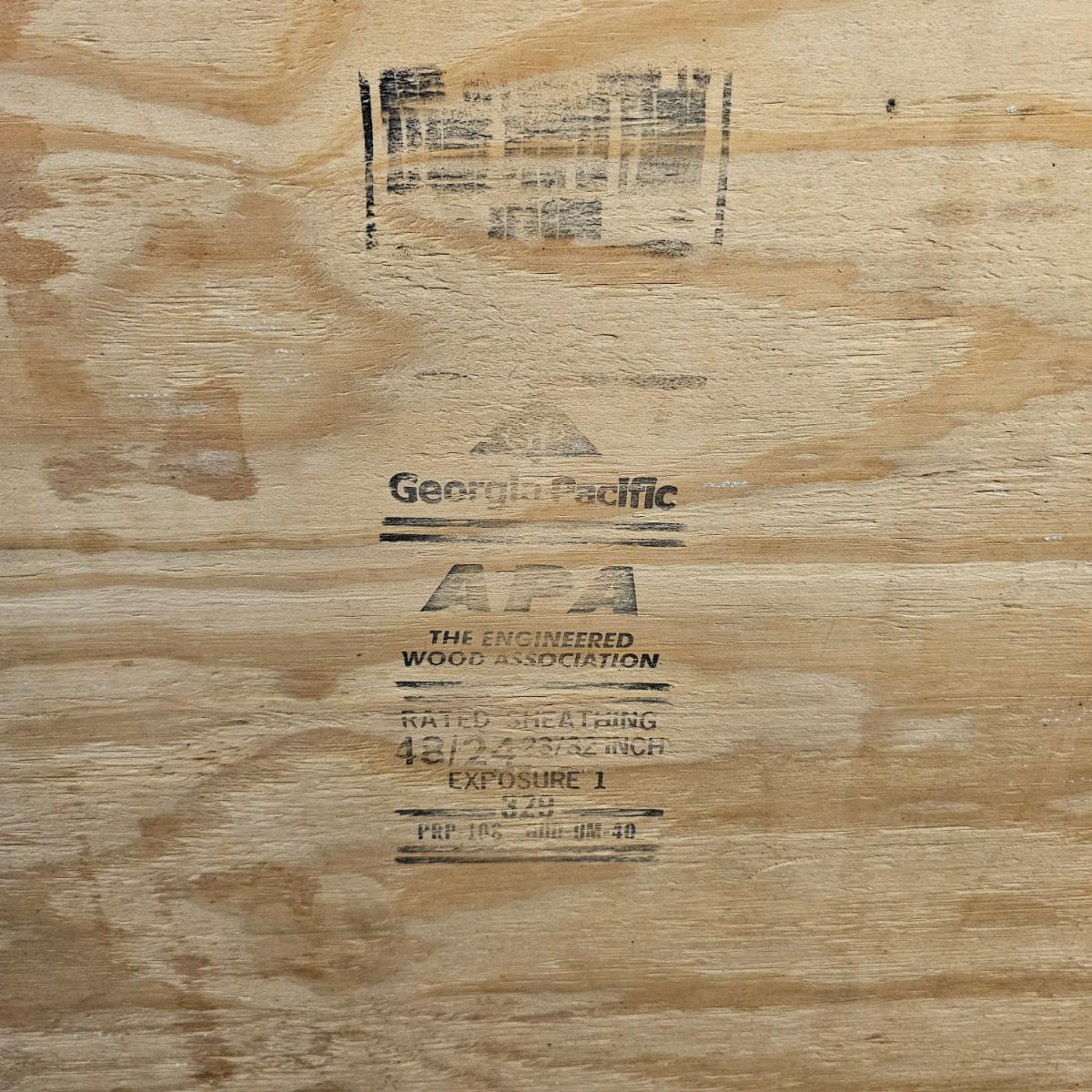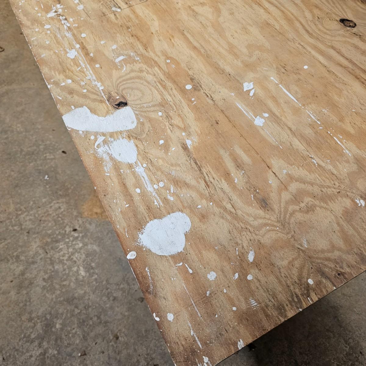 Four wood stationary sawhorses, each measures 43" x 29" x 30.5"H. Some paint and cuts on top rails. Also included are six sheets of 48" x 96" Georgia Pacific plywood, some 19/32" and some 23/32". There is some paint splatter and shading on a couple of pieces, see photos for details. Local pickup only. Winning bidder must bring assistance to help move and load this item due to its weight and/or size.