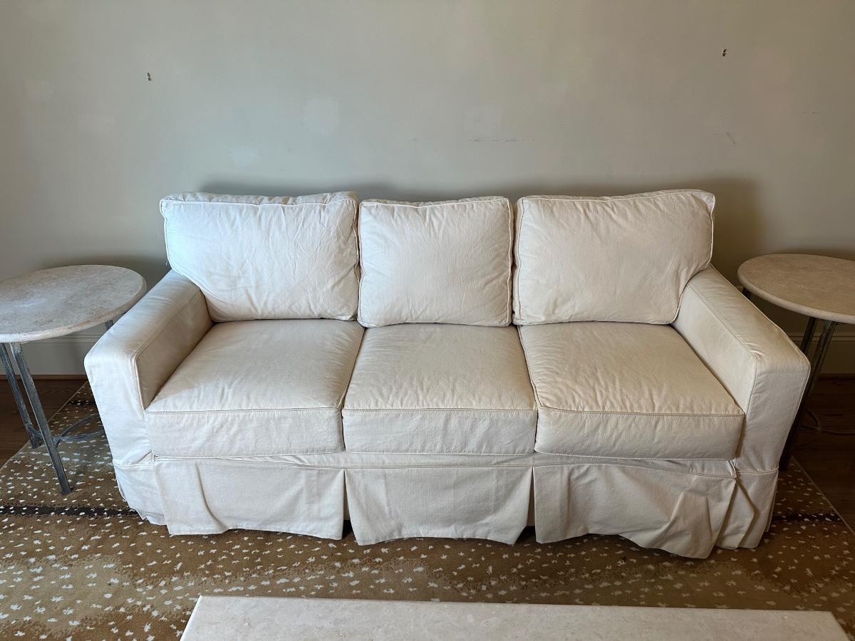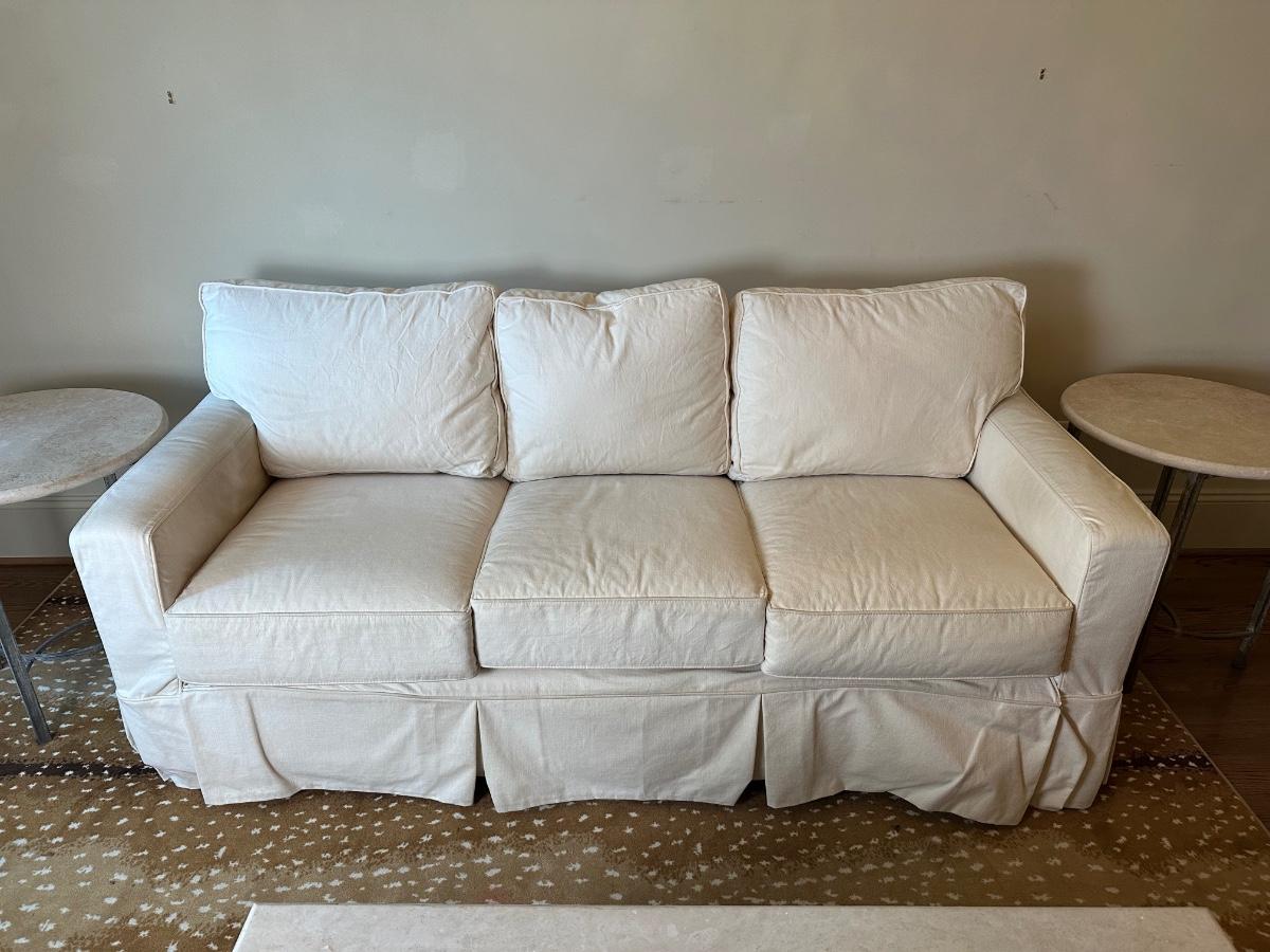 Comfortable and stylish slipcovered sleeper sofa by Four Seasons Furniture. Features a tailored, washable slipcover and plush cushions.
