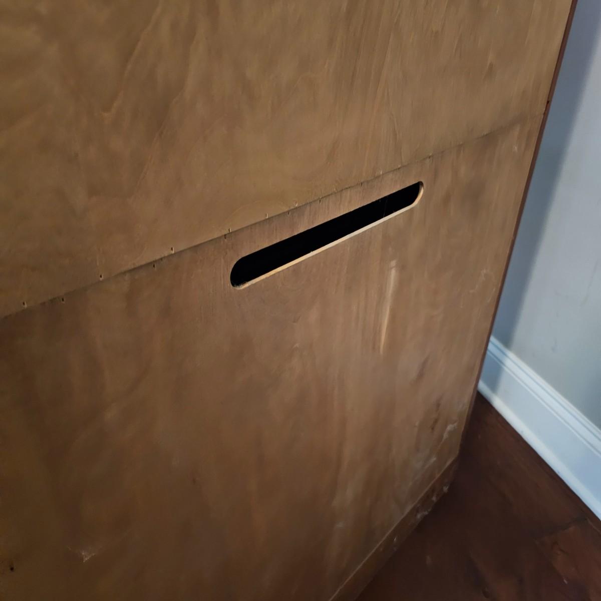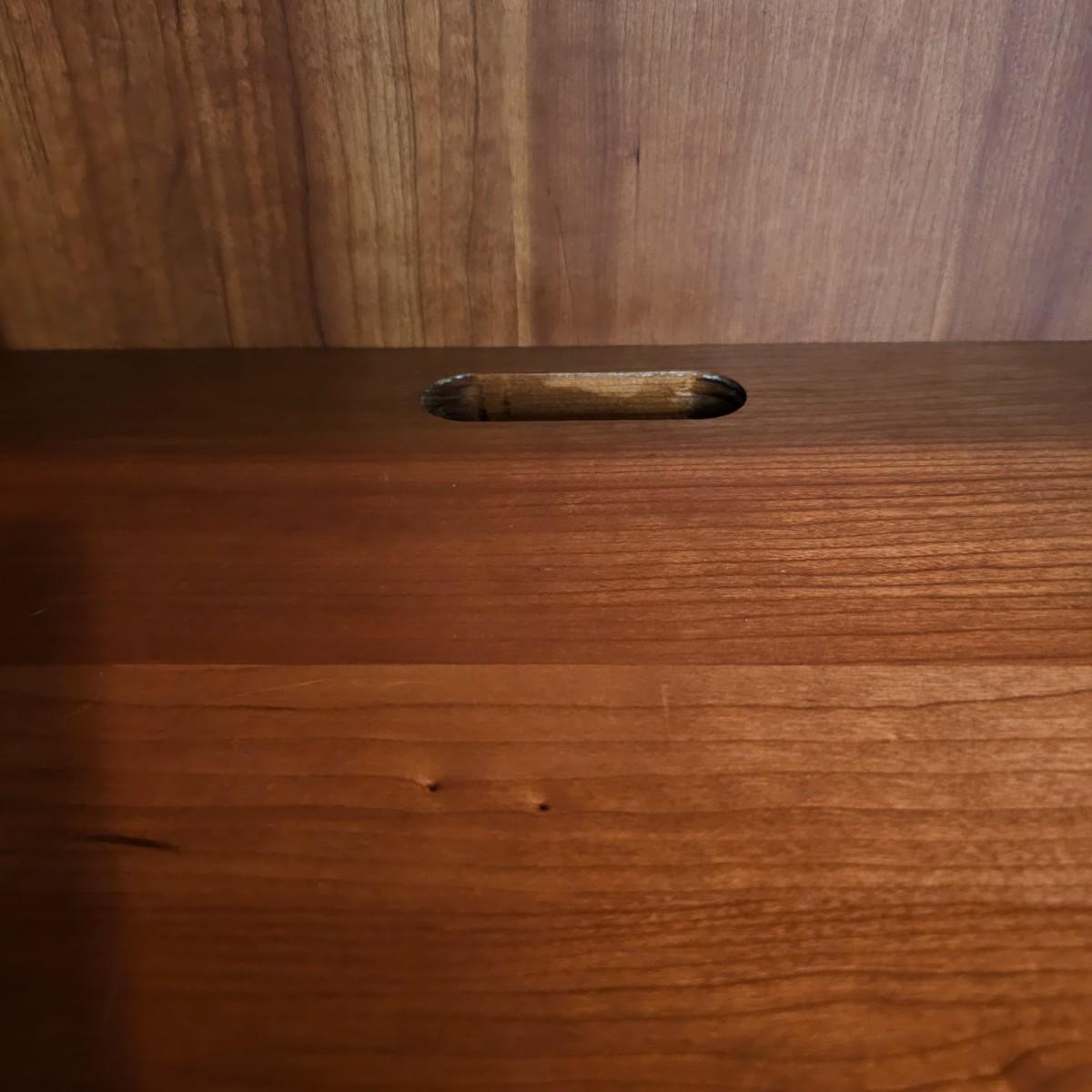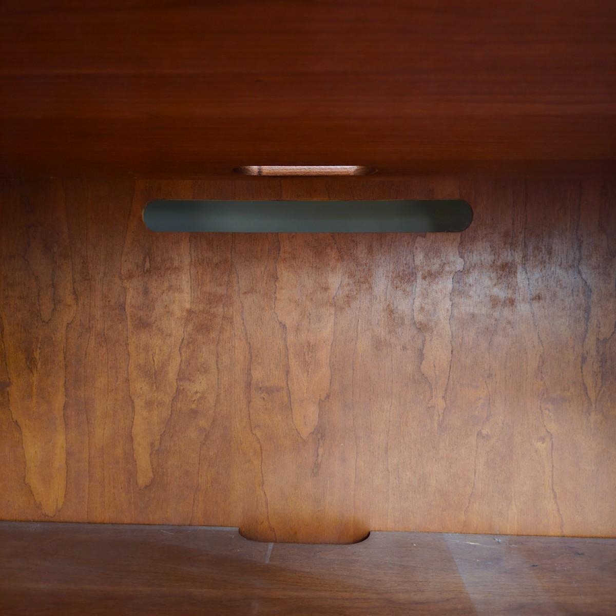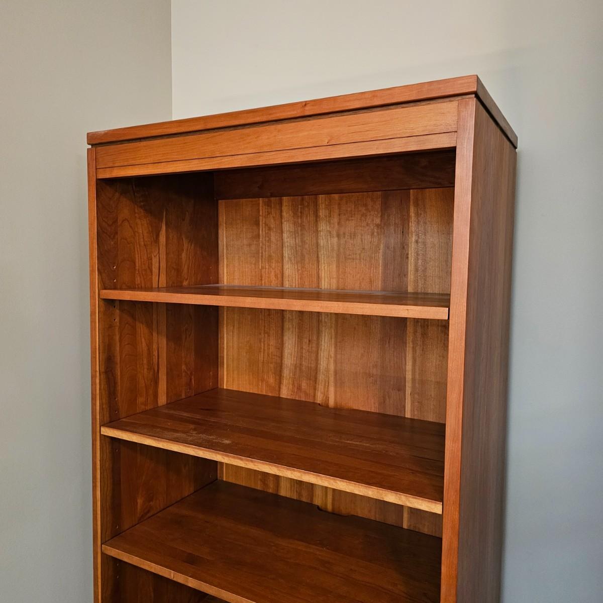 Solid wood cabinet with four adjustable shelves and a storage cabinet on the bottom. Back and two shelves have slots to run cables/power cords if needed. Unit measures 34" x 18" x 80.5"H. See photos for details. Local pickup only. Winning bidder must bring assistance to help move and load this item due to its weight and/or size. Item will need to be moved down three steps.