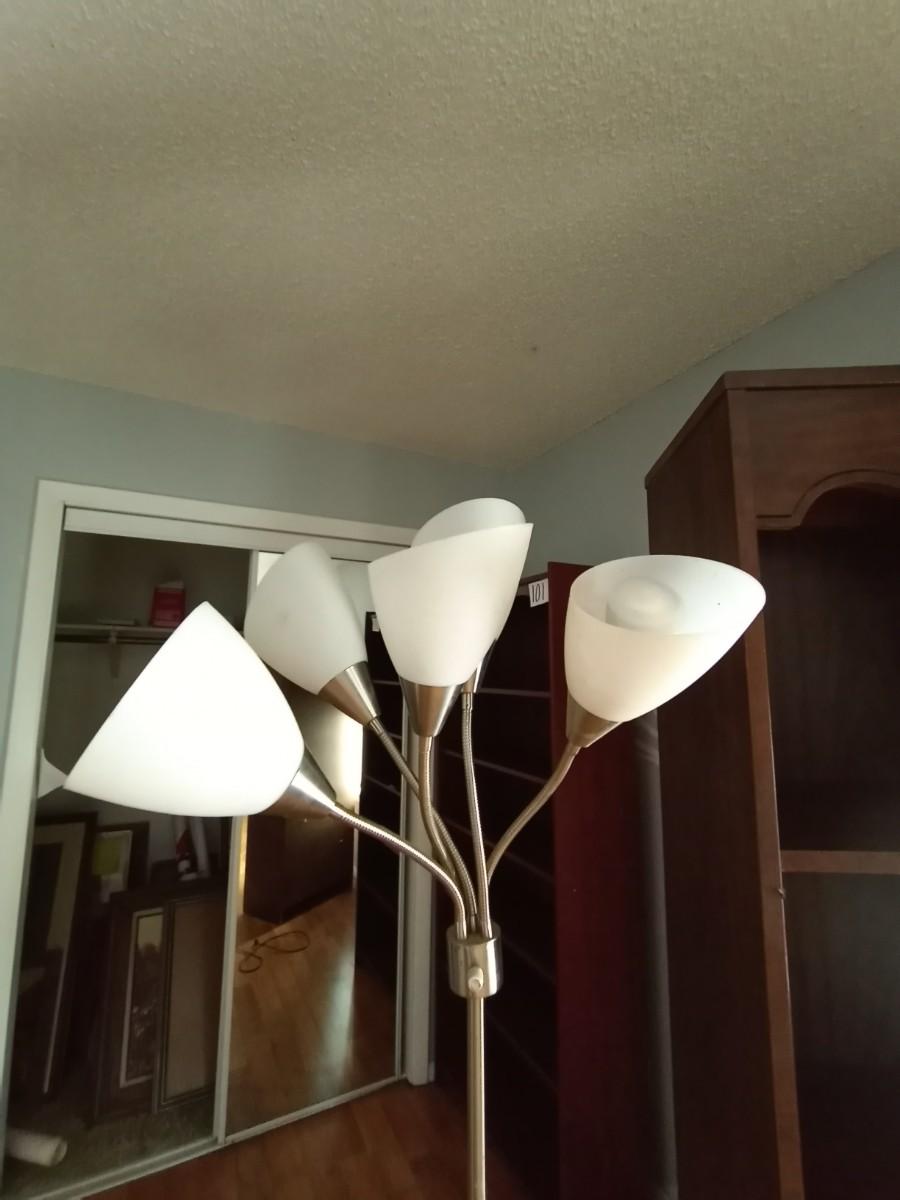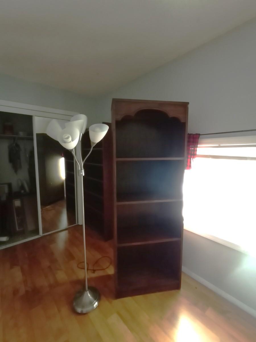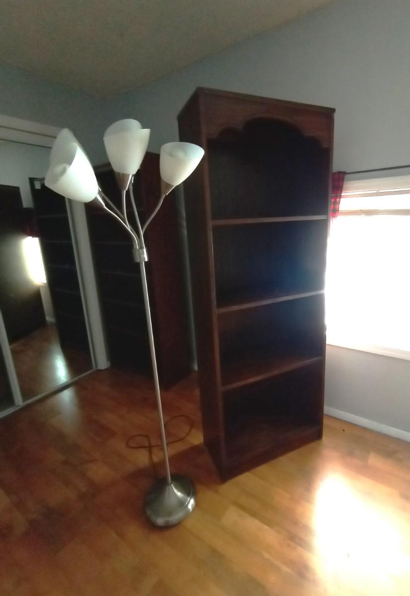 FOUR SHELVE BOOKCASE APPROX.26X18X72 AND FLOOR LAMP