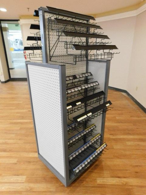 Four Sided Metal Frame Mobile Display Rack 28"x30"x74" in great condition. Very clean and set up for immediate use.