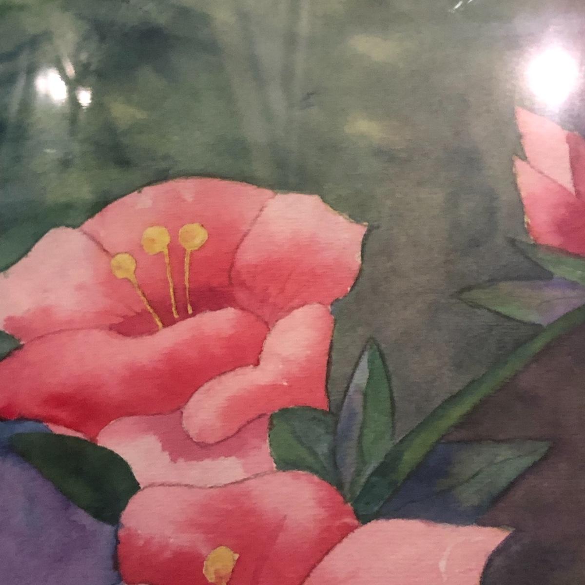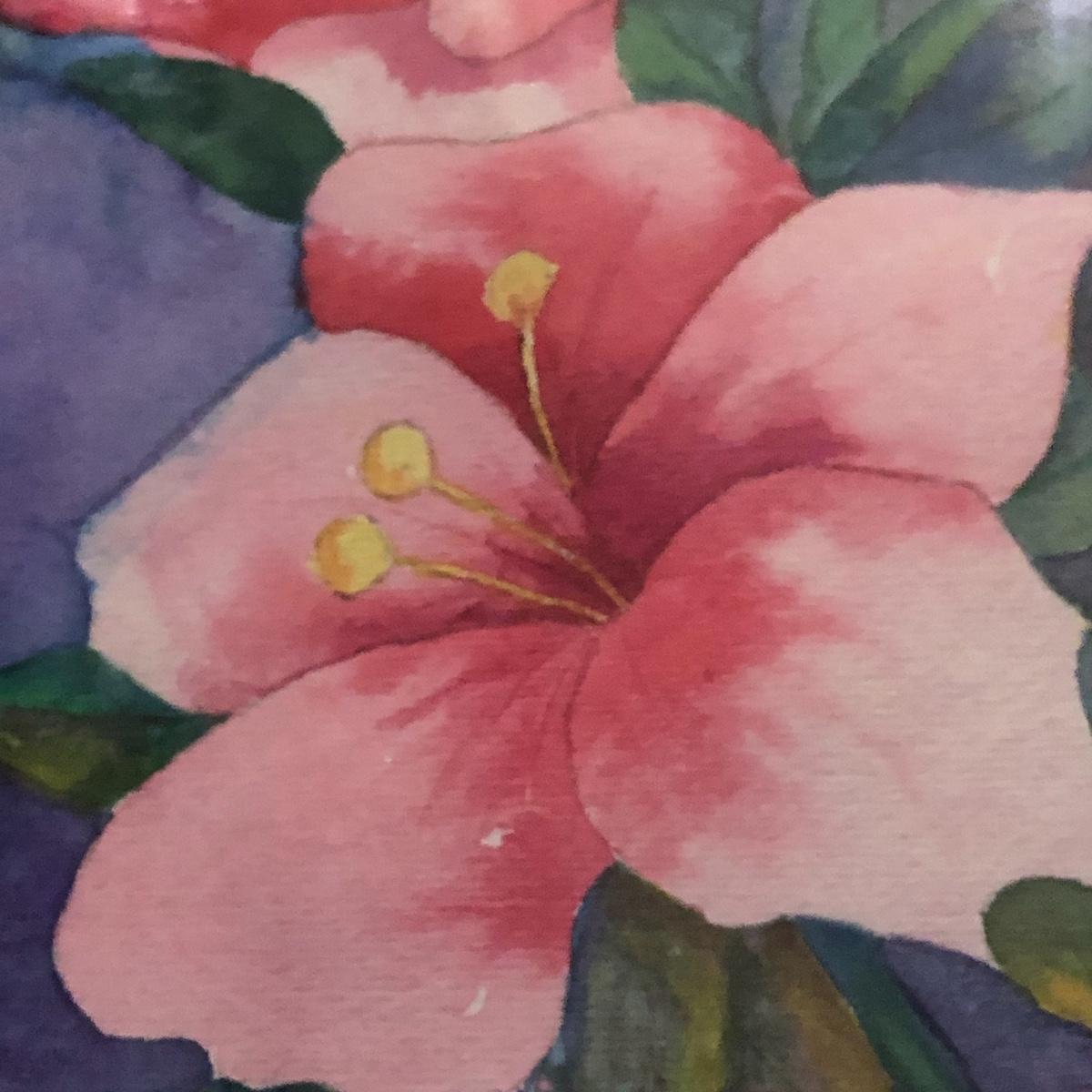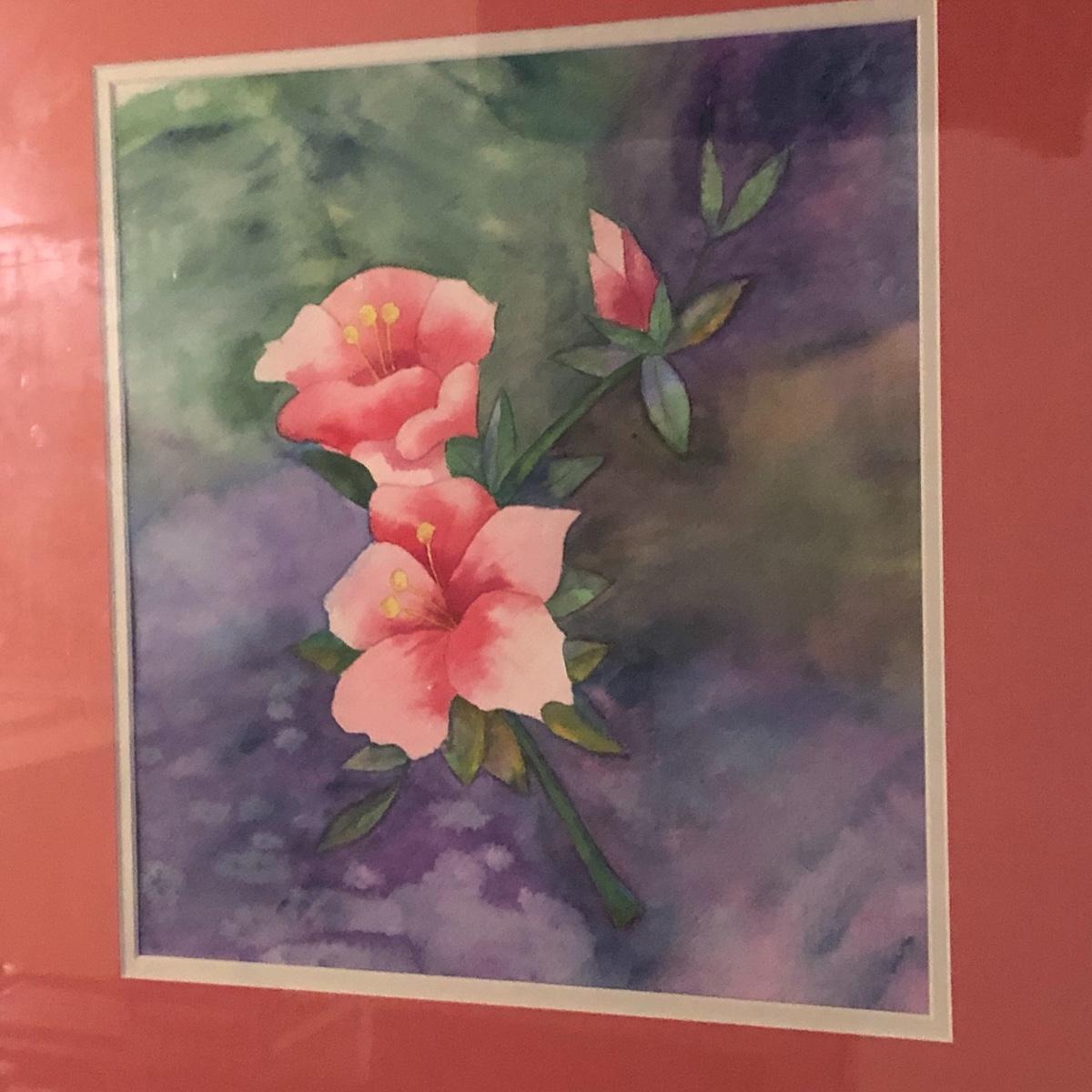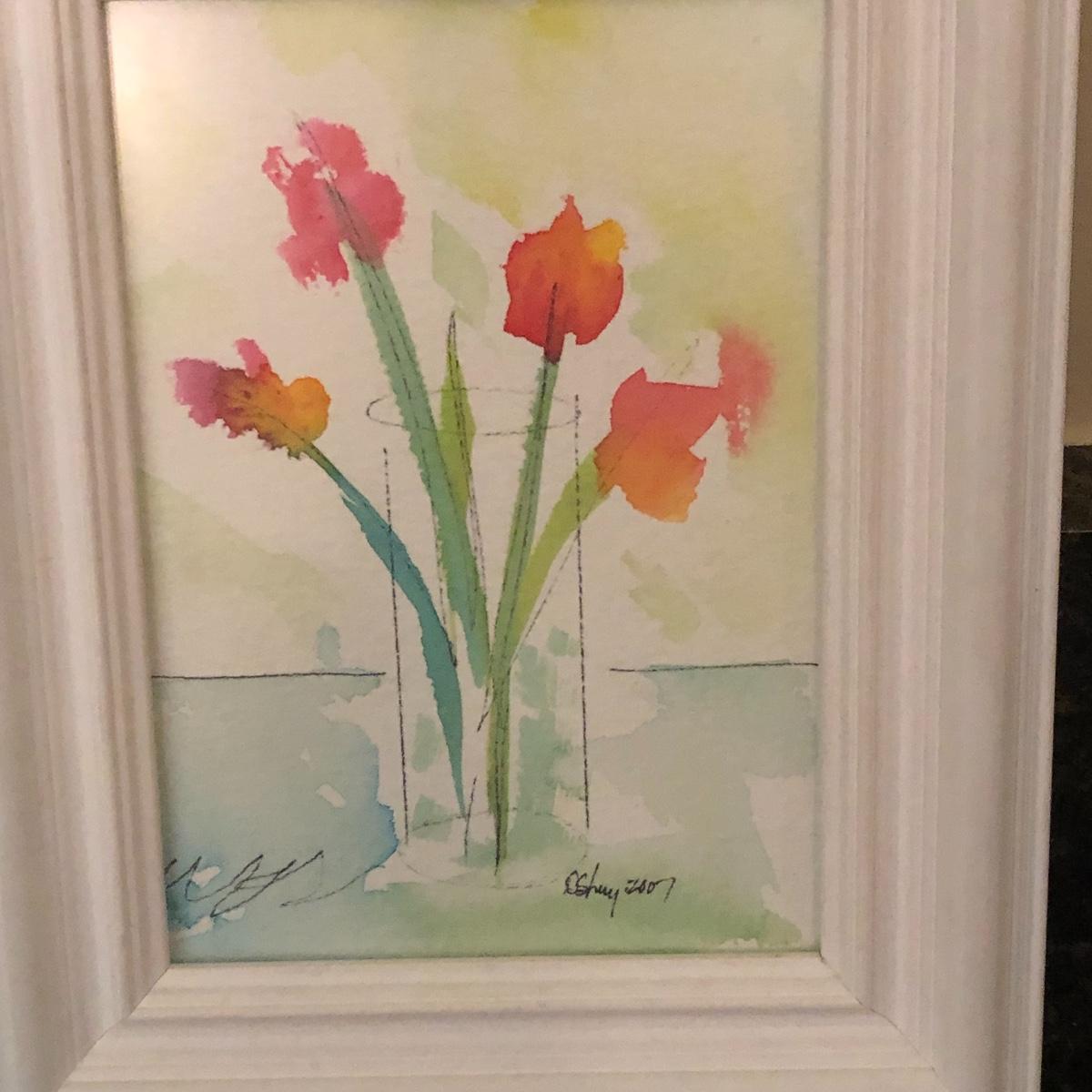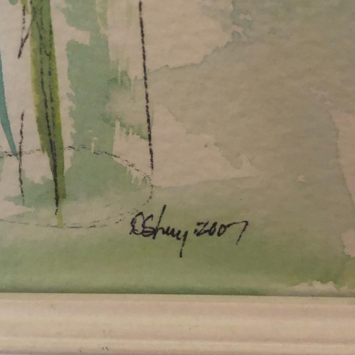 This lot contains four watercolors. The two smaller watercolors in the white frames approximately measures 7.5” x 10” and 10” x 7.5”. Note signature and date of 2007. The flowers in the green metal frame measures 12.5” x 16”. Note signature in the lower right corner. The last watercolor measures 21.5” x 20.5”. Shipping Available.