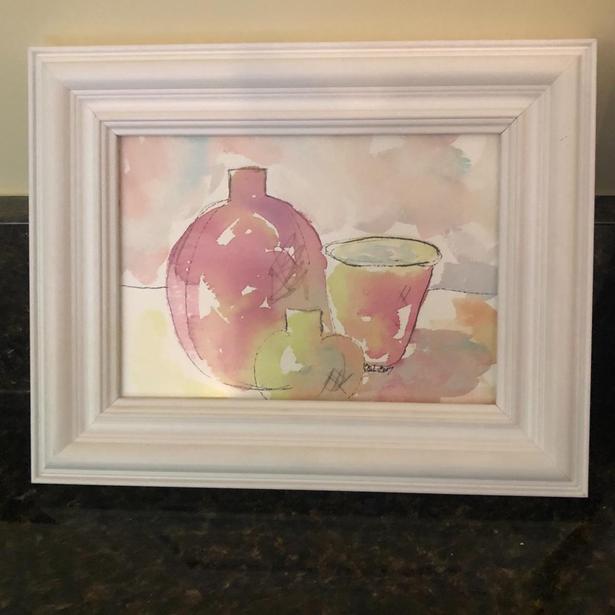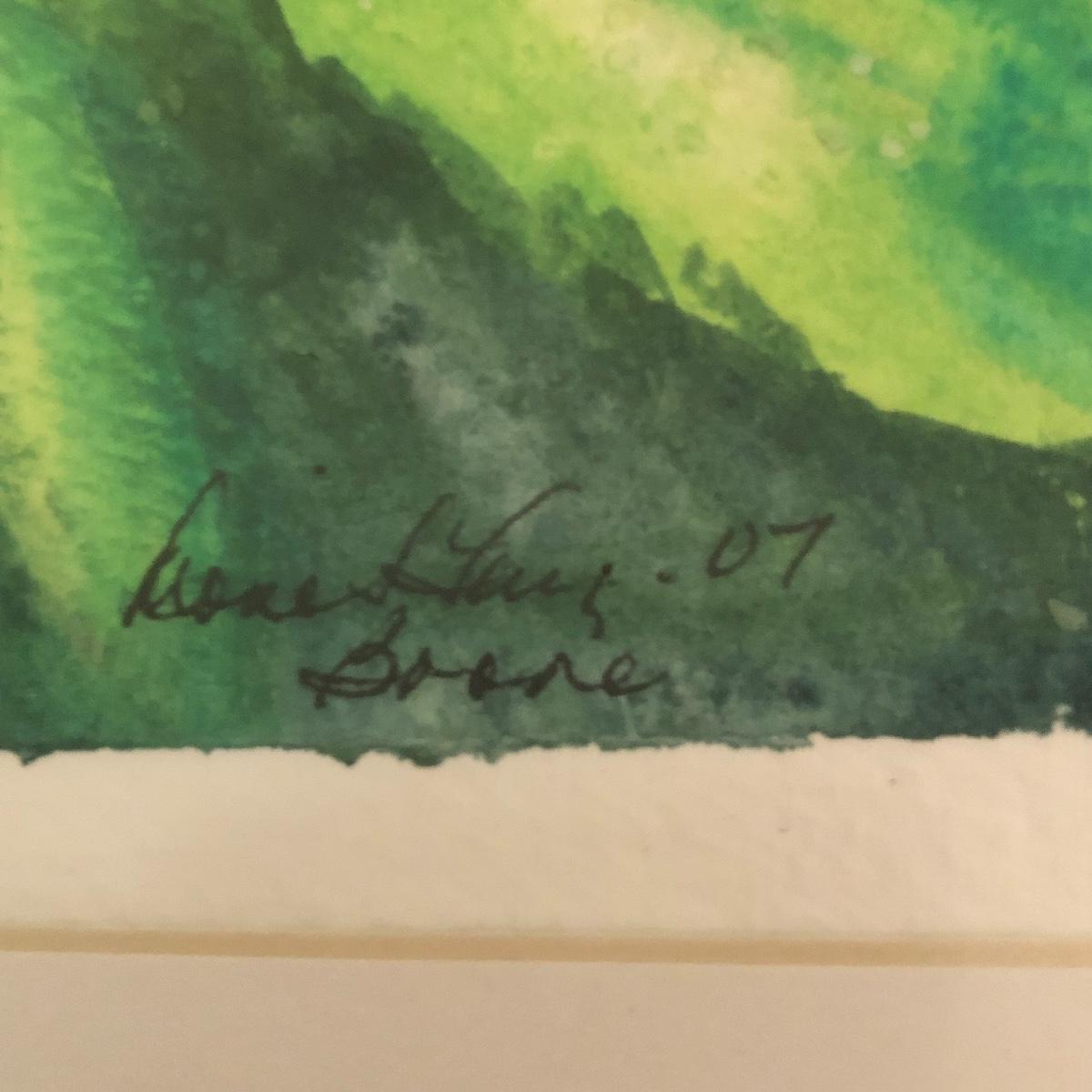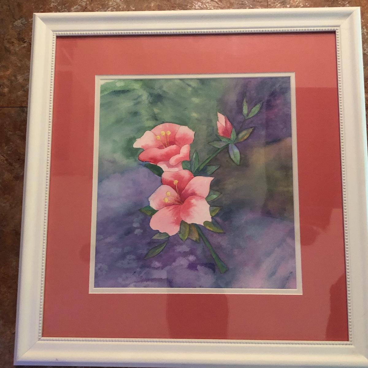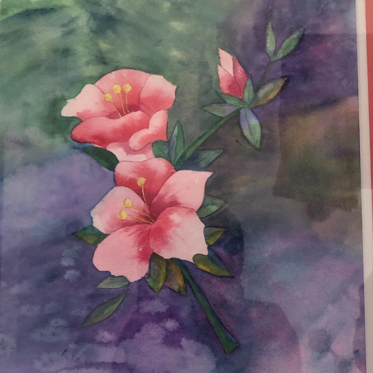 This lot contains four watercolors. The two smaller watercolors in the white frames approximately measures 7.5” x 10” and 10” x 7.5”. Note signature and date of 2007. The flowers in the green metal frame measures 12.5” x 16”. Note signature in the lower right corner. The last watercolor measures 21.5” x 20.5”. Shipping Available.