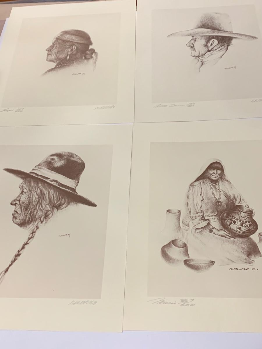 FOUR Signed/Numbered Native American Western Sketches