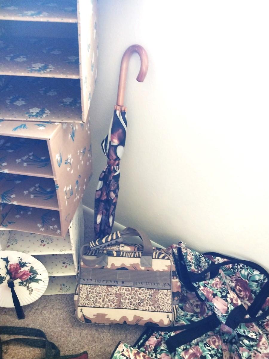 FANCY HANKIES-HAND BAGS-UMBRELLA-SHOES SIZE 7-HAND FAN-GLOVES