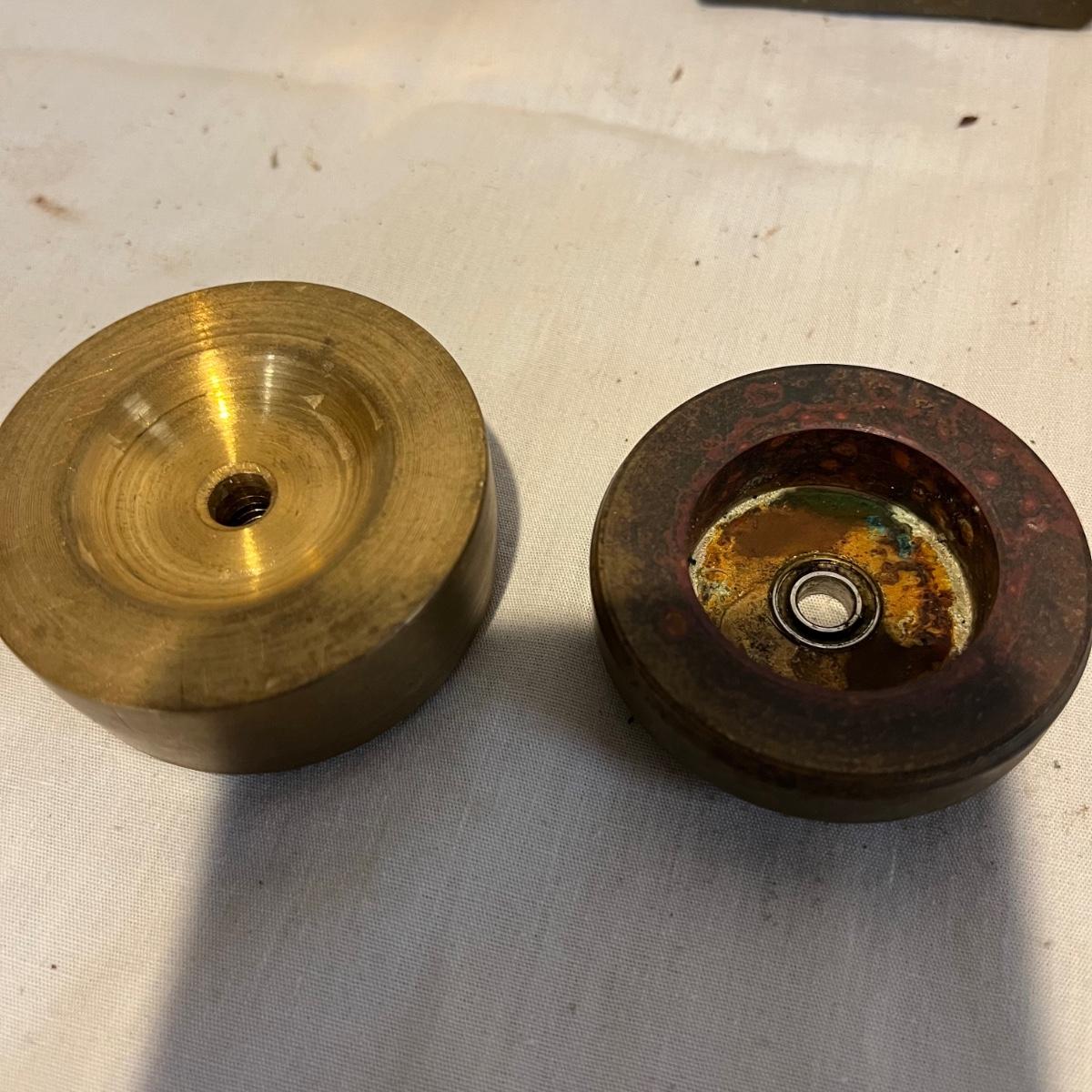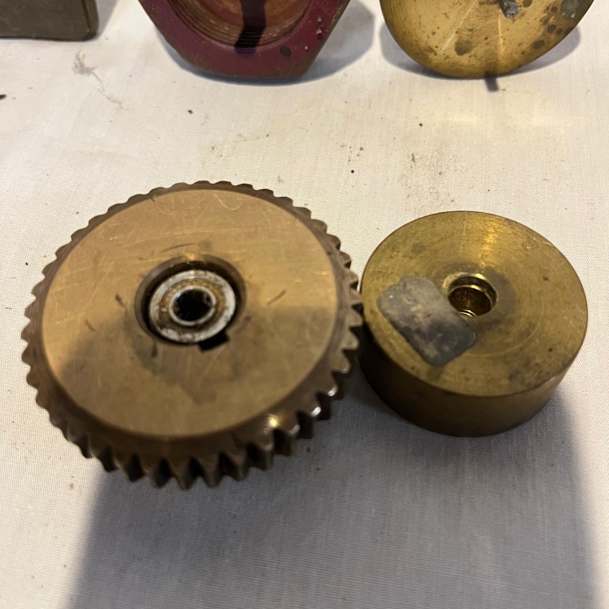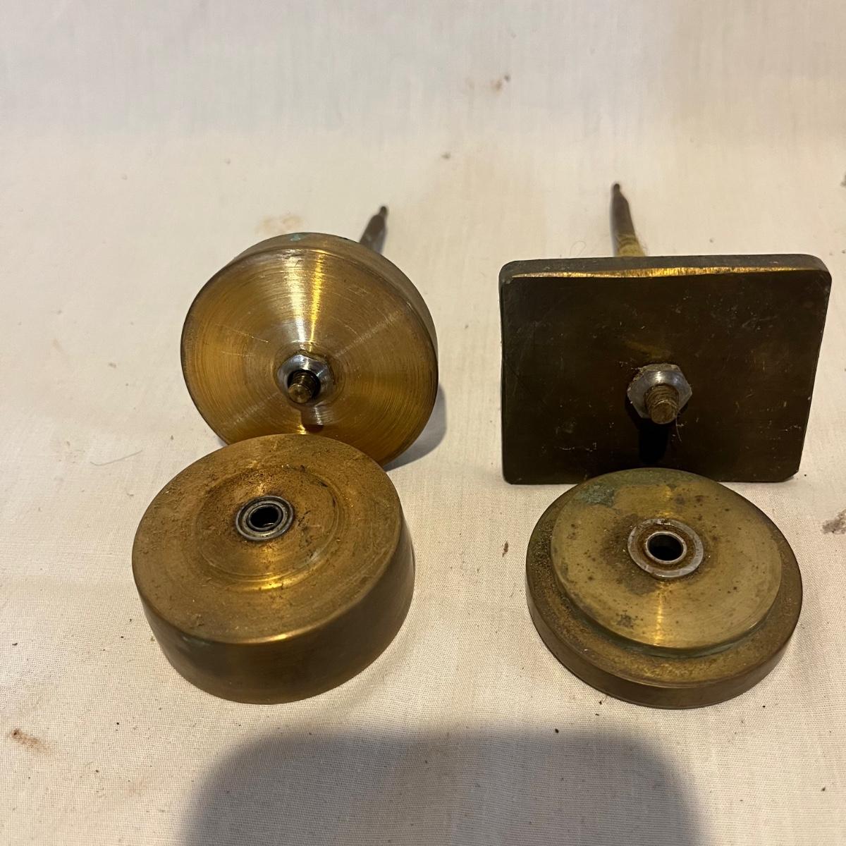 Lot includes four thread winders that are brass with ball bearings. Tallest piece measures 6.5” tall.