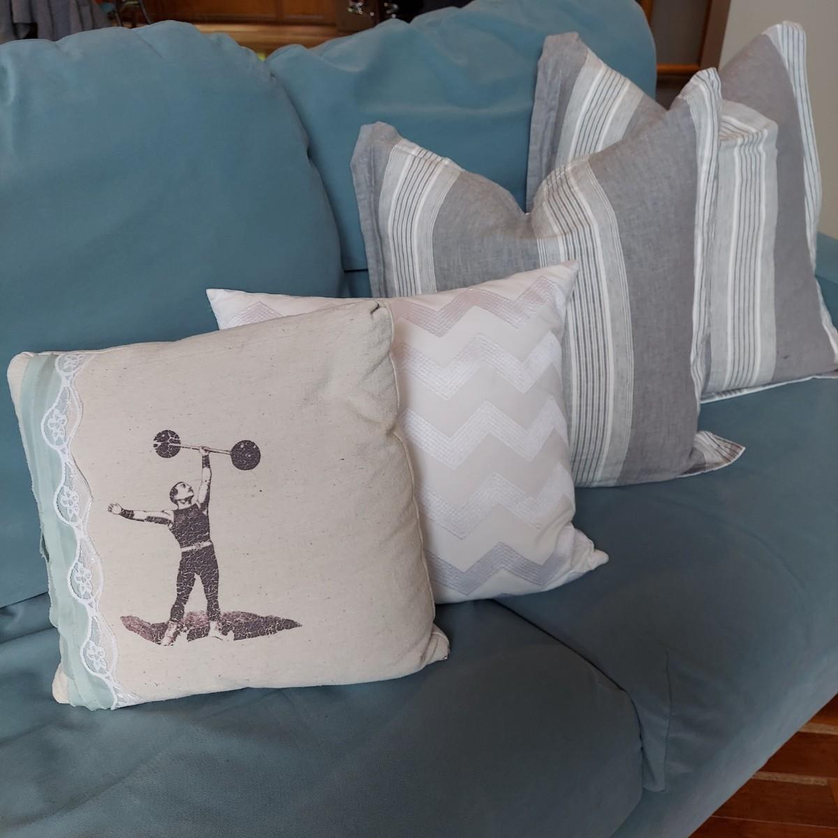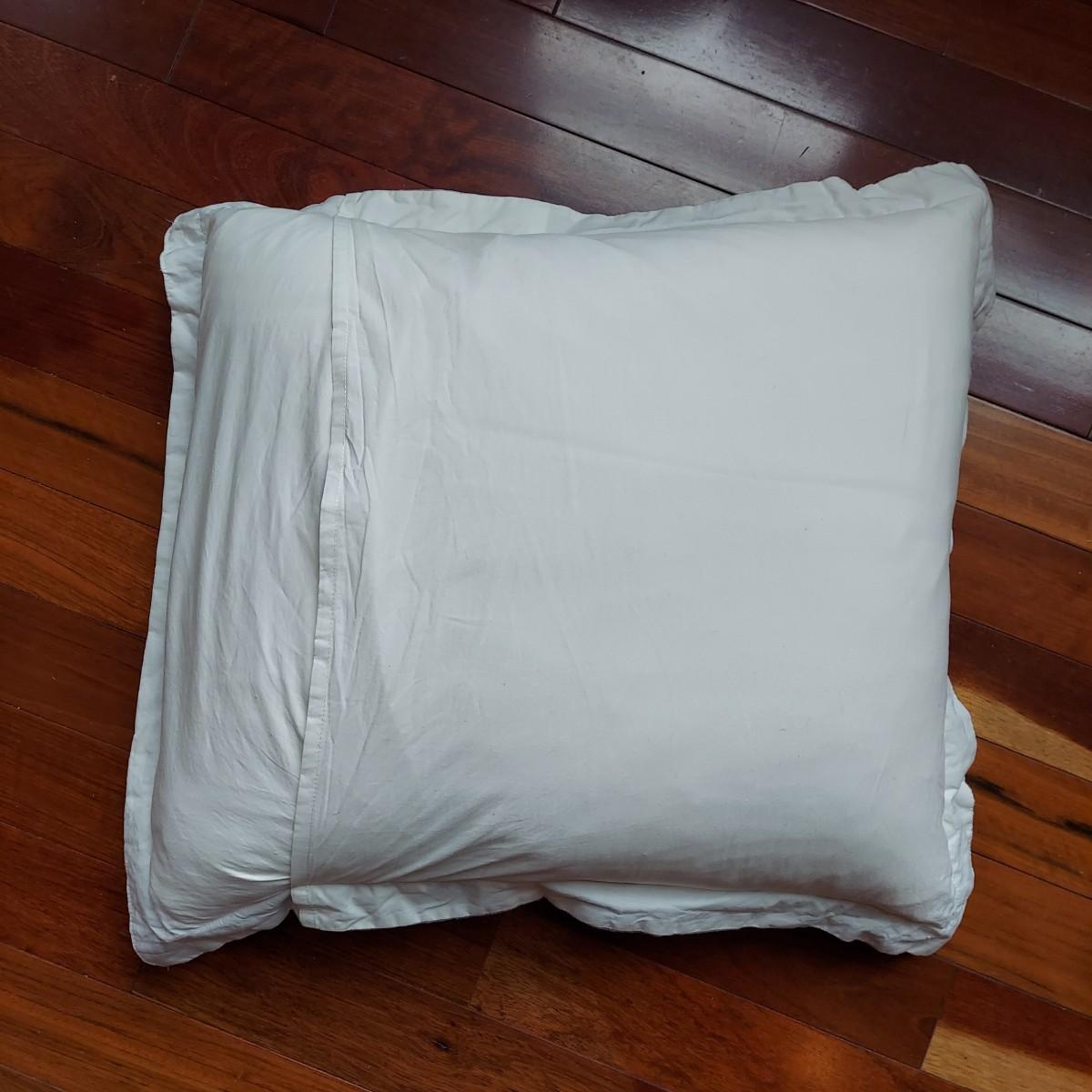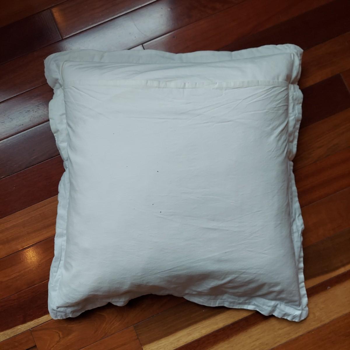 Lot includes four decorative throw pillows in shades of white, tan and grey. The two large grey and white striped pillows measure 22”x 22". The medium white pillow with chevron stripe is 16” x 17". The medium printed pillow is 16”x 16". The two large pillows have slip covers. The two medium pillows have zip cases. These items are from a pet owned house. Shipping available. Shipping certain items can be costly. We suggest contacting our preferred local shipping provider, Postage Express, with dimensions and getting an estimate before bidding: (828) 670-5501 or postageexpress@yahoo.com.