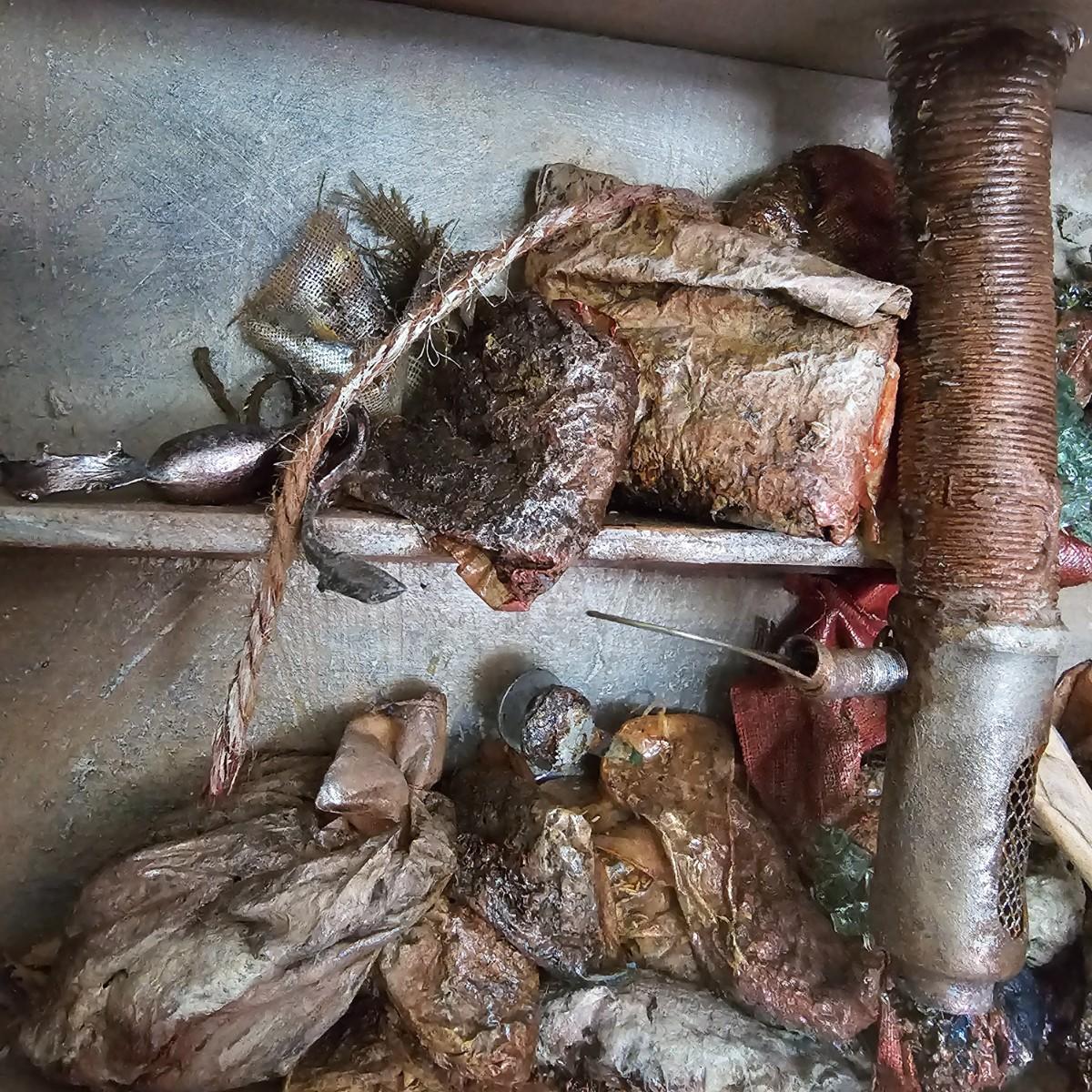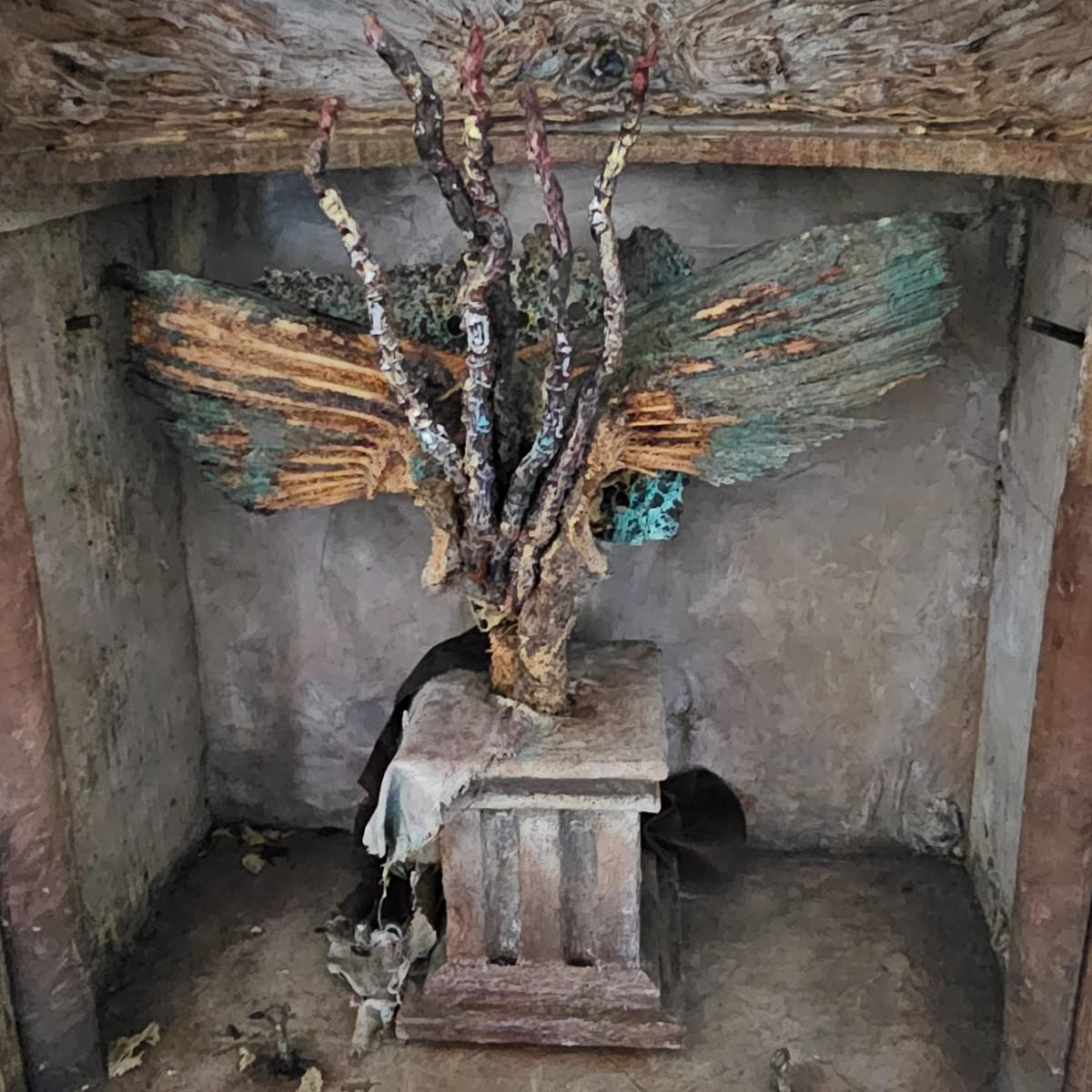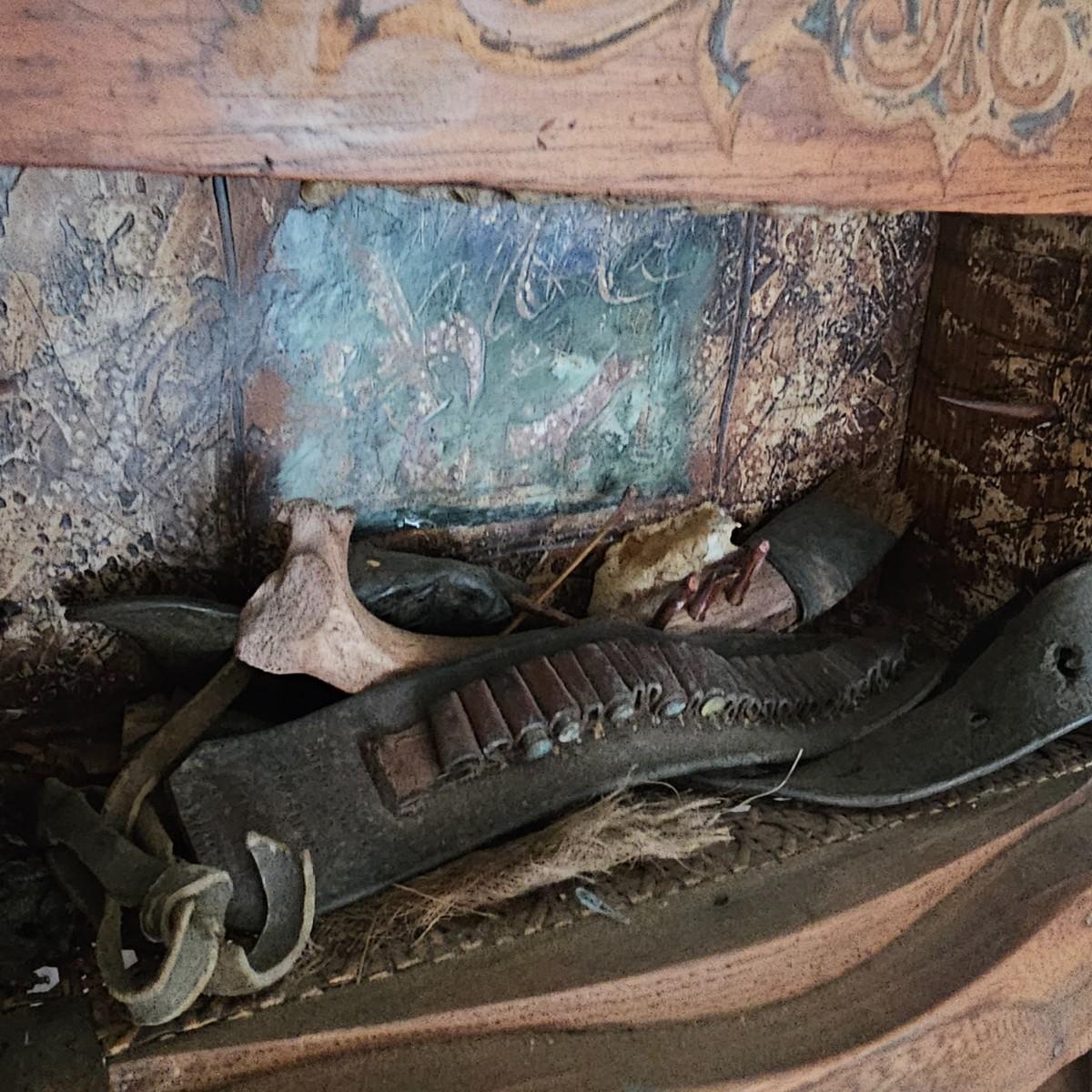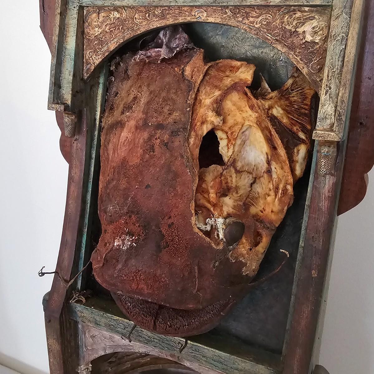 Eclectic looking cabinets, boxes and more. Shadow boxes by Joyce Blunk contain a wide assortment of unusual items and re-purposed 'stuff' to create mind boggling art images. Tools, seeds, marine life and more can be found in here. With such names as 'Mud Cat', 'Shoe Trophy' and 'Late Development ' there is mirth and wonder for all. Smallest box measures 12" x 5" x 20"H, largest is 11.5" x 16" x 28"H. Three of the four pieces are named and signed by the artist. See photos for details. Shipping Available.