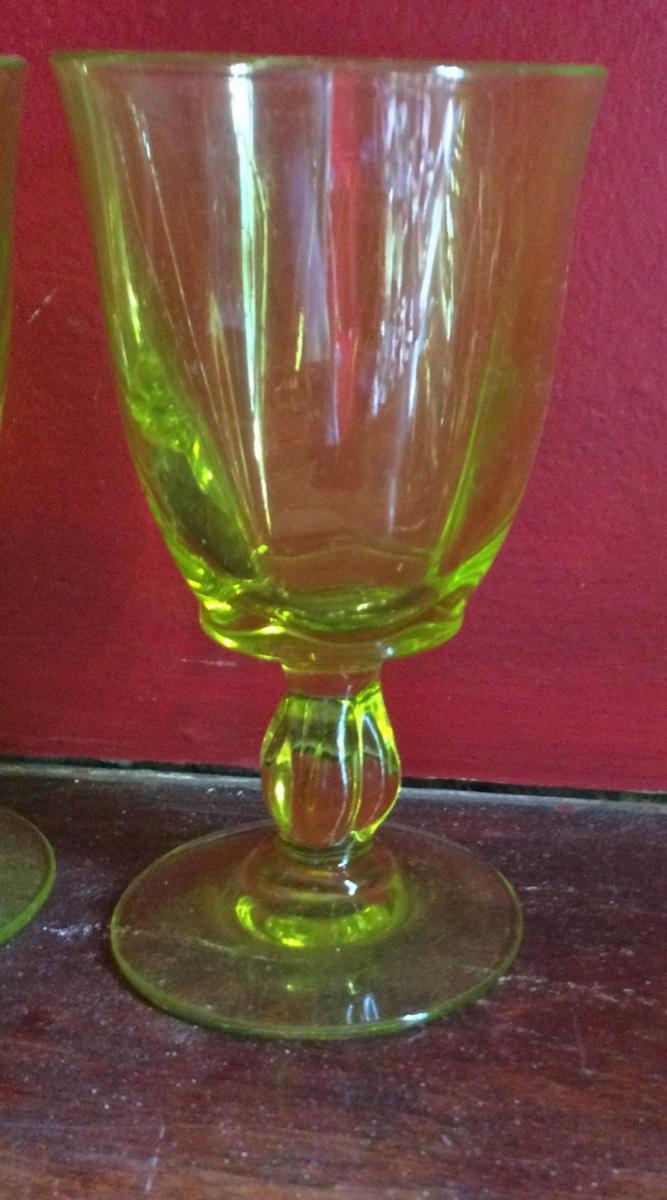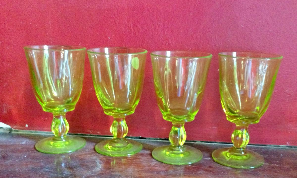 Four Vaseline glass tumblers “Canterbury by tiffin glass”